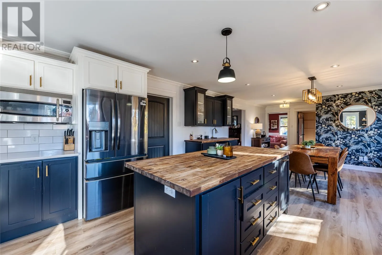 Located in the hottest real estate area of Conception Bay South, Seal Cove can offer you the best of both worlds: Rural & Urban. A quiet neighbourhood, the smell of the ocean nearby, were you can hop on your side by side and go, or put your boat in the ocean across the street and spend the day on the bay -- you will at home here. Upon entry to this home on the side it boasts a large mud room, it is welcoming and bright, wether you like to entertain or host family gatherings this newly renovated kitchen is spectacular and your will ready to host a party or enjoy a family dinner. This large kitchen/dining/entertaining area has ample storage and countertop space, as you sit up to the large quartz countertop island and large dining room table you have a direct line of site to the living room, family room and backyard. Watch the kids play in the backyard from the kitchen window, or with family and friends on the back deck. When you go through the living room there is a roomy foyer with an office off of it for those work-from-home types. Up the hardwood stairs, youâre greeted by a bright, open concept space. The large primary bedroom features a five-piece ensuite, plus a large walk-in closet. Two more good sized bedrooms and main bathroom complete this level. Also on the main level, half bathroom a large laundry room off the kitchen. To complete this home there is a large detached garage for all your toy storage. This home offers a convenient location with easy access via Piece Keepers Way to all amenities. If you are looking for that last minute item you can walk to Seal Cove Grocery. Hop on the Newfoundland Târailway with access to more of CBS and Conception Bay Central. This home checks the boxes for a growing family; Its time to call 129 Seal Cove Road home. (id:27476)