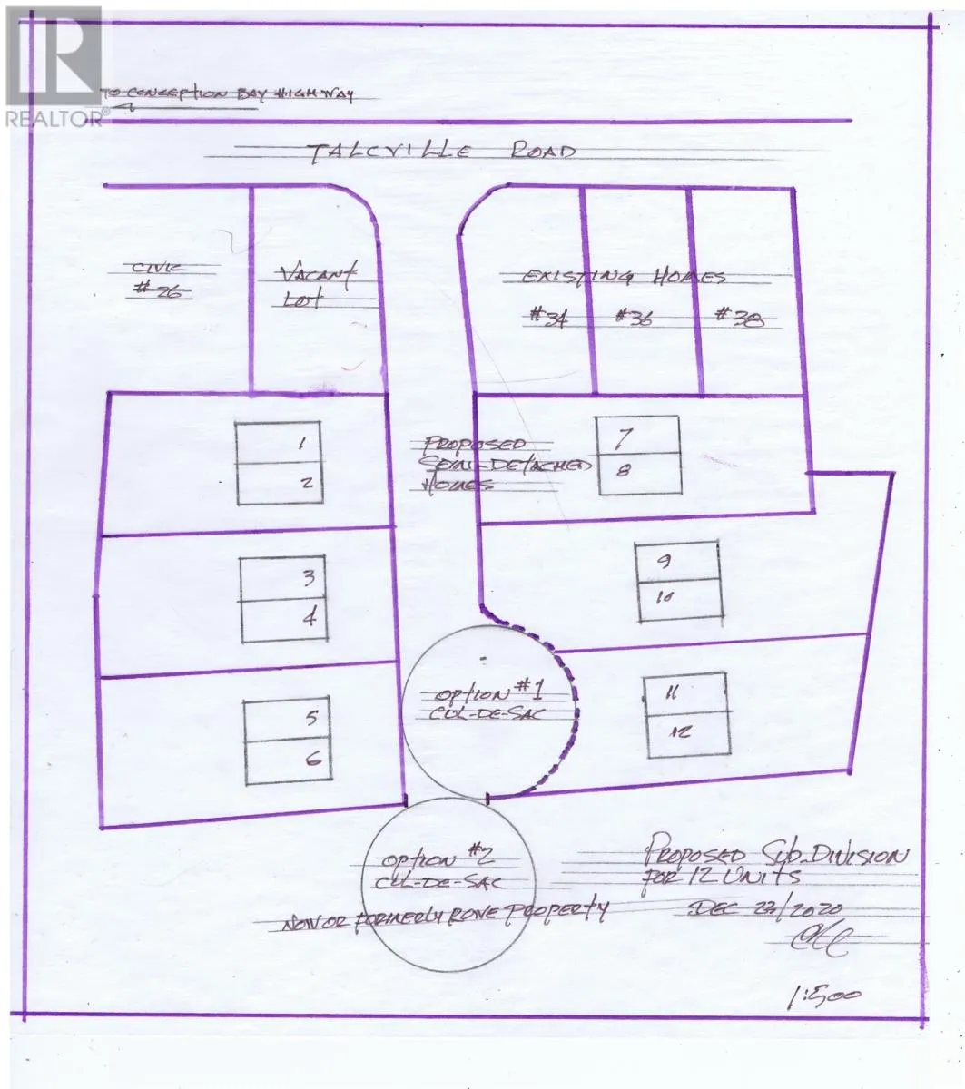 Directions: just off main road, long pond, behind Dragon 88. Minutes to the bypass road and only 15 minutes to St. Johnâs. VACANT LAND! Prime investment opportunity for the savvy investor or builder! Located on a quiet side street in Manuels, Conception Bay South. This large block of land (nearly ~1.7 acres) is ideal for a small residential development with possible stunning views of Conception Bay. Possibility of subdividing the land to allow for 12 units (proposed development concept attached). Situated only minutes away from all amenities, schools, shopping, parks, grocery, Manuels River, and Yacht Club! Photos with property lines are approximate. **Purchaser responsible for any applicable fees including water and sewer hookup, all permits, assessments, lot servicing, HST. Survey available upon request. (id:27476)