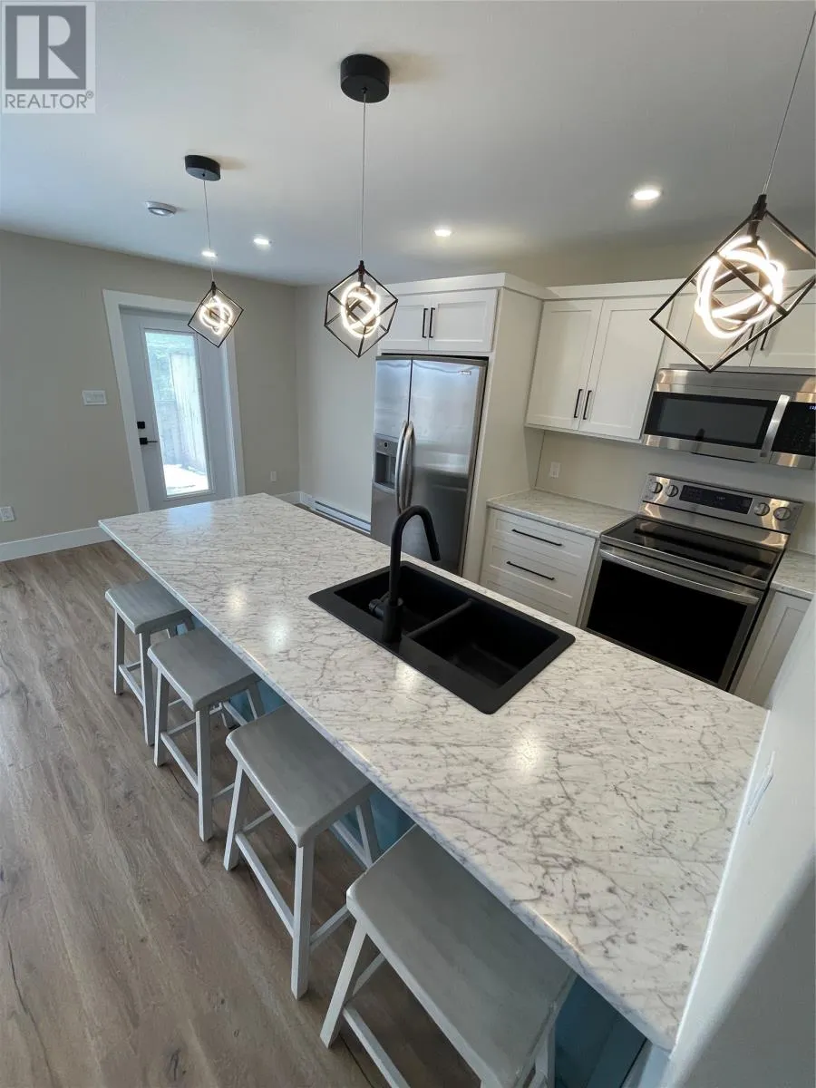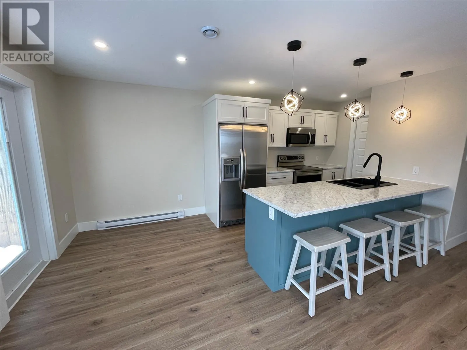 This stunning semi-detached home is situated on a generous greenbelt lot with breathtaking views of the ocean, just a short walk to the CBS trailway and Foxtrap marina. The property features an in-house garage and a beautifully designed open-concept living area. With four bedrooms and 3.5 bathrooms, this residence offers the perfect balance of comfort and luxury. The modern kitchen is equipped with a peninsula and a walk-in pantry. The primary bedroom boasts a stunning view of Conception Bay, a spacious walk-in closet, and a 3-piece ensuite, accompanied by two additional spacious bedrooms, a main bathroom, and the convenience of laundry facilities on the upper level. The walk-out basement features a recreation room, a bedroom, and a full bathroom. The large rear yard includes a 10x10 private view patio, and the property's front and side yards have been beautifully landscaped. As per the Sellers Directive, there will be no conveyance of any written offers prior to 5:00 pm on February 17, 2025 and all offers are to remain open for consideration until 8:00 pm on February 17, 2026. (id:27476)
