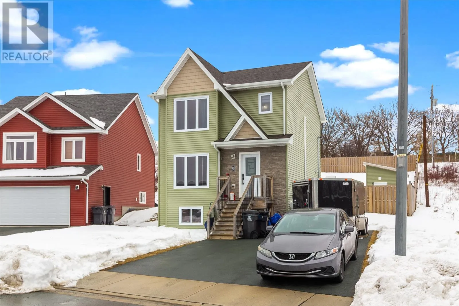 Welcome to 8 Rosegate Place in beautiful Chamberlains, CBS. This fully developed 3-bedroom, 3-bathroom home offers everything you need to live comfortably and maintenance-free for years to come. Situated on a fully fenced lot with a spacious backyard and storage shed, this property also boasts breathtaking views of Conception Bay. Step inside to a bright white kitchen featuring an open-concept layout, perfect for entertaining or keeping an eye on the family while you cook. A mini-split heat pump ensures efficient heating and cooling year-round, with an additional unit installed on the second floor for added comfort. Upstairs you will find three well-sized bedrooms, including a spacious primary suite complete with a walk-in closet and private ensuite. The lower level features a cozy rec room currently under construction and scheduled for completion prior to closing, offering additional living space for your growing family. Just steps from your front door, enjoy access to Conception Bay â ideal for kayaking enthusiasts or peaceful seaside walks. The Chamberlains walking trail is located at the foot of the road, perfect for trail walks with your furry companions or simply soaking in the fresh coastal air. This is an incredible opportunity to own in one of CBSâs most scenic and sought-after areas. Donât miss your chance to call 8 Rosegate Place home. There will be no conveyance of any written signed offers prior to 4:00 PM on Sunday, February 22, 2026. Offers to remain open until 9:00 PM on Sunday, February 22, 2026. (id:27476)