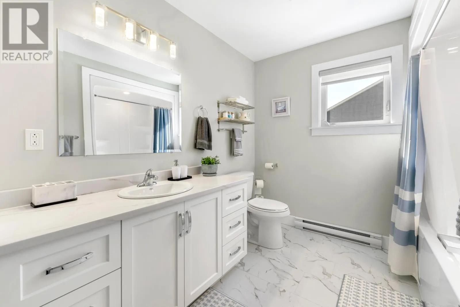 This custom-designed home, built with all the modern conveniences expected of luxury living, is ideally situated on a desirable corner lot offering dual access points for added convenience and curb appeal. Inside, the open-concept layout is flooded with natural light and enhanced by custom-fit blinds, creating a bright, inviting atmosphere throughout. The designer kitchen is a true focal point, featuring a beautifully crafted island with a striking accent color, along with upscale touches such as a pot filler over the stoveâperfect for everyday living and entertaining. The main level also offers main-floor laundry, along with a spacious primary retreat complete with a walk-in closet and a full ensuite. A well-proportioned secondary bedroom completes this level. Downstairs, youâll find a versatile rec room with its own half bathâideal as a private retreat, media space, or an additional bedroom for a teenager. Adding to the homeâs flexibility is a bright, registered, fully self-contained two-bedroom suite with a private ground-level entrance. Perfectly suited as an in-law suite for multi-generational living, it provides a comfortable, independent space for extended familyâwhether for aging parents or a young adult ready for more autonomy. The suite also includes its own in-suite laundry for added privacy and convenience, and offers excellent rental income potential. The exterior is equally impressive, with a fully landscaped and fenced lot, plus a storage shed for seasonal use or a potential outdoor entertaining space. This home also benefits from remaining home warranty coverage. Conveniently located with quick access to the highway, youâre within just 20 minutes of CBS, St. John's, Mount Pearl, and Paradiseâplacing amenities, schools, and services all within easy reach. A perfect blend of thoughtful design, luxury finishes, and flexible livingâthis home truly adapts to your lifestyle. (id:27476)