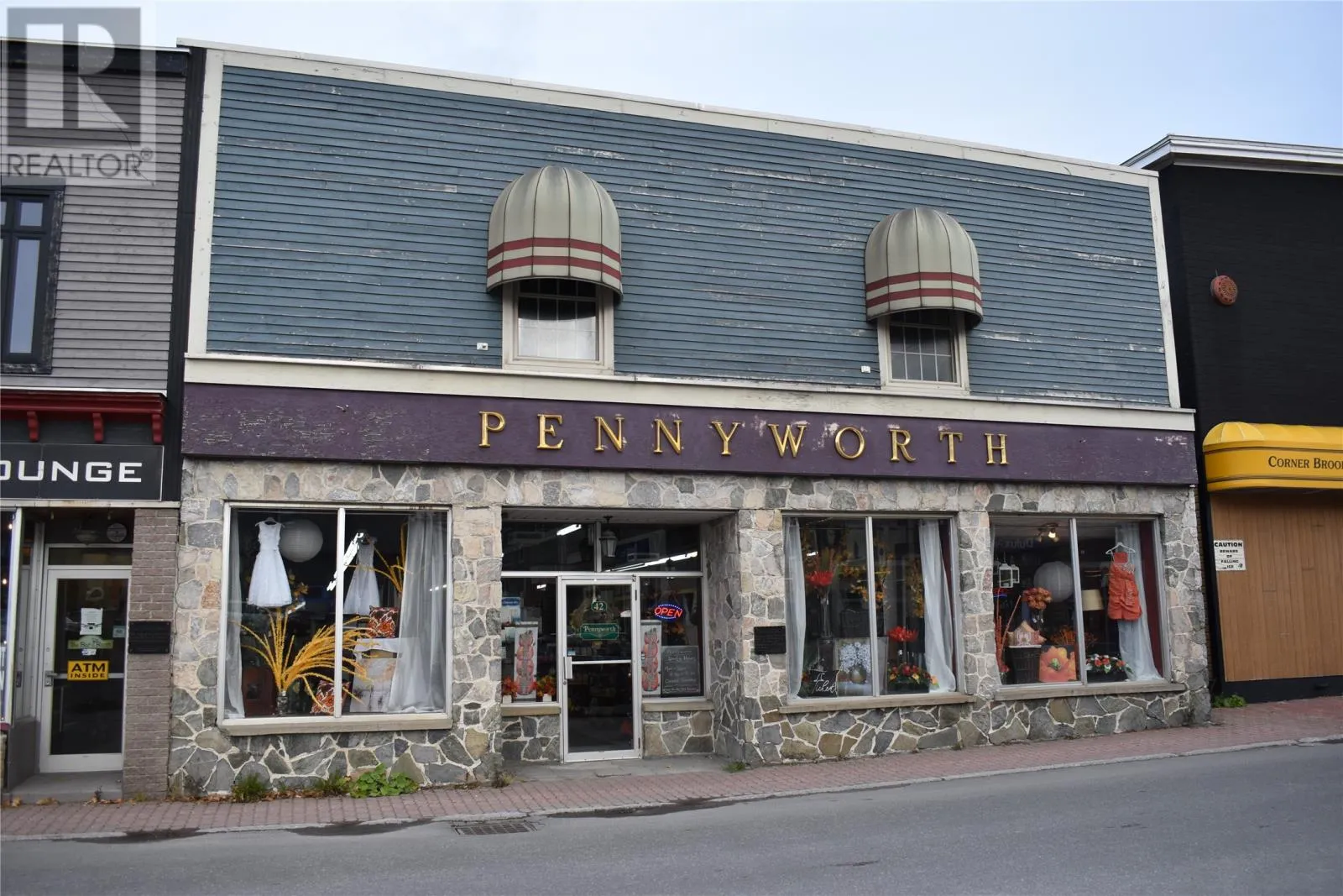 Welcome to 42 Broadway. This large centrally located commercial building is a staple of the historic street Broadway in Corner Brook. The 3000 sq feet of retail frontage is currently occupied by Pennyworth, and has an additional 3800 sq feet for storage, office and receiving space. There is on street parking at the front and ample parking at the rear, accessed by Herald Ave. This building is a perfect investment opportunity and will provide your business with lots of exposure and high visibility as it is located on Corner Brooks most travelled street. (id:27476)