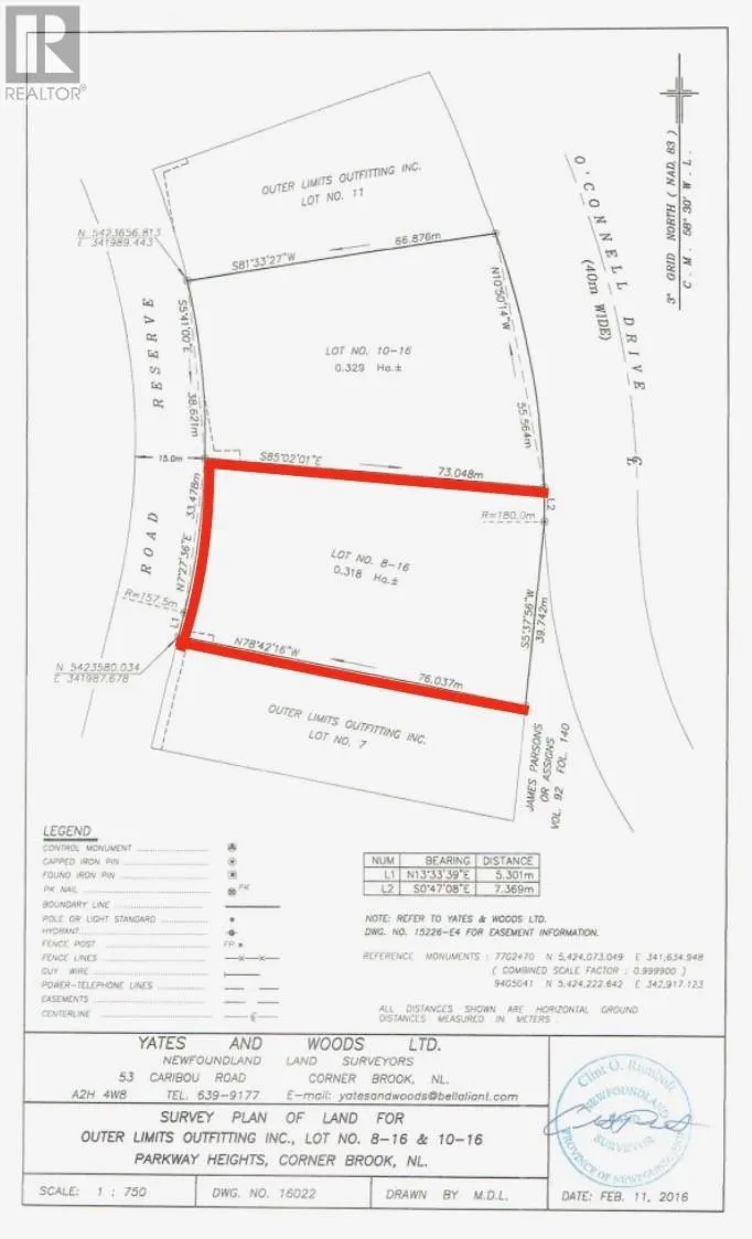 16 Parkway Heights (lot 8-16) is located in one of Corner Brook newest subdivisions just minutes from downtown, schools, recreation and the newly built Western Memorial Hospital. This plot is larger than the average at 0.318 hectares, just shy of an acre allowing ample space for large new build and room for a detached garage. The property offers a view of the Bay of Islands and development is underway for other new homes in this section of the subdivision. If you've been dreaming of designing a new home this lot is fully serviced, ready for development and there is no HST applicable to the sale. (id:27476)