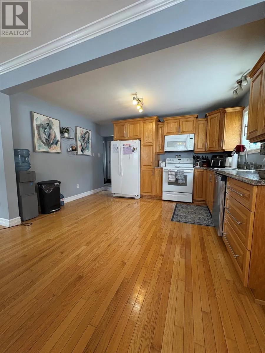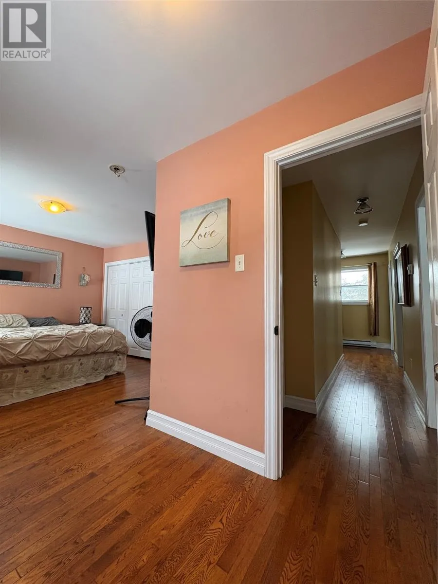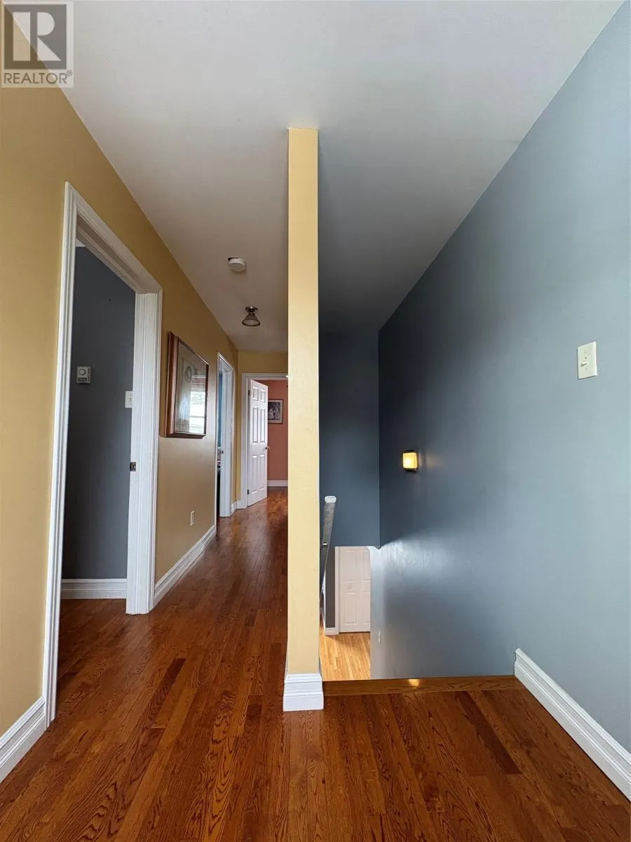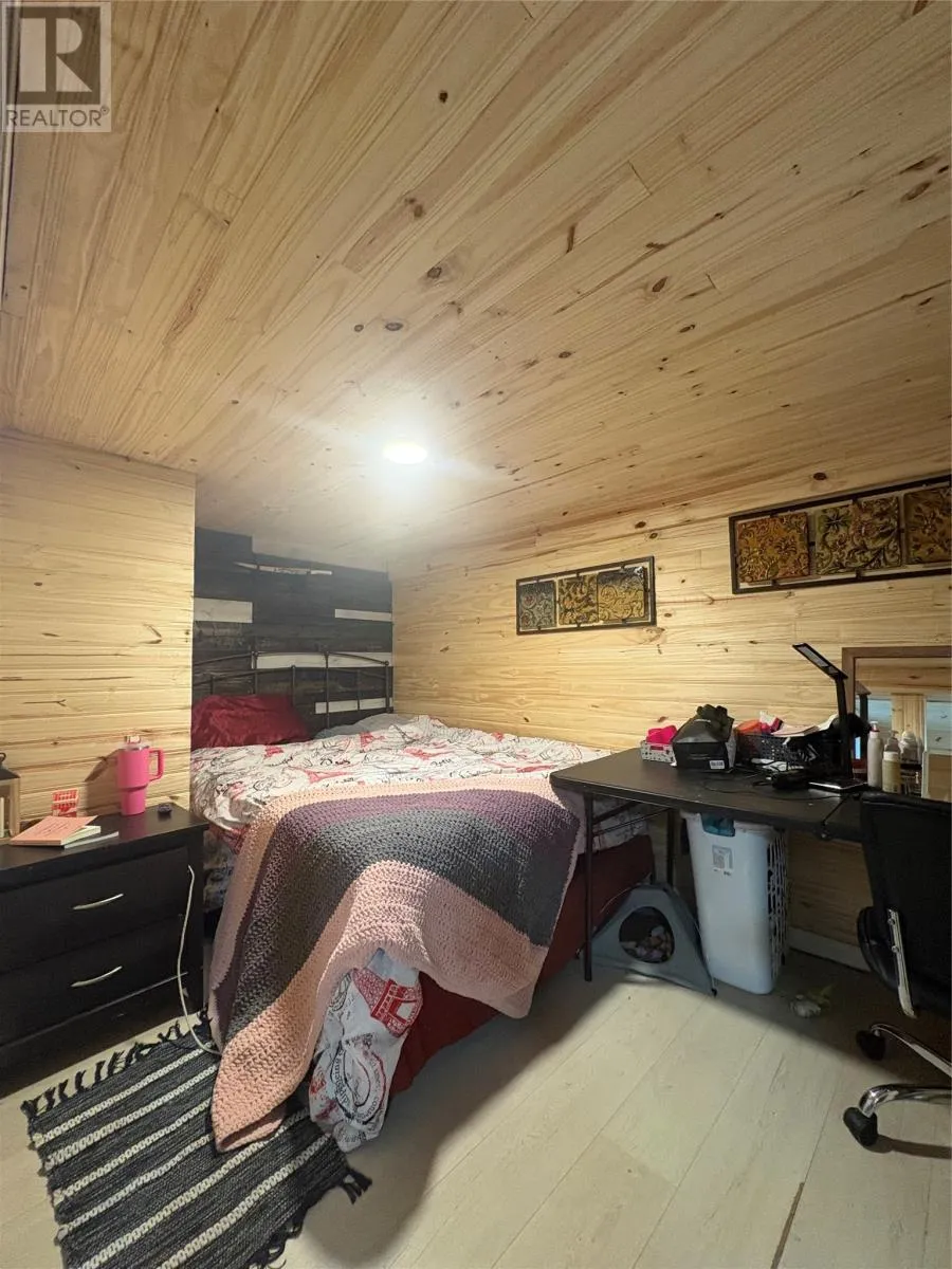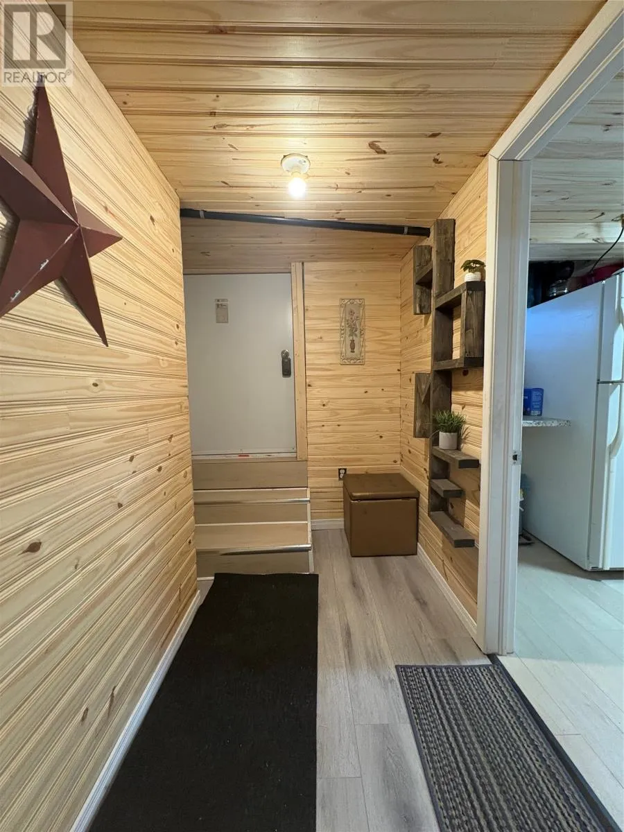 Welcome to this well-maintained, spacious family home offering comfort, versatility, and room to grow. The front of the property faces Country Road with a paved 2-car driveway, while the rear offers an additional 2â3 car driveway and serves as the main entryâleading into a functional mudroom. Enter through the back and youâre welcomed by a mudroom complete with laundry and a beautifully finished 3-piece bathroom with a tiled walk-in shower. The main level is bright and inviting with natural light, gleaming hardwood floors, a large eat-in kitchen with solid oak cabinetry, and a generous living room perfect for relaxing or entertaining. Just off the living room is a flexible bedroom or denâideal for guests, a home office, or one-level living. Upstairs offers four additional bedrooms and another full 3-piece bathroom. The rooms are generously sized, with one smaller room perfect for a nursery, office, or childâs bedroom. Hardwood flooring runs throughout most of both levels and has been well maintained. The lower level provides excellent bonus space, including a partially developed area set up as a cozy, open-concept bachelor-style suite. Complete with its own 3-piece bathroom and walkout access to the backyard, this space is ideal for guests, teenagers, or potential rental income. A wood stove is also located in the basement and is used to help offset heating costs (not WETT certified). Outside, enjoy a private enclosed deckâperfect for BBQs and relaxing. The backyard also features a newly constructed storage shed (2025), ready for finishing and ideal for tools, seasonal items, or firewood. Extensively updated, the home was stripped to the studs in 2014 with new wiring, 200 amp service, and fully updated PEX plumbing. A fantastic opportunity for large families, multi-generational living, or income potential in a convenient Corner Brook location. Sellerâs direction in place offers submitted April 11 at 1:00 PM and open for acceptance until 5:00 PM (id:27476)