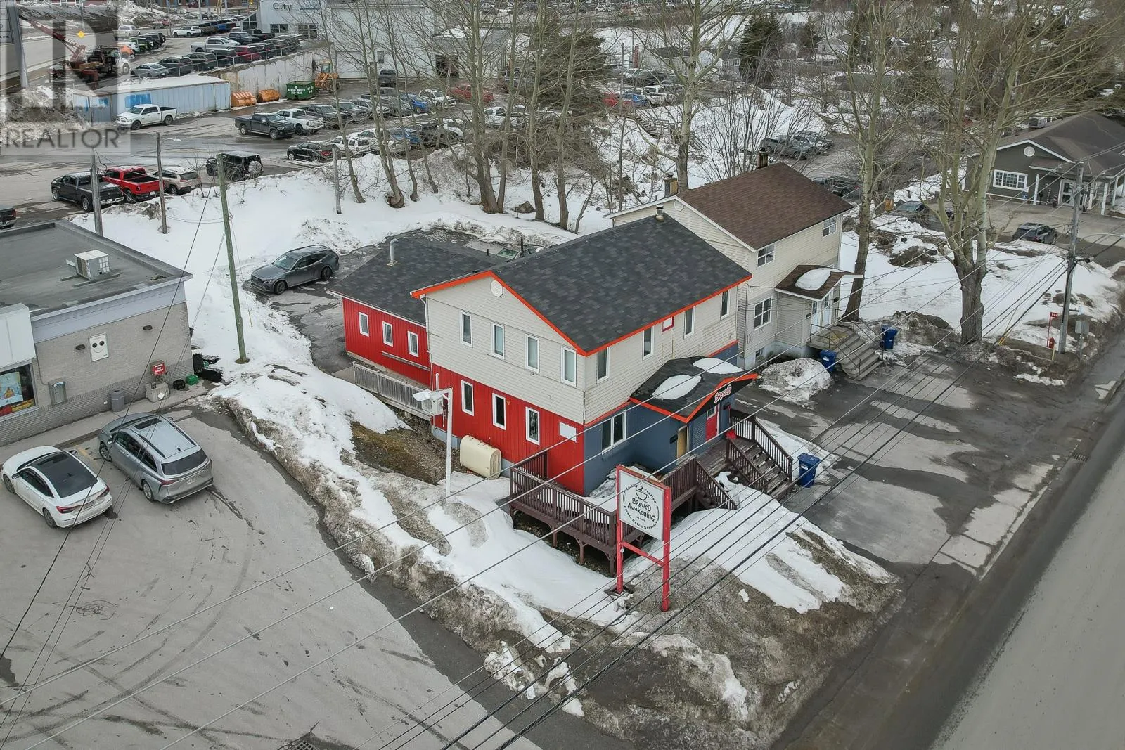 This commercial property is strategically situated, providing outstanding visibility and consistent pedestrian traffic. Its proximity to Grenfell Campus, College of the North Atlantic (CNA), Academy Canada, and various prominent public buildings ensures excellent exposure for your business. The site benefits from the proximity to Mount Bernard Avenue, OâConnell Drive, and University Drive, along with paved parking at both the front and rear of the building. The main level encompasses approximately 1,320 square feet and is designed for operational efficiency, featuring public washrooms, front and rear entrances, and a roll-up door to streamline deliveries and inventory replenishment. The lower level provides an additional 600 square feet, ideal for storage and cooler space. Enhancing the investment appeal, the second floor includes a self-contained three-bedroom apartment with a private entrance, offering a reliable source of supplemental income. Energy-efficient mini-splits serve both the commercial space and the residential unit, providing year-round heating and cooling. This versatile property presents an excellent opportunity for owner-operators or investors seeking a high-exposure location with built-in income potential. Call today to arrange your personal tour. (id:27476)
