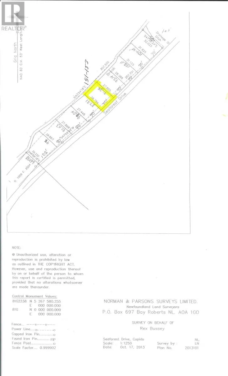 Located in the center of Cupids this property would make a great property to build your dream home, retirement home or starter home. The lot measures 70 x 98.9 x 70 x 91.5'. Rear of the property boarders' a small stream and the land sloped gently away with small stream in the back yard would make a nice family setting or perfect retirement homes. Land survey will be provided in the price. Town Water and Sewer runs along Seaforest Drive. Lots are HST Applicable. (id:27476)