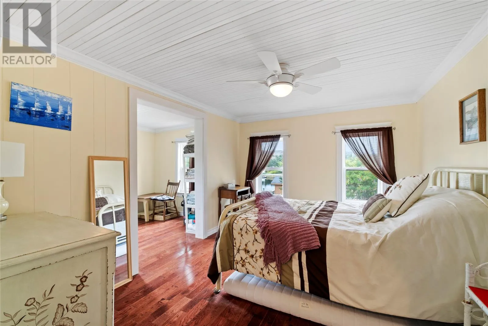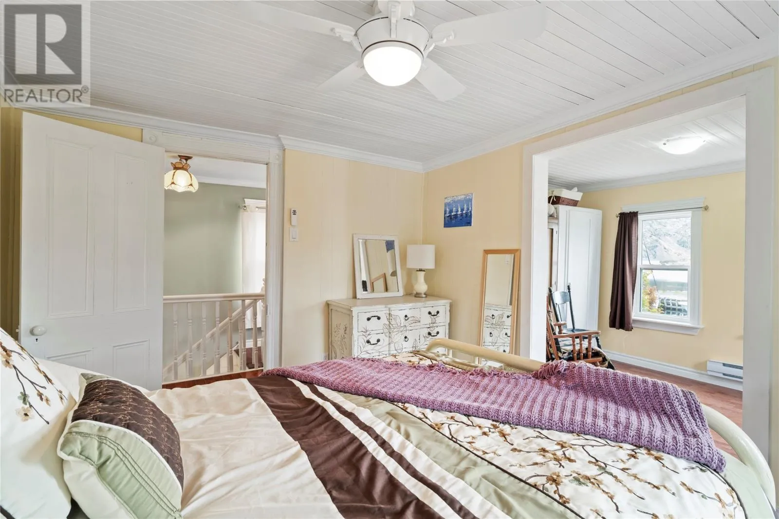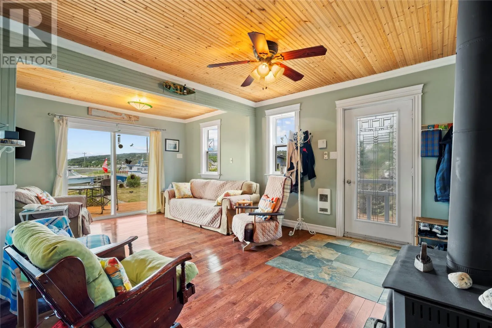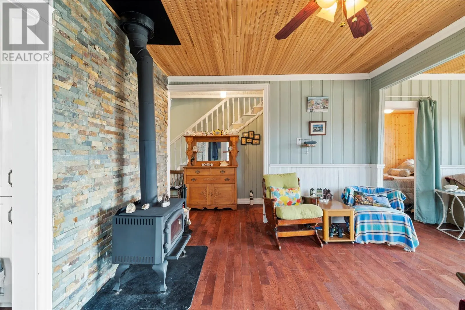 Nestled in the picturesque town of Cupids, this charming two-story home offers the ultimate coastal retreatâideal for year-round living, a serene summer getaway, or a turnkey Airbnb investment. Set directly on the water in Cupids Cove marina, just an hour from St. Johnâs, the property boasts approximately 95 feet of private shoreline, perfect for morning boats or sailboats, and is already wired for electricity at the waterâs edge. Inside, the main level features a cozy living room complete with a wood stove, a modernized kitchen equipped with a mini split for year-round comfort, and dining area. A versatile bonus room, currently used as a bedroom (window does not meet egress), and a convenient half bath complete the first floor. Upstairs, you'll find three generously sized bedrooms, including a spacious primary suite with an additional sitting area that offers stunning views overlooking the cove. A full bathroom completes the second floor. Outside, the home is equally well-appointed for summer living. Enjoy the expansive patio with a built-in "tiki bar" and fire pit, ideal for entertaining. A detached over sized shed provides ample storage for kayaks, gardening tools, and other outdoor essentials. Located just minutes from the historic town of Brigus and only an hour from St. Johnâs, this unique waterfront property combines charm, comfort, and convenience. **Possibility exists to subdivide the land, and also hook to municipal services, subject to town approvals (id:27476)