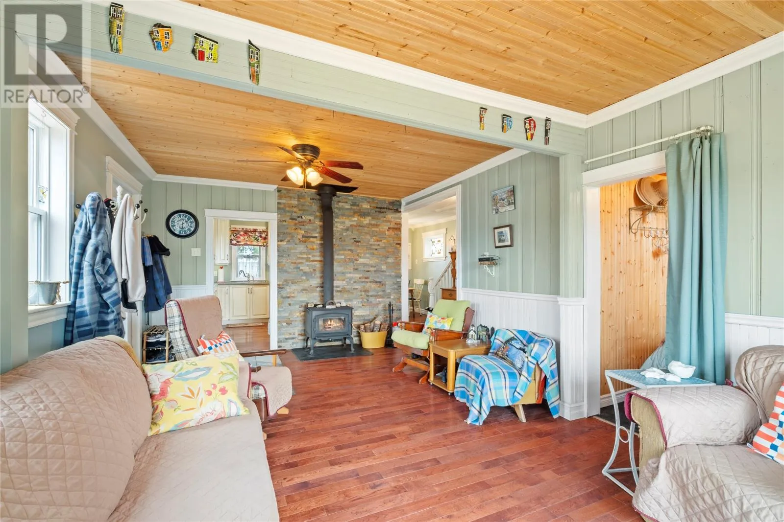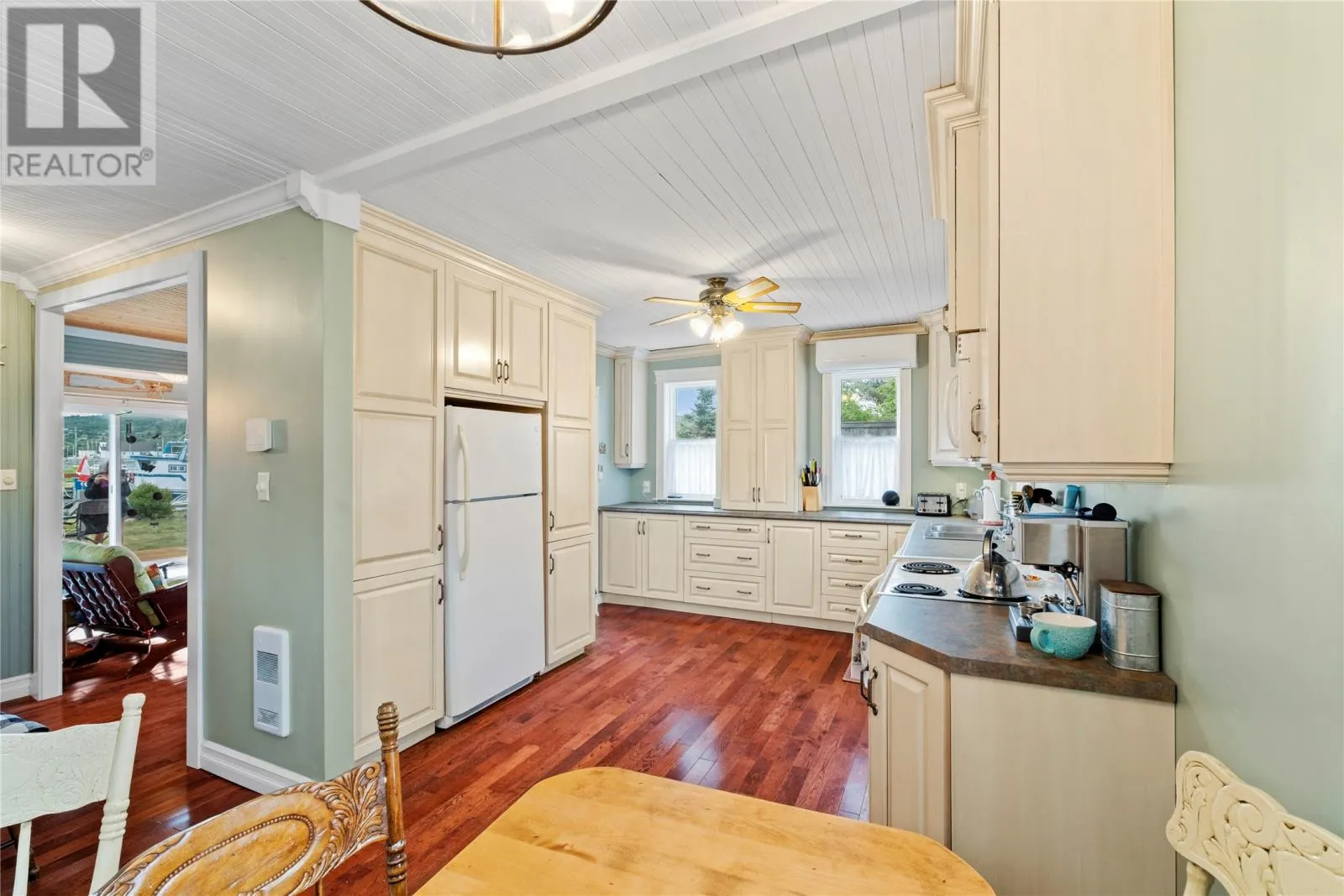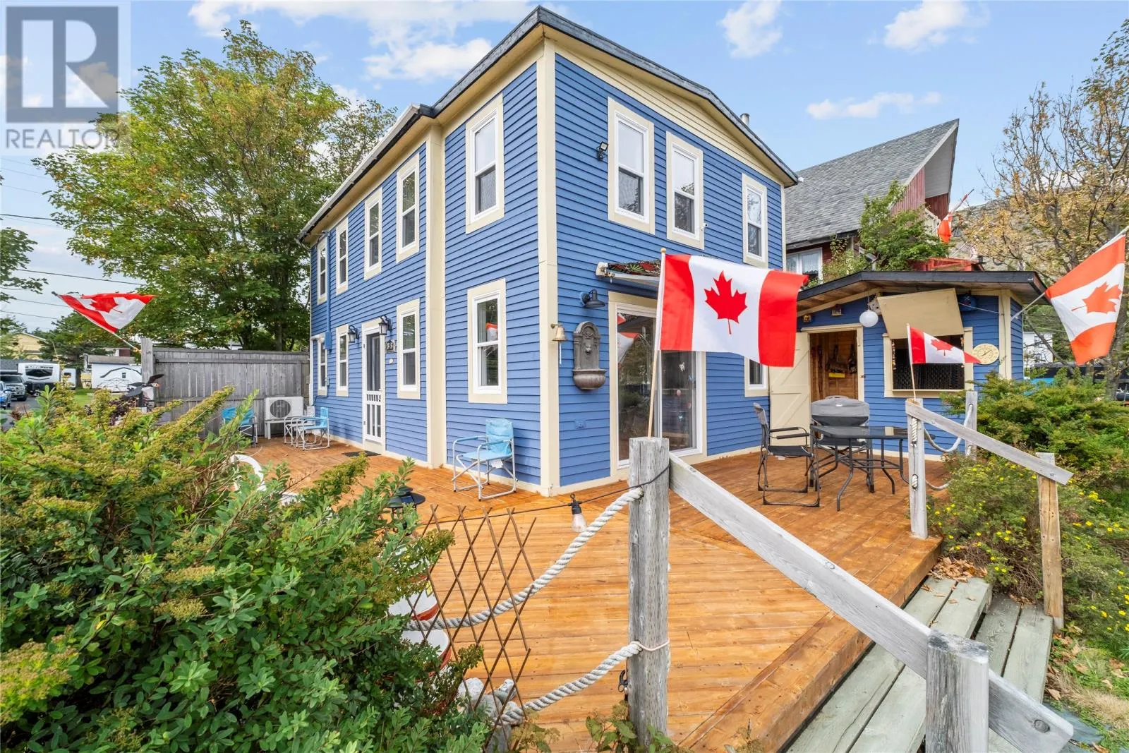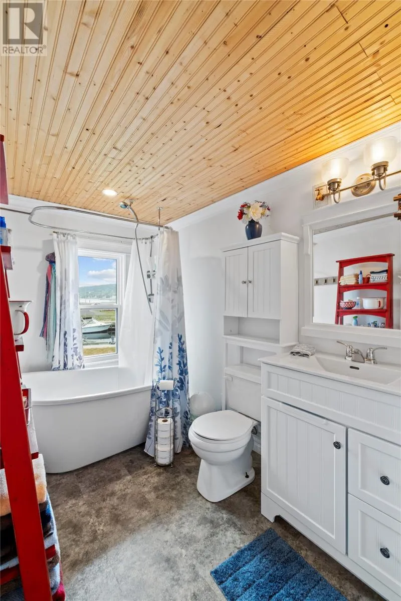 Nestled in the picturesque town of Cupids, this charming two-story home offers the ultimate coastal retreatâideal for year-round living, a serene summer getaway, or a turnkey Airbnb investment. Set directly on the water in Cupids Cove marina, just an hour from St. Johnâs, the property boasts approximately 95 feet of private shoreline, perfect for morning boats or sailboats, and is already wired for electricity at the waterâs edge. Inside, the main level features a cozy living room complete with a wood stove, a modernized kitchen equipped with a mini split for year-round comfort, and dining area. A versatile bonus room, currently used as a bedroom (window does not meet egress), and a convenient half bath complete the first floor. Upstairs, you'll find three generously sized bedrooms, including a spacious primary suite with an additional sitting area that offers stunning views overlooking the cove. A full bathroom completes the second floor. Outside, the home is equally well-appointed for summer living. Enjoy the expansive patio with a built-in "tiki bar" and fire pit, ideal for entertaining. A detached over sized shed provides ample storage for kayaks, gardening tools, and other outdoor essentials. Located just minutes from the historic town of Brigus and only an hour from St. Johnâs, this unique waterfront property combines charm, comfort, and convenience. **Possibility exists to subdivide the land, and also hook to municipal services, subject to town approvals (id:27476)