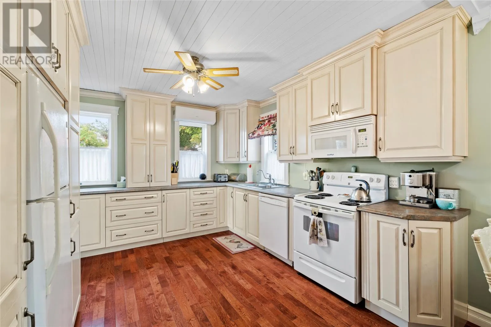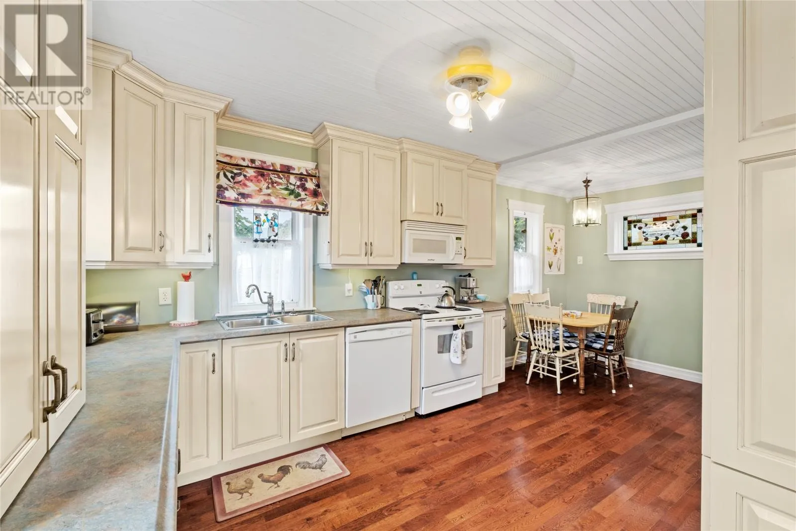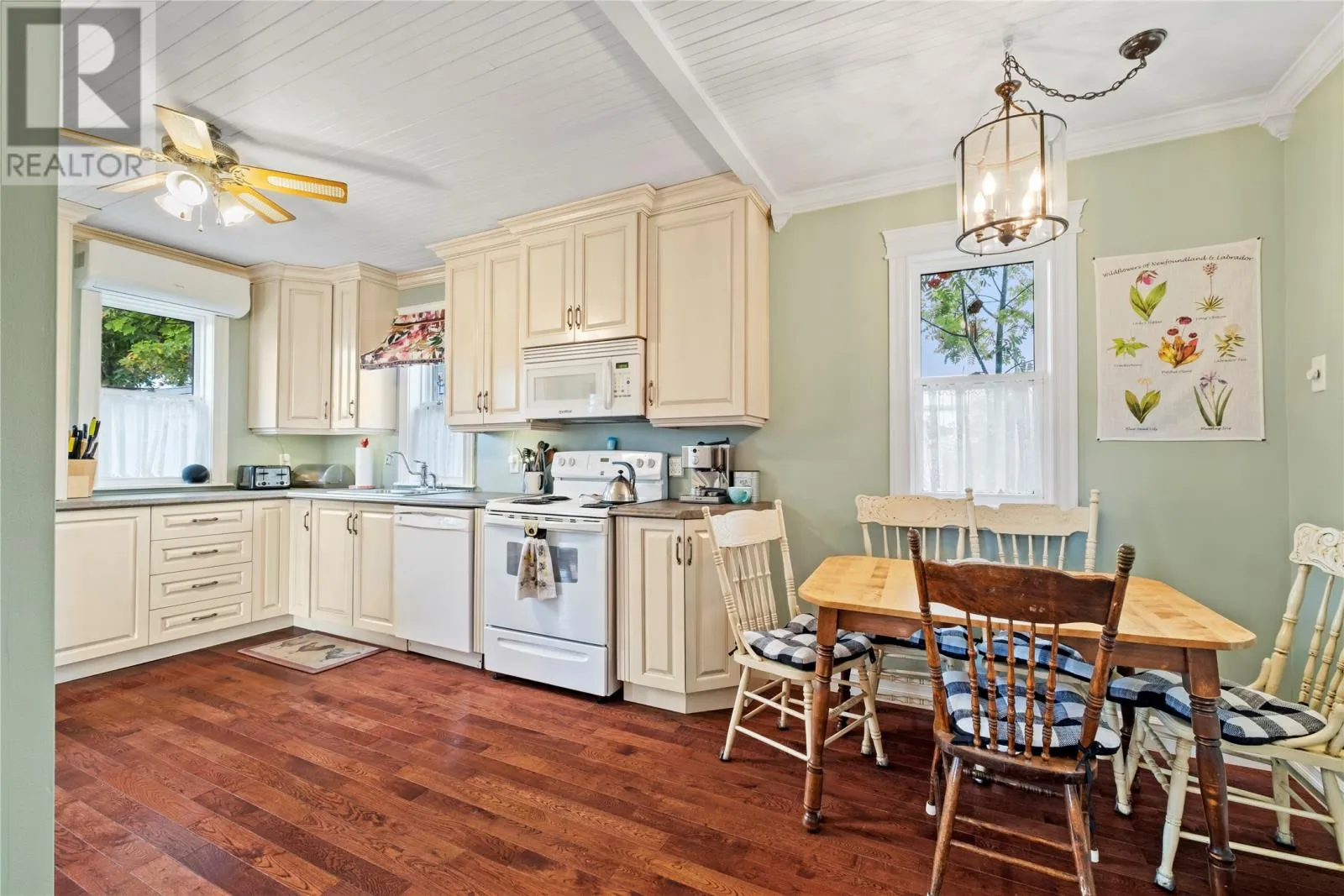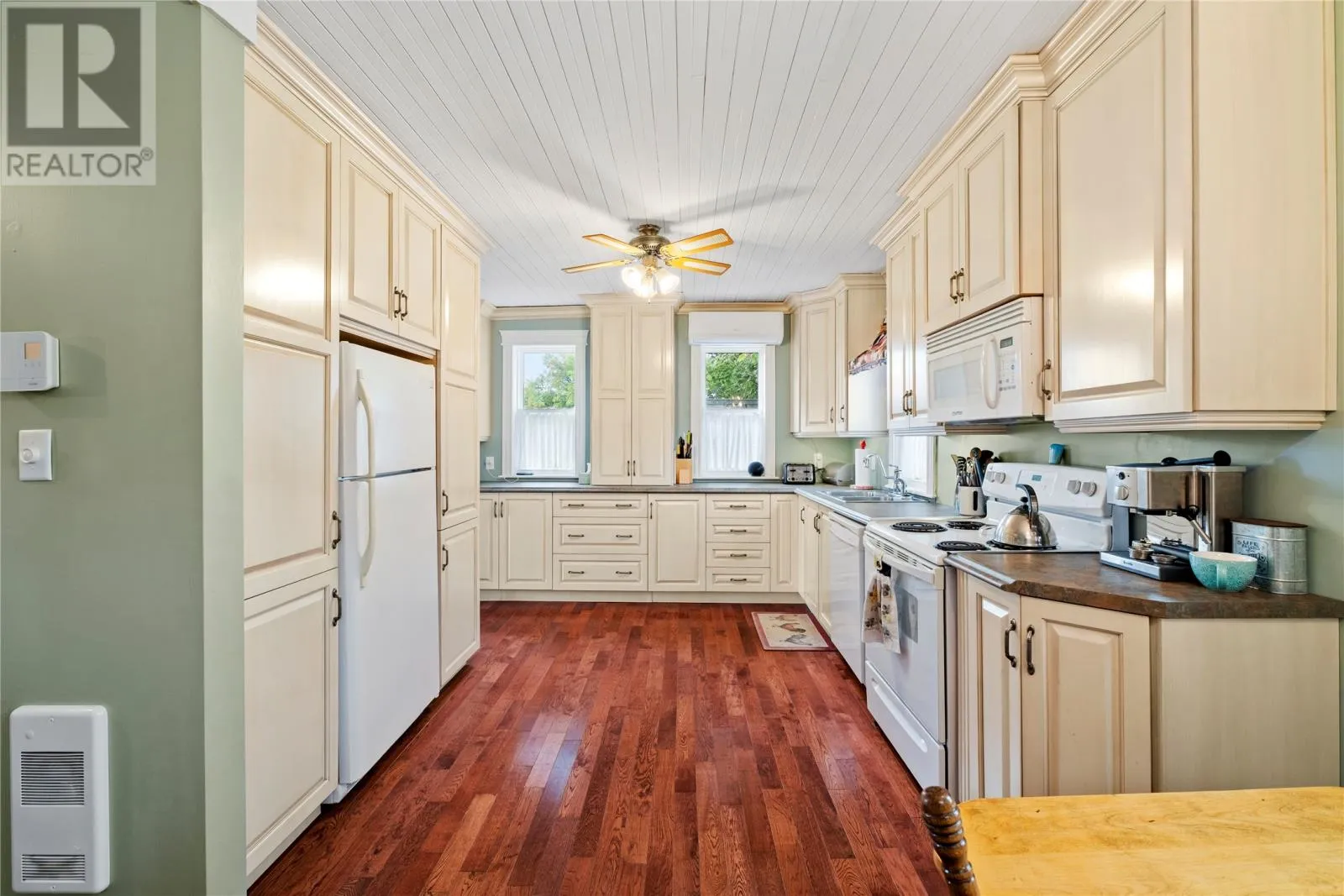 Nestled in the picturesque town of Cupids, this charming two-story home offers the ultimate coastal retreatâideal for year-round living, a serene summer getaway, or a turnkey Airbnb investment. Set directly on the water in Cupids Cove marina, just an hour from St. Johnâs, the property boasts approximately 95 feet of private shoreline, perfect for morning boats or sailboats, and is already wired for electricity at the waterâs edge. Inside, the main level features a cozy living room complete with a wood stove, a modernized kitchen equipped with a mini split for year-round comfort, and dining area. A versatile bonus room, currently used as a bedroom (window does not meet egress), and a convenient half bath complete the first floor. Upstairs, you'll find three generously sized bedrooms, including a spacious primary suite with an additional sitting area that offers stunning views overlooking the cove. A full bathroom completes the second floor. Outside, the home is equally well-appointed for summer living. Enjoy the expansive patio with a built-in "tiki bar" and fire pit, ideal for entertaining. A detached over sized shed provides ample storage for kayaks, gardening tools, and other outdoor essentials. Located just minutes from the historic town of Brigus and only an hour from St. Johnâs, this unique waterfront property combines charm, comfort, and convenience. **Possibility exists to subdivide the land, and also hook to municipal services, subject to town approvals (id:27476)
