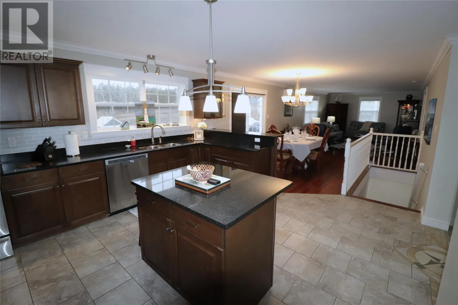 Gorgeous Family Home in Deer Lake! Welcome to Nichols Landing Subdivision, where this stunning modern home is sure to impress! Designed with comfort and style in mind, this property features an open-concept layout and exceptional attention to detail throughout.The spacious kitchen boasts granite countertops, stainless steel appliances, an island with a breakfast bar, and in-floor heating for year-round comfort. The main level showcases beautiful hardwood and ceramic floors, three spacious bedroomsâincluding a primary suite with ensuite bath and walk-in closetâplus an office and a large, welcoming front entrance. The lower level is fully developed, offering even more versatile living space. Enjoy a theatre room, additional bedroom, half bathroom, bonus room, and plenty of storage. With a walkout basement, this level could easily be modified for an in-law suite or rental unit. Outside, the home sits on a large corner lot with a 28â x 32â double car garage and a charming covered front veranda, perfect for relaxing with your morning coffee. This home truly has it allâmodern design, quality finishes, and plenty of space for the whole family. Call today to schedule your viewingâthis home is sure to impress! As per seller direction, offers to be submitted No earlier than Nov.12-1pm; All offers to be left open until Nov12-6pm. (id:27476)