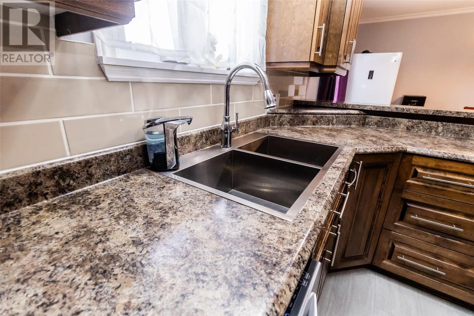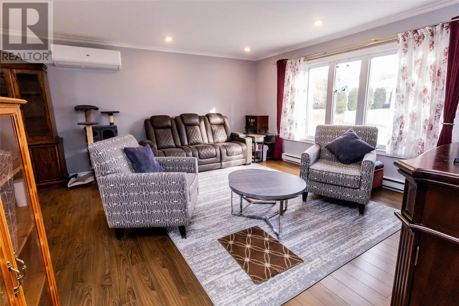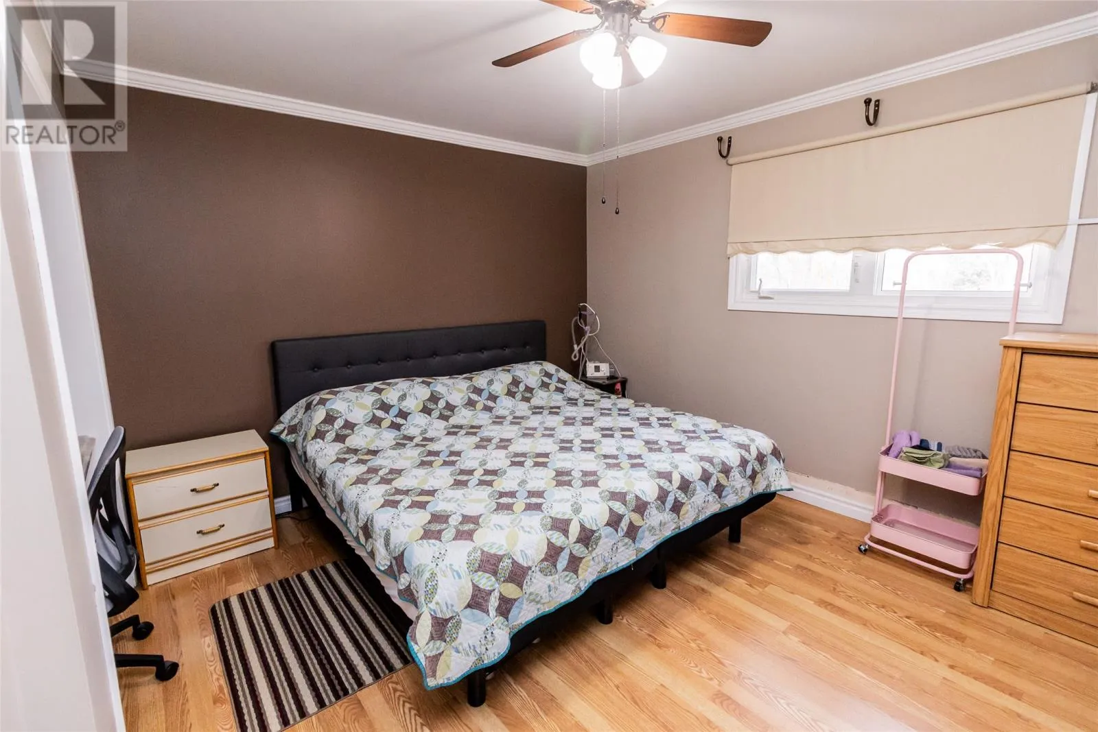 Welcome to this beautifully maintained three bedroom, two bathroom split entry home in the heart of Deer Lake - just minutes from town site amenities. Set on a landscaped 75x144 lot, the property features a large paved driveway extending to the 16x20 shed with loft - perfect for storage. The backyard offers ample space and privacy, along with a newly built back deck. Iinside, the inviting front porch addition leads to a bright main level with a traditional modern kitchen with stainless steel appliances, an open dining area and convenient main floor laundry. From the kitchen area, step into the sun-filled new sunroom, a perfect space to relax! The main floor also includes two comfortable bedrooms, a spacious living room and a large main floor bathroom. The lower basement level offers a cozy family room with a wood stove, a third bedroom, 3PC bath and plenty of storage with access to the backyard. Recent upgrades include: patio/sunroom, shingles 2021, kitchen flooring, two heat pumps 2021, some electric heaters replaced 2021, 80% of the basement subfloor and flooring have been replaced, six new basement windows, shingles 2021, front porch add on, driveway extension. This move in ready home combines comfort, functionality and great curb appeal. Don't delay - call today for your personal showing! (id:27476)