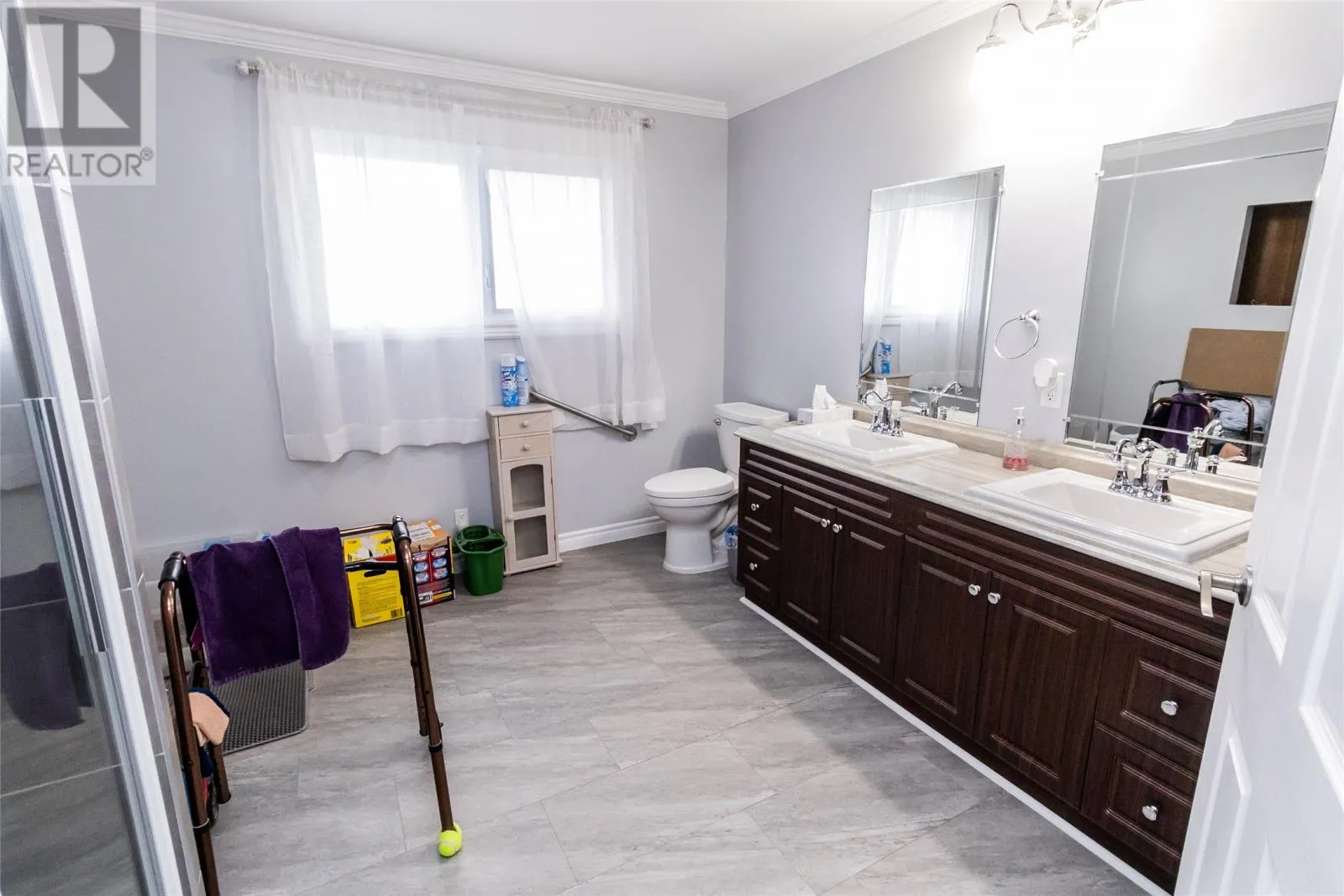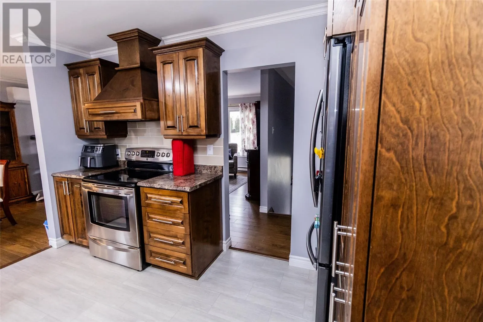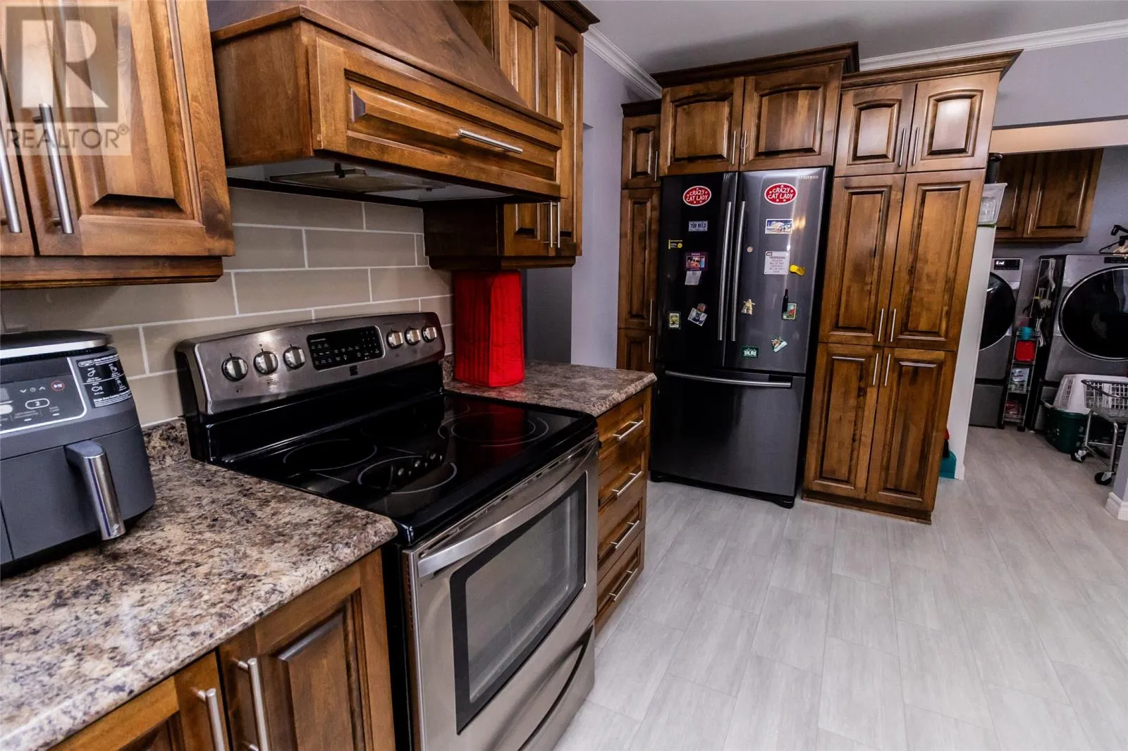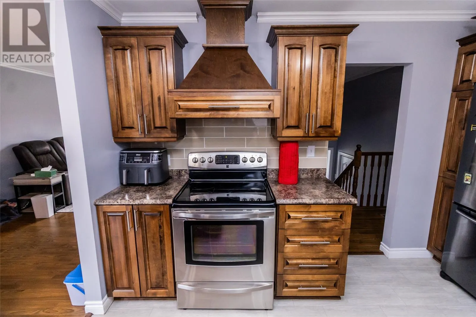 Welcome to this beautifully maintained three bedroom, two bathroom split entry home in the heart of Deer Lake - just minutes from town site amenities. Set on a landscaped 75x144 lot, the property features a large paved driveway extending to the 16x20 shed with loft - perfect for storage. The backyard offers ample space and privacy, along with a newly built back deck. Iinside, the inviting front porch addition leads to a bright main level with a traditional modern kitchen with stainless steel appliances, an open dining area and convenient main floor laundry. From the kitchen area, step into the sun-filled new sunroom, a perfect space to relax! The main floor also includes two comfortable bedrooms, a spacious living room and a large main floor bathroom. The lower basement level offers a cozy family room with a wood stove, a third bedroom, 3PC bath and plenty of storage with access to the backyard. Recent upgrades include: patio/sunroom, shingles 2021, kitchen flooring, two heat pumps 2021, some electric heaters replaced 2021, 80% of the basement subfloor and flooring have been replaced, six new basement windows, shingles 2021, front porch add on, driveway extension. This move in ready home combines comfort, functionality and great curb appeal. Don't delay - call today for your personal showing! (id:27476)
