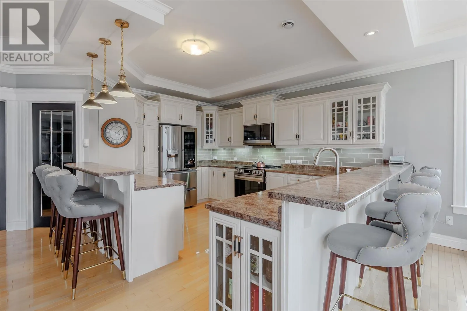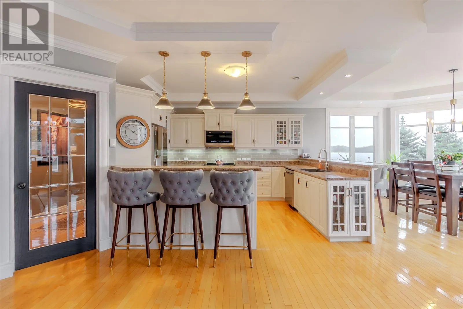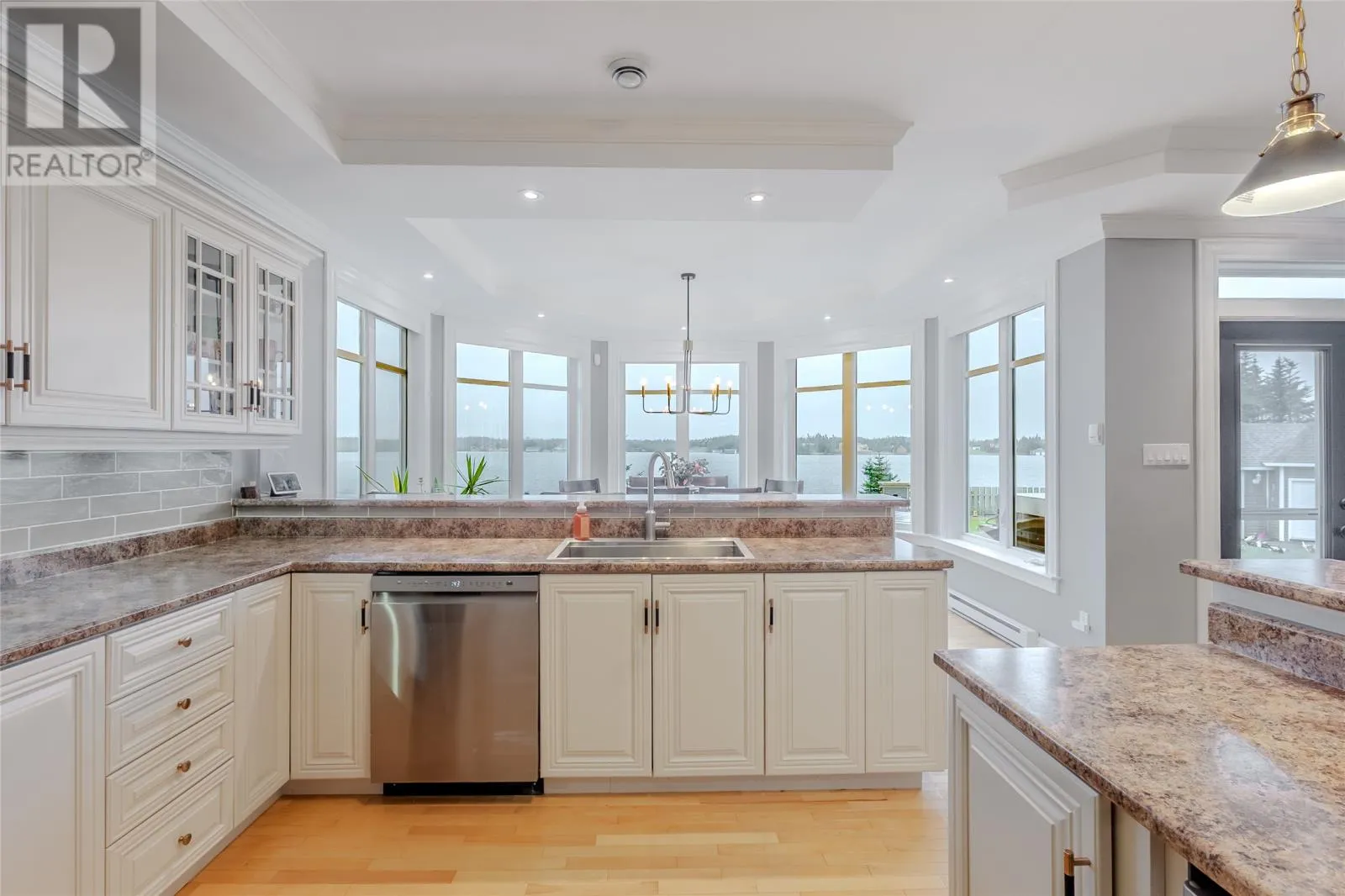 With year-round access and less than 4 km from the main road, this exceptional waterfront property sits on one of the nicest lots on Little Gull Pond in Deer Park, offering a rare opportunity to enjoy cabin living just 45 minutes from the city. Thoughtfully upgraded throughout, this executive retreat delivers an unmatched combination of comfort, style, and outdoor adventure. The main floor features a bright open-concept kitchen, dining, and living area with panoramic water views from every window, an updated and functional main-floor laundry room, and an impressive primary suite complete with a walk-in closet, spa-like ensuite with whirlpool tub and large shower, high ceilings, an electric fireplace, and a peaceful sitting area overlooking the pond. The second level includes two additional bedrooms and a full bath, while the newly developed basement offers a spacious rec room, a convenient mudroom with exterior access, and a partially finished guest room or home gym. Recent enhancements further elevate the property, including a paved driveway, a 400-amp electrical upgrade, refreshed landscaping, an expanded exterior patio, and a newly built 24' Ã 26' detached garage, one of multiple outbuildings ideal for storing recreational equipment. Outside, the large deck captures sweeping, unobstructed views of the water, and the beautifully landscaped grounds lead to exceptional pond frontage complete with a dock and floating wharf, making it effortless to launch your boat, kayak, or paddleboard. With direct access to ATV and trail systems, proximity to The Wilds Golf Course, and the rarity of securing a premier lot on this highly sought-after pond, this meticulously maintained property stands as a high-end retreat ready to enjoy in every season. (id:27476)