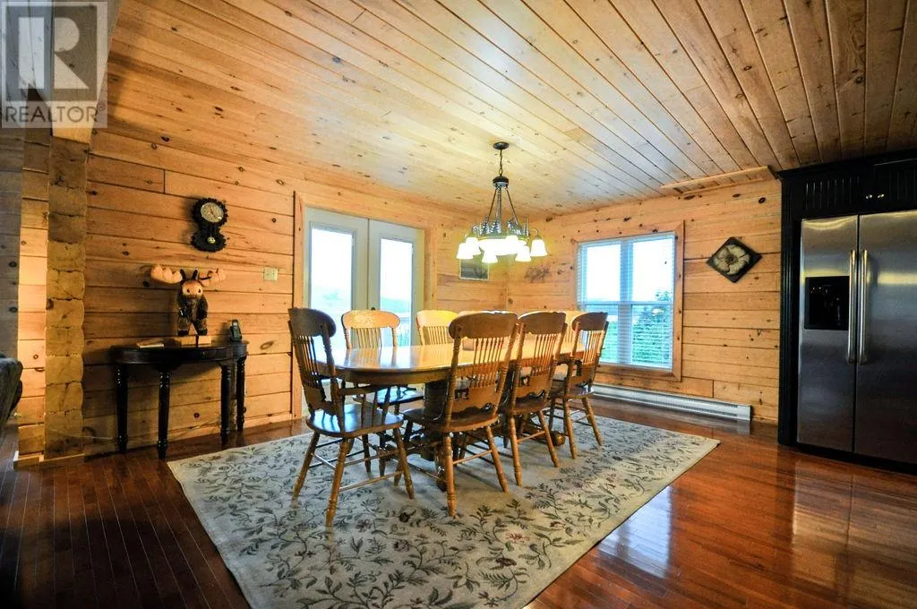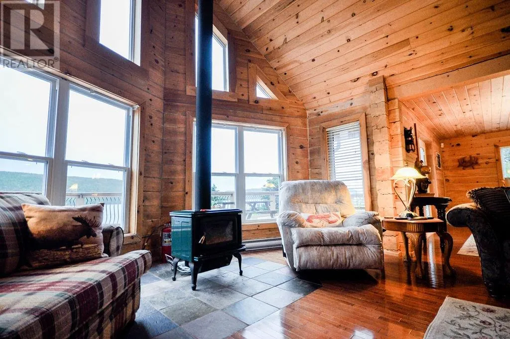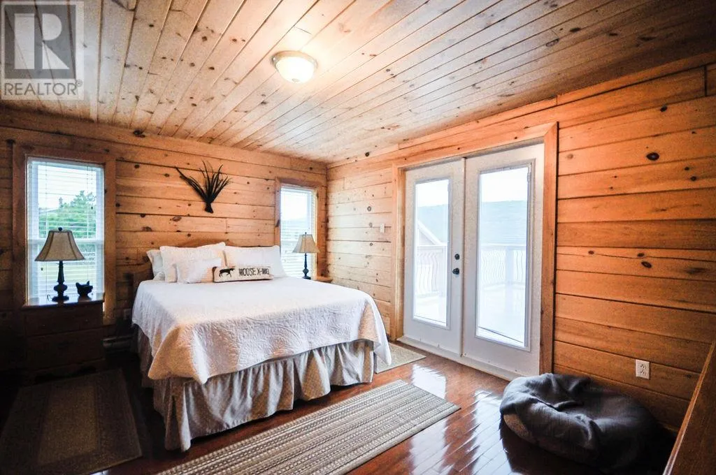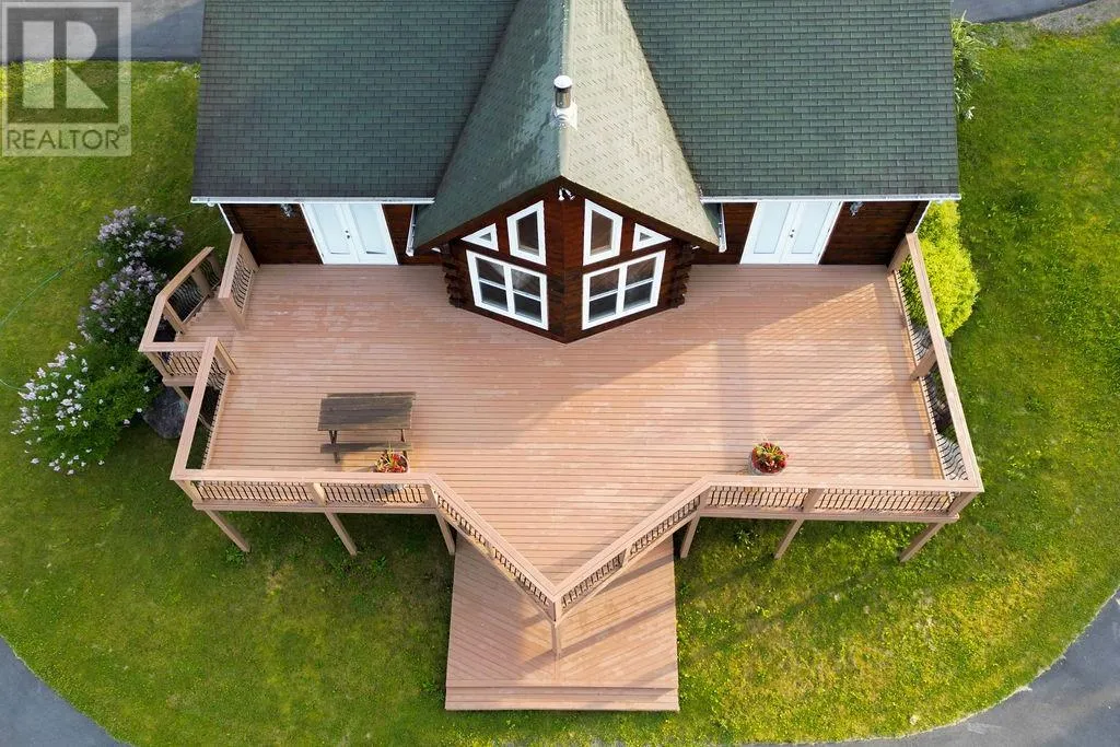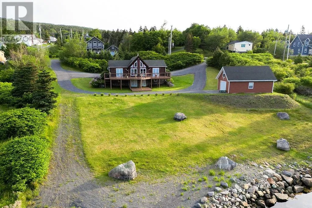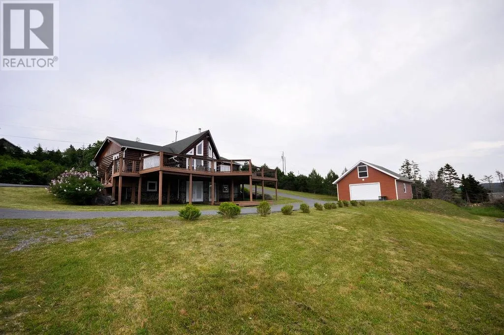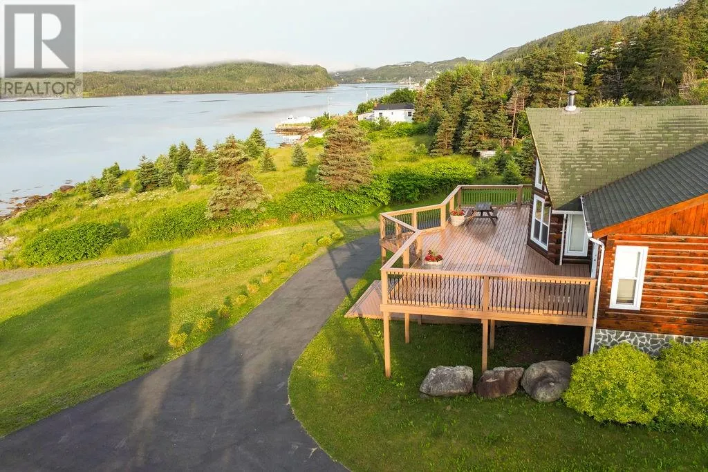 Take in luxury oceanside living in this beautifully unique log style home nestled in the desirable community of Dunville, Placentia Bay. With an industrial structured dock and unobstructed views and frontage of the Northeast Arm of the Placentia Bay, this property is any water lovers dream. This immaculately landscaped property provides lots of privacy and is truly peaceful. The home welcomes you with a very spacious and inviting foyer with plenty of storage. The open concept living area boasts vaulted ceilings, a dream kitchen, large dining area, as well as a breakfast nook. Enjoy the option of the cozy wood stove heat for those winter days in the main living room. The main floor also features a full main bathroom and one spacious bedroom. Upstairs features a loft bedroom that could be used as a space of your choice. The fully developed basement presents a large family room, 3 spacious bedrooms, and an additional full bathroom. The 2-car garage boasts an additional full bathroom on the lower level and an upper loft bedroom area, for those extra guests or could even provide as a rental income. The garage had recently received brand new siding, giving it a fresh new look. This property has very minimal wear and tear and has received an abundance of proper TLC over the years with cleaners and landscapers. (id:27476)