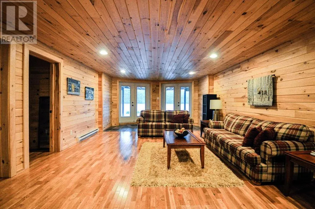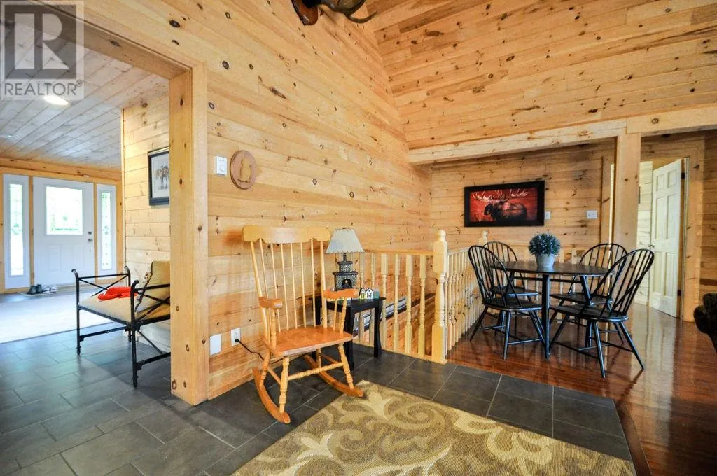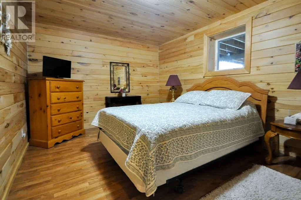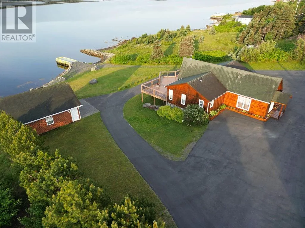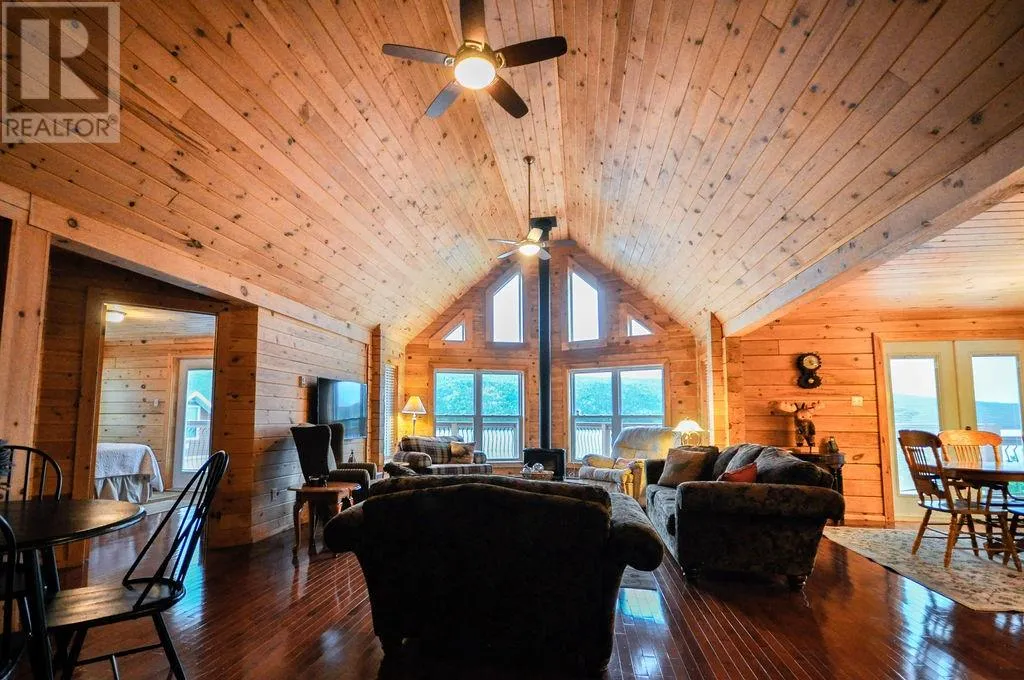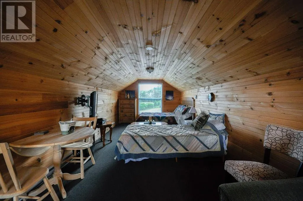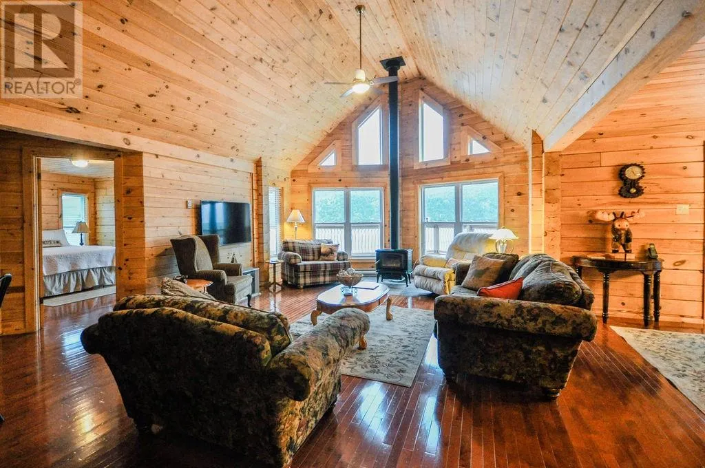 Take in luxury oceanside living in this beautifully unique log style home nestled in the desirable community of Dunville, Placentia Bay. With an industrial structured dock and unobstructed views and frontage of the Northeast Arm of the Placentia Bay, this property is any water lovers dream. This immaculately landscaped property provides lots of privacy and is truly peaceful. The home welcomes you with a very spacious and inviting foyer with plenty of storage. The open concept living area boasts vaulted ceilings, a dream kitchen, large dining area, as well as a breakfast nook. Enjoy the option of the cozy wood stove heat for those winter days in the main living room. The main floor also features a full main bathroom and one spacious bedroom. Upstairs features a loft bedroom that could be used as a space of your choice. The fully developed basement presents a large family room, 3 spacious bedrooms, and an additional full bathroom. The 2-car garage boasts an additional full bathroom on the lower level and an upper loft bedroom area, for those extra guests or could even provide as a rental income. The garage had recently received brand new siding, giving it a fresh new look. This property has very minimal wear and tear and has received an abundance of proper TLC over the years with cleaners and landscapers. (id:27476)