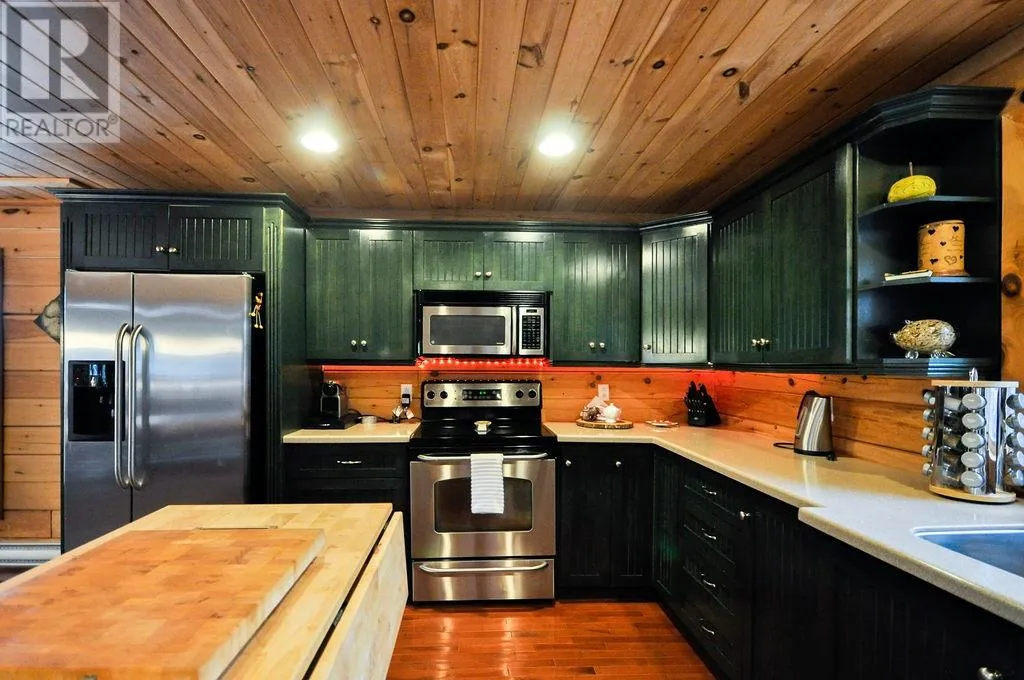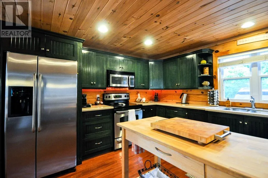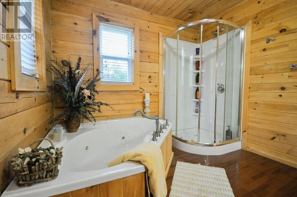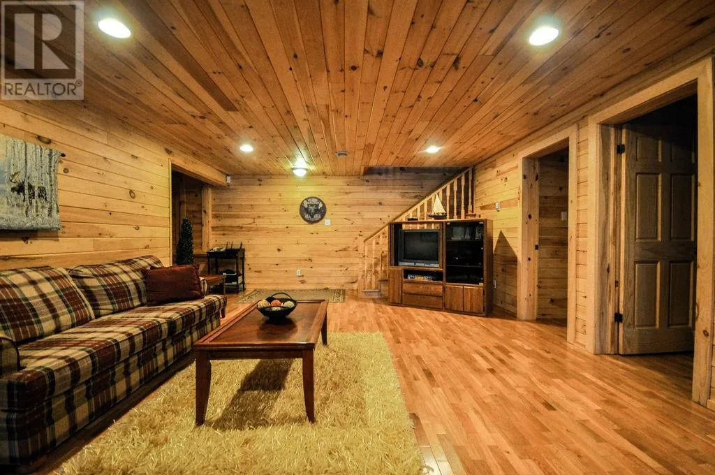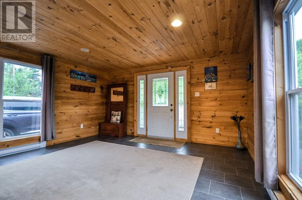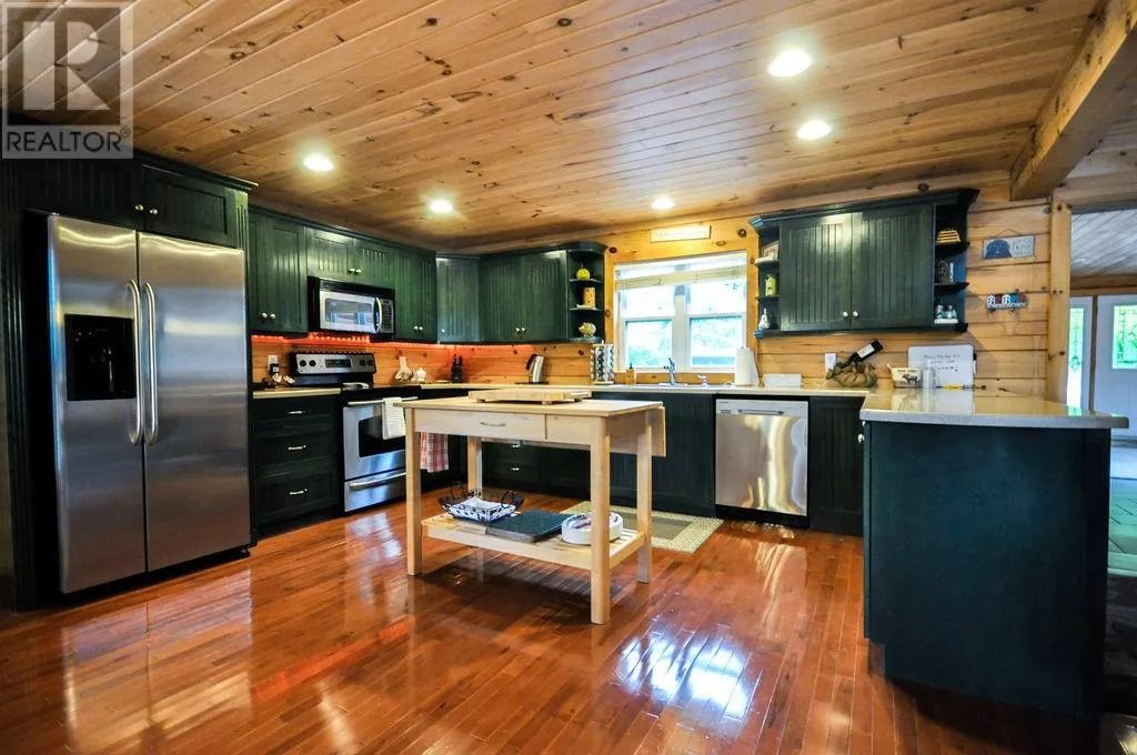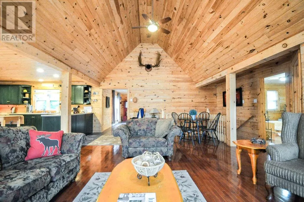 Take in luxury oceanside living in this beautifully unique log style home nestled in the desirable community of Dunville, Placentia Bay. With an industrial structured dock and unobstructed views and frontage of the Northeast Arm of the Placentia Bay, this property is any water lovers dream. This immaculately landscaped property provides lots of privacy and is truly peaceful. The home welcomes you with a very spacious and inviting foyer with plenty of storage. The open concept living area boasts vaulted ceilings, a dream kitchen, large dining area, as well as a breakfast nook. Enjoy the option of the cozy wood stove heat for those winter days in the main living room. The main floor also features a full main bathroom and one spacious bedroom. Upstairs features a loft bedroom that could be used as a space of your choice. The fully developed basement presents a large family room, 3 spacious bedrooms, and an additional full bathroom. The 2-car garage boasts an additional full bathroom on the lower level and an upper loft bedroom area, for those extra guests or could even provide as a rental income. The garage had recently received brand new siding, giving it a fresh new look. This property has very minimal wear and tear and has received an abundance of proper TLC over the years with cleaners and landscapers. (id:27476)
