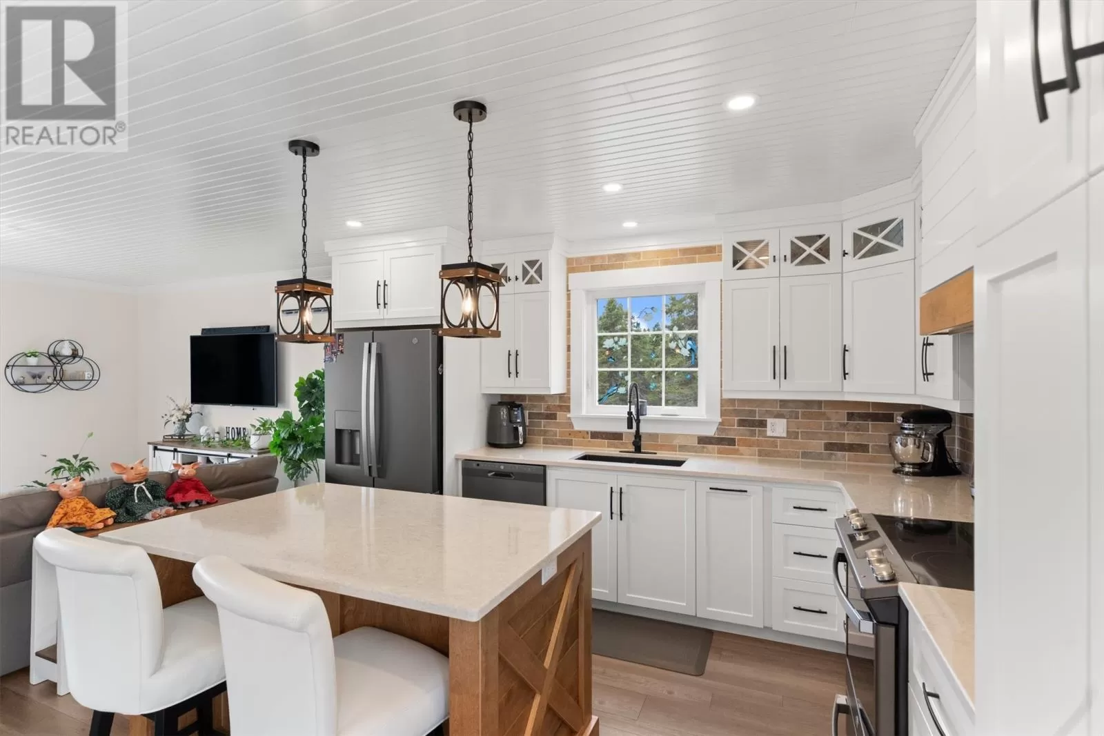 follow route 310 to the Eastport Pennisula. Turn left on Legion Road the house is on the LH side at the intersection between Legion Road and Northside Road Step into coastal living at its finest with this beautiful 2023 new build, ideally located just steps from the sandy shores of Eastport Beach on the scenic Eastport Peninsulaânow proudly known as Terras Edge. This thoughtfully designed home offers the perfect combination of modern comfort, energy efficiency, and seaside charm. Inside, youâll find a bright and spacious open-concept layout, filled with natural light and perfect for entertaining. The dream kitchen features quartz countertops, a large sit-up island, and top-of-the-line appliancesâideal for both everyday living and hosting guests. The main level offers two generously sized bedrooms and two full bathrooms, finished with clean, contemporary style. Energy efficiency is built right in, with R70 insulation in the attic, R22 in the exterior walls, and two 18,000 BTU mini-splits to keep you comfortable year-round. Downstairs, a full walk-out basement offers great potential, with drywall already installed on the perimeter wallsâready for your personal touch. The home sits on a huge 120x220 ft lot, offering privacy, space, and endless outdoor possibilities. Youâll also appreciate the 22x24 ft insulated and wired double garage, perfect for vehicles, storage, or a workshop. For added convenience, the property includes a 50-amp RV service, ideal for visiting friends or extended stays. This home offers not just a place to live, but a lifestyleâsurrounded by breathtaking beaches, hiking trails, and the welcoming community of Eastport. Whether you're looking for a year-round residence, a summer retreat, or a smart investment, this property is a rare find in one of Newfoundland's most beloved coastal destinations. (id:27476)