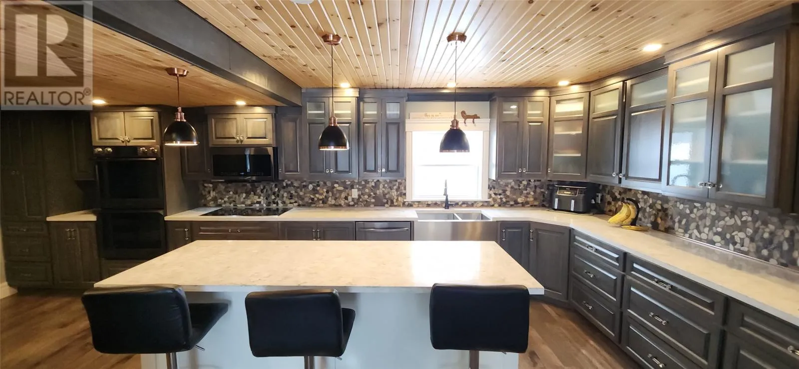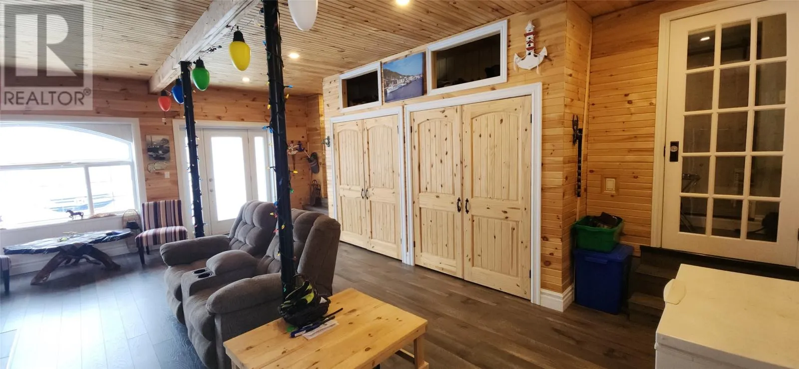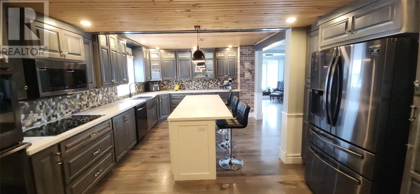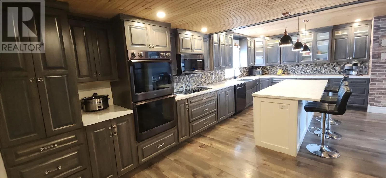 The Eastport Pennisula is located at the edge of Terra Nova National Park. The community of Eastport is a very popular destination for tourists. It is located just minutes from the ocean and is famous for its sandy beaches. If you like boating and fishing then you will appreciate the easy access to the ocean with its many coves and open water. This property sits on a half acre lot which is only minutes from the beach. This home has received extensive renovations in recent years. Inside you will find a fabulous kitchen with quartz counter top, huge island, and high end appliances. There's a double oven, counter top stove, built in microwave , dishwasher and fridge with double doors and drawers. The kitchen is open to the dining area. The living room features a wood burning fireplace. The main floor also has a half bathroom with laundry. Downstairs is a 10 x 18 storage room. You will absolutely love to relax in the huge family room. It features loads of pine and huge closets. The wood burning cook stove sets the mood for a game of darts and a big feed! Upstairs there's a large primary bedroom with walk in closet and ensuite with shower. The vendor has installed a patio door in the primary to accommadate a private deck if the new owners desire. There's also 3 more bedrooms for family and guests. At the top of the staircase the landing is large enough to make a great den, games room, or gym. . Outside there is loads of parking , a paved driveway plus a large gravel driveway going back to the garage. There's lots of room to park an Rv. The 28 x30 garage will provide loads of room to keep all the toys. Upstairs, the loft has pine walls and ceiling. There's a wood stove to add to the ambiance. The Vendor has created a separate 10 x 9 room. There are many possibilities for this loft. A little reno and this could be an Air BnB , guest room or just a place to hang out! In case of storms the house has a geneartor panel, a generator, and lots of wood heat. (id:27476)