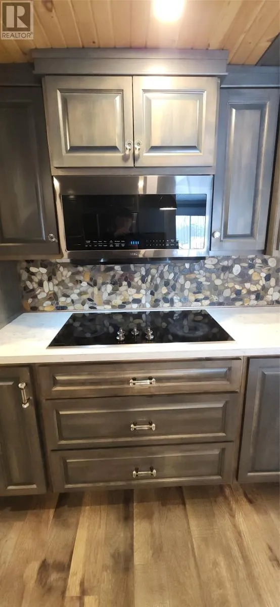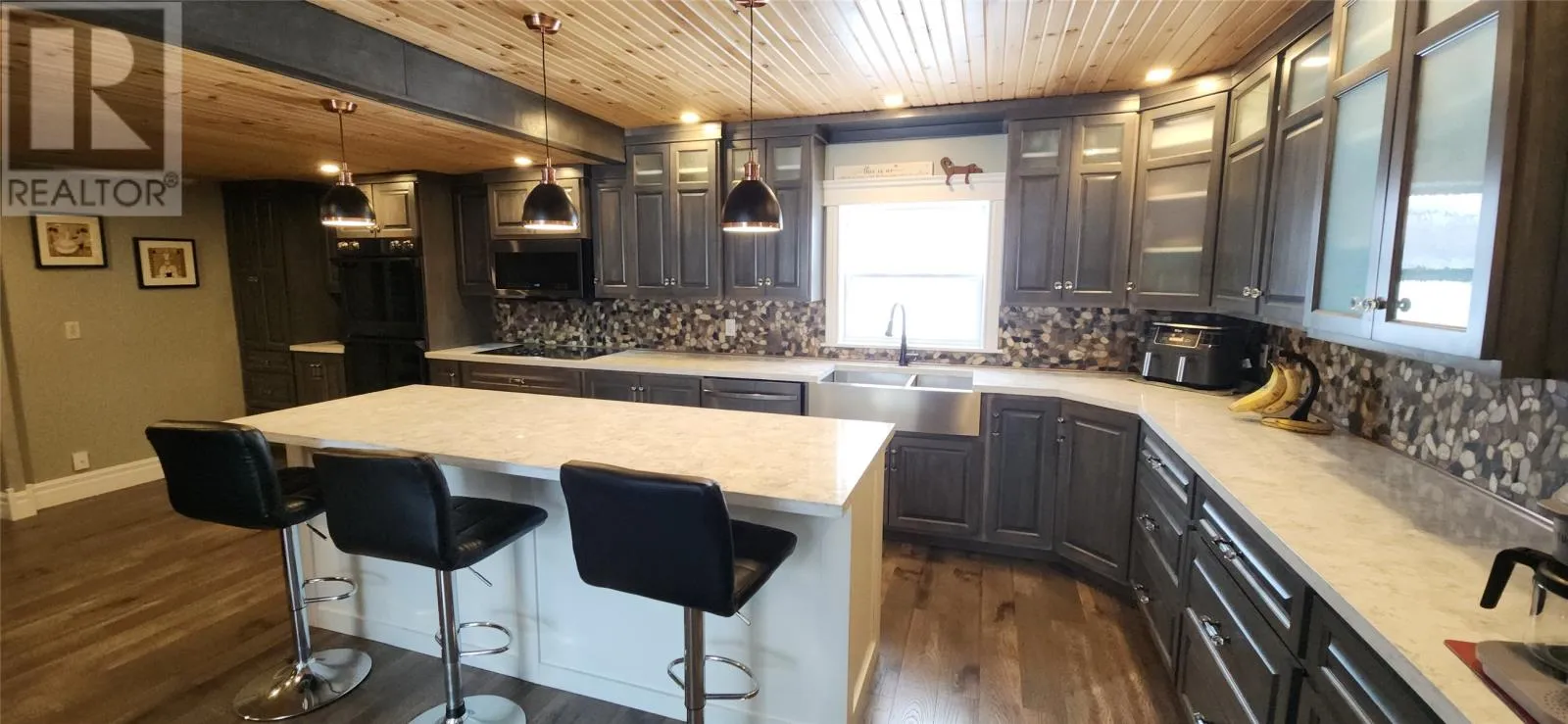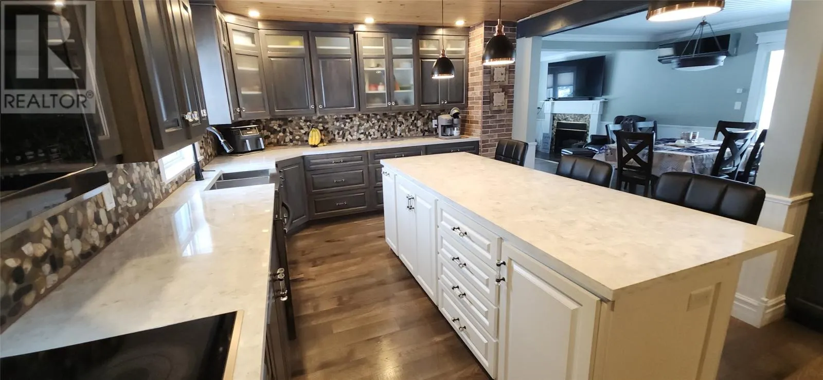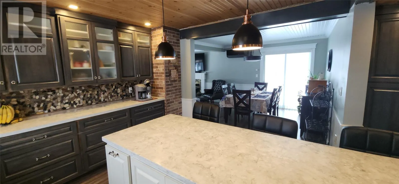 The Eastport Pennisula is located at the edge of Terra Nova National Park. The community of Eastport is a very popular destination for tourists. It is located just minutes from the ocean and is famous for its sandy beaches. If you like boating and fishing then you will appreciate the easy access to the ocean with its many coves and open water. This property sits on a half acre lot which is only minutes from the beach. This home has received extensive renovations in recent years. Inside you will find a fabulous kitchen with quartz counter top, huge island, and high end appliances. There's a double oven, counter top stove, built in microwave , dishwasher and fridge with double doors and drawers. The kitchen is open to the dining area. The living room features a wood burning fireplace. The main floor also has a half bathroom with laundry. Downstairs is a 10 x 18 storage room. You will absolutely love to relax in the huge family room. It features loads of pine and huge closets. The wood burning cook stove sets the mood for a game of darts and a big feed! Upstairs there's a large primary bedroom with walk in closet and ensuite with shower. The vendor has installed a patio door in the primary to accommadate a private deck if the new owners desire. There's also 3 more bedrooms for family and guests. At the top of the staircase the landing is large enough to make a great den, games room, or gym. . Outside there is loads of parking , a paved driveway plus a large gravel driveway going back to the garage. There's lots of room to park an Rv. The 28 x30 garage will provide loads of room to keep all the toys. Upstairs, the loft has pine walls and ceiling. There's a wood stove to add to the ambiance. The Vendor has created a separate 10 x 9 room. There are many possibilities for this loft. A little reno and this could be an Air BnB , guest room or just a place to hang out! In case of storms the house has a geneartor panel, a generator, and lots of wood heat. (id:27476)