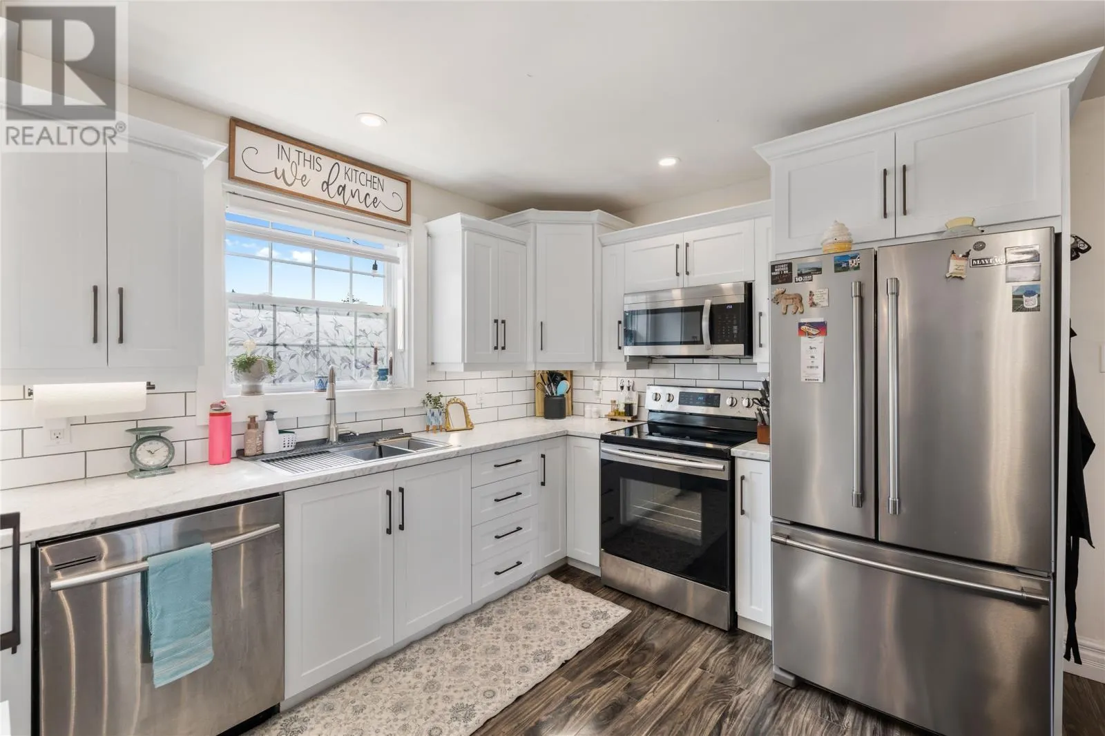 Sitting on nearly half an acre in the charming seaside community of Fermeuse, this beautifully updated 2-bedroom, 2-bathroom home offers comfort, convenience, and timeless appeal. The heart of the home is a recently renovated kitchen (2023) boasting crisp white cabinetry, stainless steel appliances, and modern countertops, ideal for gatherings and everyday life. A thoughtfully designed living and dining area flows effortlessly from the kitchen, offering an open-concept layout enhanced by calming neutrals and abundant natural light. Retreat to a luxurious primary ensuite, complete with a deep soaker tub, your own private sanctuary for windy nights or lazy weekend mornings. Additional well-appointed bedroom and bathroom accommodations complete the main floor. The fully developed basement expands the home's versatility with two large, bright rooms, perfect for guest quarters, a home office, or hobby space. A brand-new roof (fall 2024), mini-split (2023), updated septic field (2021), upgraded plumbing (within the last 10 years), and a high-efficiency oil furnace (2016) ensure peace of mind and energy efficiency. Step outside to discover an attached garage, plus a detached 20Ã25 garage and two sheds (12Ã20 and 10Ã12) for workshop space or storage. The fenced backyard and deck provide an ideal outdoor setting for summer barbecues, sun-soaked mornings, or quiet moments surrounded by nature. Set against the backdrop of gentle coastal hills, scenic trails, and a strong sense of community, this property invites you to enjoy relaxed, seaside living, just a short drive from Ferryland and east coast hiking adventures. (id:27476)