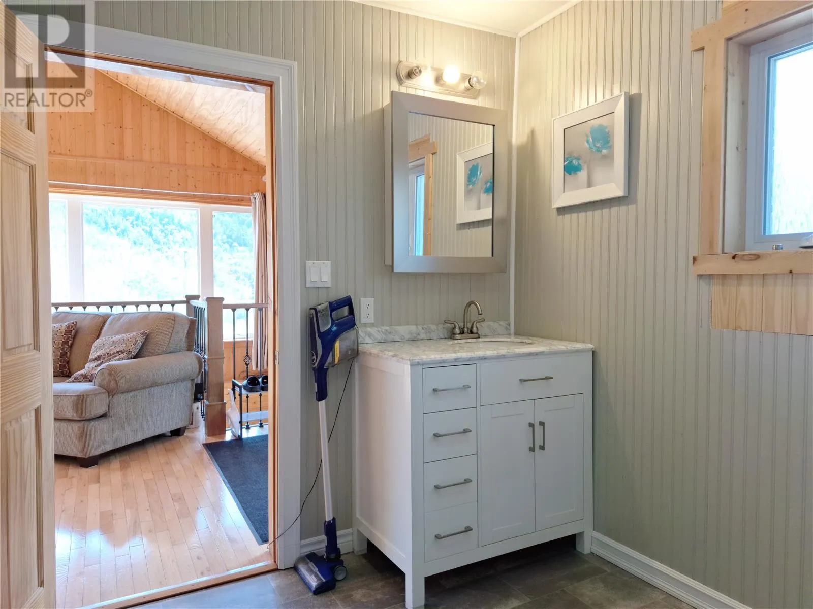 Welcome to scenic Flat Bay Brook! Sitting on about an acre of land, this property is the perfect year-round home or private getaway. Just 4 km to the highway and 8 km to St. Georgeâs, youâre close to essentials but tucked away between Walkerâs Run and Crooked Pineâtwo of the areaâs best salmon fishing holes. The home offers 1920 sq. ft. of living space over two levels. The main floor has an open-concept layout with a cozy oil stove, big windows overlooking the brook, a brand-new eat-in kitchen (2022), spacious primary with two walk-in closets, and an updated bathroom (2020) with laundry. Downstairs was fully developed in 2020 and features a huge rec room with a heat pump (2022), wood stove (2020), storage, and 2 bedrooms. Outside, youâll find a gazebo, one-room cabin with storage, a 3-season washroom and outhouse, and a new 28â x 40â garage. Recent updates include a new septic (2024), dug well (2022), solar panels and more. A floating dock is already on-site, plus thereâs a swimming hole right out frontâperfect for summer fun! The private, park-like setting makes this property feel like a retreat, yet it could also work as an income generator. Pictures donât do it justiceâyou really have to see it in person! Book your viewing today. (Fridge, stove, washer, dryer, and upright freezer are included, with furniture negotiable.) (id:27476)