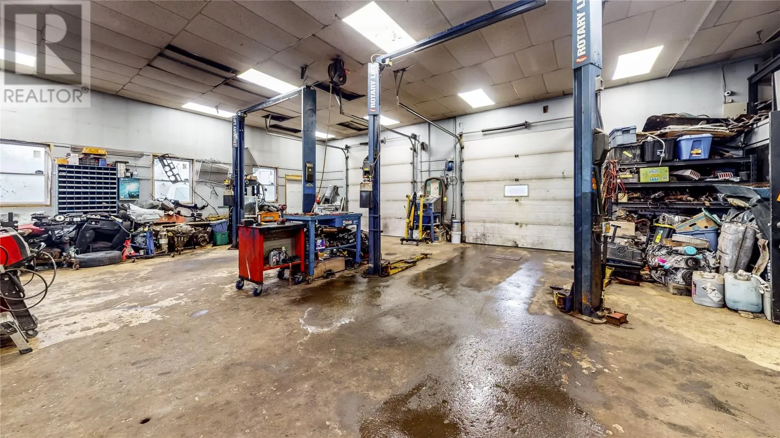 Rare opportunity to own 8,000 square feet of premium built commercial space just 10 minutes outside of St. Johnâs. Building exterior is complete with black metal siding and sits on a 0.92 acre lot with 204 feet of road frontage. Building is currently divided into three separate operating areas. The left-facing section was constructed in 2020 and consists of 6,000 square feet of space developed at grade. It features free span 14-foot ceilings, six overhead garage doors, spray foam insulation, all interior metal wall finishes plus two washrooms, mix of forced air waste oil and minisplit heating. Currently partitioned into two areas but could be reincorporated as a single space. Right section currently used as an auto service shop is approx. 2000 square feet and includes an office, washroom, mezzanine, two overhead garage doors and is heated by a minisplit. The property is equipped with three-phase electric power and a commercial HRV system. Property features ample paved and gravel parking along with rear building access for additional parking or laydown space. There is also a concrete footing installed at the rear of the building for future expansion. Building offers a variety of uses under the town's mixed development zoning and it's flexible spaces, making this an excellent investment opportunity for business expansion or a new venture. Strategically located on a major thoroughfare the property offers high visibility. Land & building for sale. (id:27476)