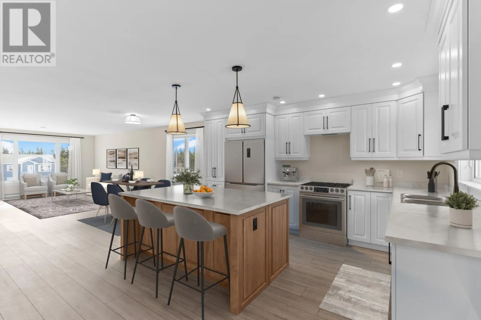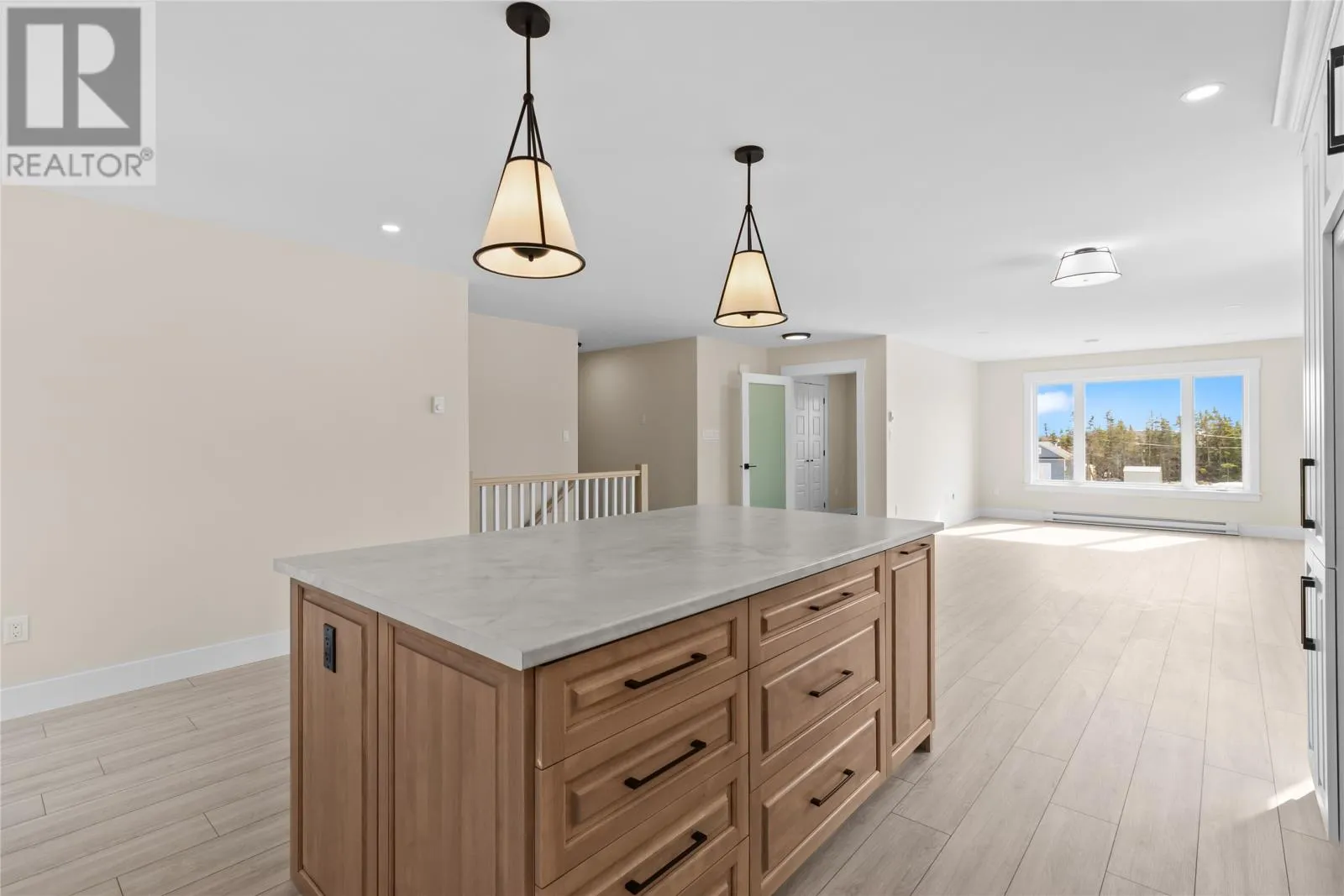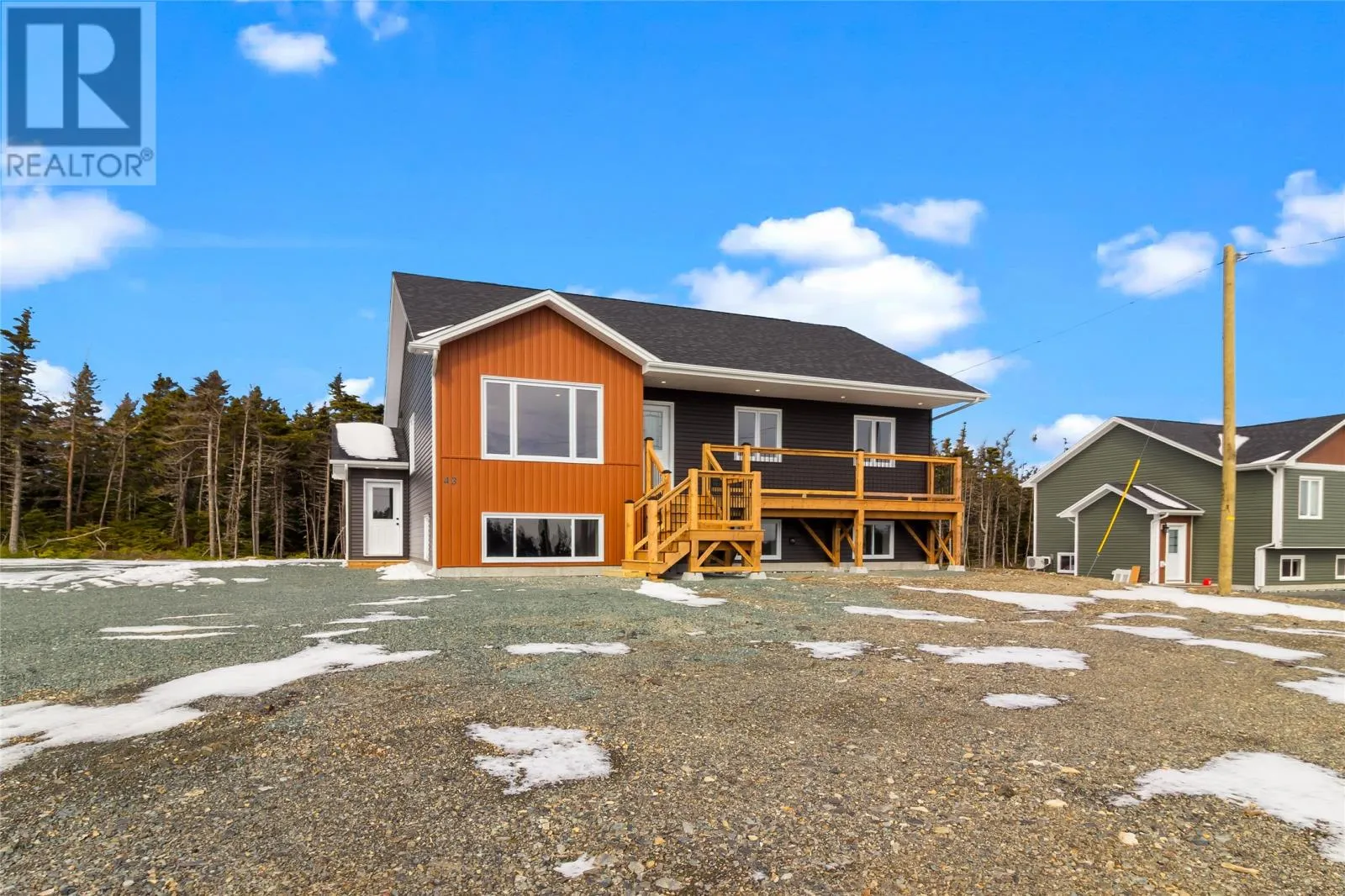 Welcome to 47 Hubertâs Place, a stunning newly built raised bungalow just completed and ready for its first owners, located in the growing community of Flatrock. Offering over 3,000 sq. ft. of bright, modern living space, this home blends contemporary design with everyday functionality. From the moment you arrive, the homeâs curb appeal stands out with its stylish exterior, oversized driveway, and spacious front deckâperfect for morning coffee or evening sunsets. Set on a generous lot with mature trees lining the backyard, youâll enjoy added privacy and a peaceful natural setting. Step inside to a fresh, modern interior featuring light-toned flooring, neutral finishes, and plenty of natural light. The open-concept main living area is airy and inviting, highlighted by a large living room with plenty of space for relaxing and entertaining. The kitchen is a true showstopper with crisp white cabinetry, sleek hardware, a large center island with warm wood accents, and ample prep and storage space, flowing seamlessly into the dining and living areas. The main floor includes three bedrooms, including a spacious primary suite with a walk-in closet and ensuite featuring a double vanity and custom tile shower. A full main bathroom serves the additional bedrooms. Downstairs, the fully developed basement offers two more bedrooms, a full bathroom, a dedicated laundry area, and a massive family roomâperfect for a rec room or home theatre. With all windows above grade, this level feels bright and welcoming. The covered basement entrance adds extra convenienceâno need to shovel after winter storms. Be the first to call this beautifully finished home your own. (id:27476)
