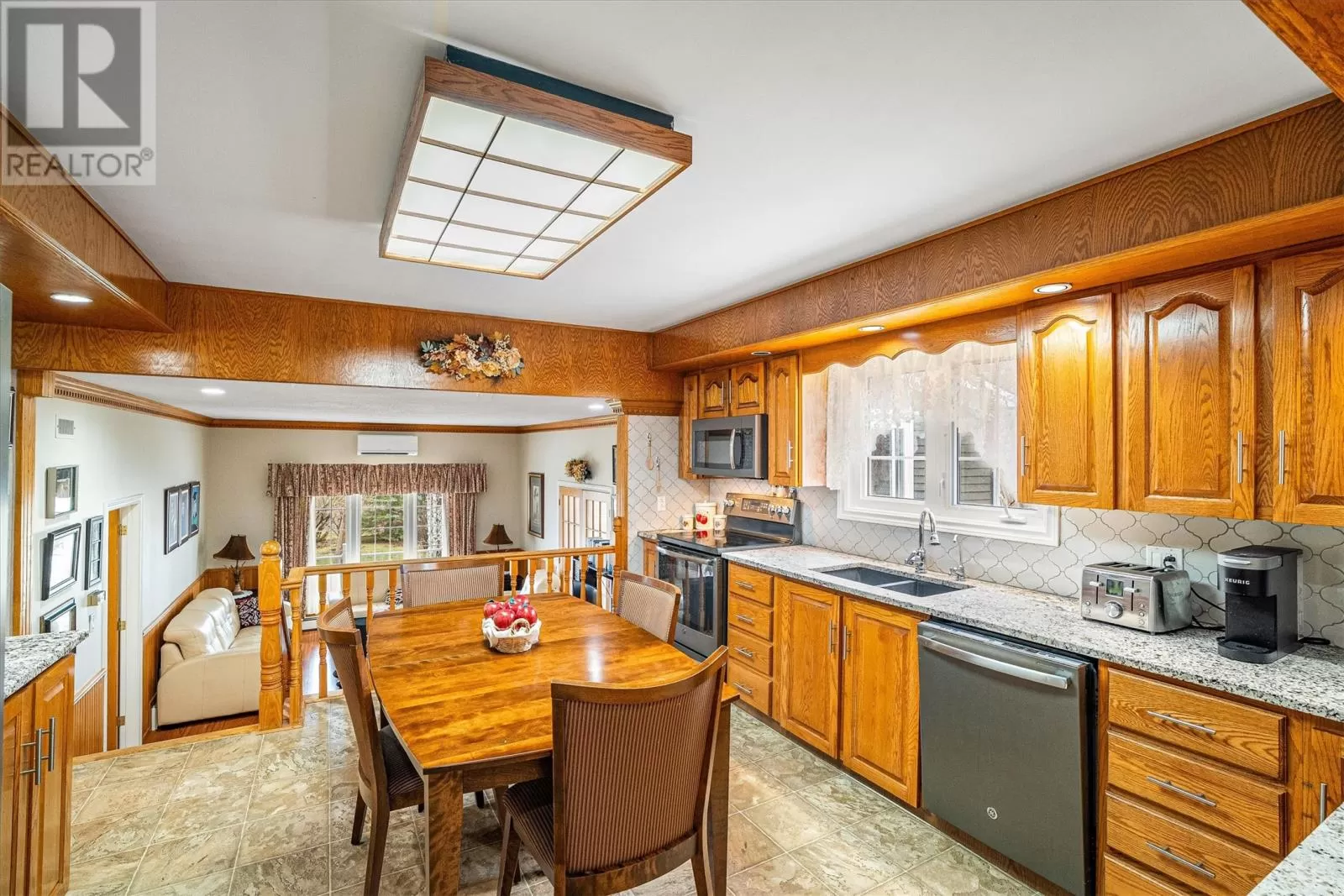 Welcome to 108 Iceberg Arena Road, your coastal retreat on beautiful Fogo Island, and first time to market. This spacious and well-maintained home has 4 bedrooms and 2 full bathrooms, providing ample space for both daily living and hosting guests, and available FULLY FURNISHED. 4 mini-splits throughout offer efficiency + air conditioning for both warm and colder temperatures. Inside, the layout is warm and inviting, beginning with a living room featuring soaring ceilings and a cozy pellet stove. A separate family room provides additional space for relaxation and for those who love to entertain + the billiards room offers a fun and relaxed space to unwind with friends and family. At the heart of the home is the kitchen designed for both function and style, with granite countertops and ample storage and counter space. Large windows fill the space with natural light, and has easy access to the family room, formal dining room and outdoor deck makes hosting effortless. You'll also love to relax and host in the covered sunroom. For all your hobbies and interests- there are 2 large outbuildings (~20x28 and 16x24) ideal for seasonal storage, workshop, cars, etc, and also has a back up generator for the home. Step outside and take in the sweeping ocean views, or explore the landscaped garden area. This home is nestled on a scenic lot with mature trees, just moments from the shoreline and the rugged natural beauty that makes Fogo Island so special. Located in the center of the island; close to the ocean (across the street), stadium, school, hospital, hardware store, soccer field, convenience store and restaurant, and minutes to hot tourist locations. Whether for your new full-time home, or maybe summer get away; you won't be disappointed. (id:27476)