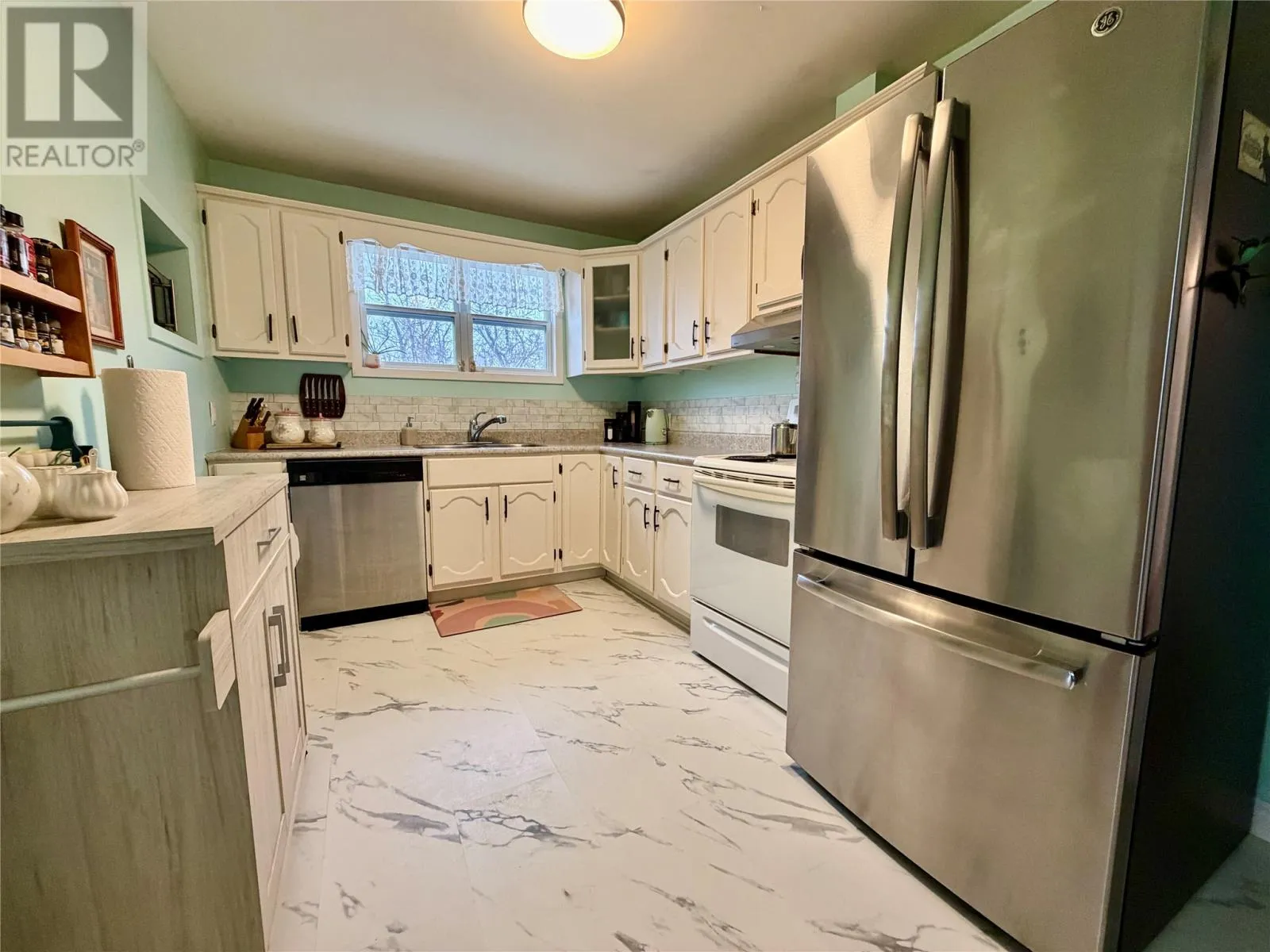 Welcome to Fortune, NL. This lovely home has a completed basement, front and back decks and a large detached outbuilding that would make the ideal man cave or she shed. The top level has a light tone kitchen, a dining area, the living room, a front sun porch, as well as three bedrooms and the main washroom. The basement has a spacious family room with a bar area, a 4th bedroom, a 2 piece bath and the laundry area plus lots of storage space. Some recent updates include the shingles on both the home and the shed, the two decks plus the front above the deck area of the home, a new heating system, a water filtration system, as well as a new sub floor and flooring in the basement and the kitchen. The home offers curb appeal. The driveway is paved and its a very short walk to the waterfront. Check out the photos and call for a private viewing. (id:27476)