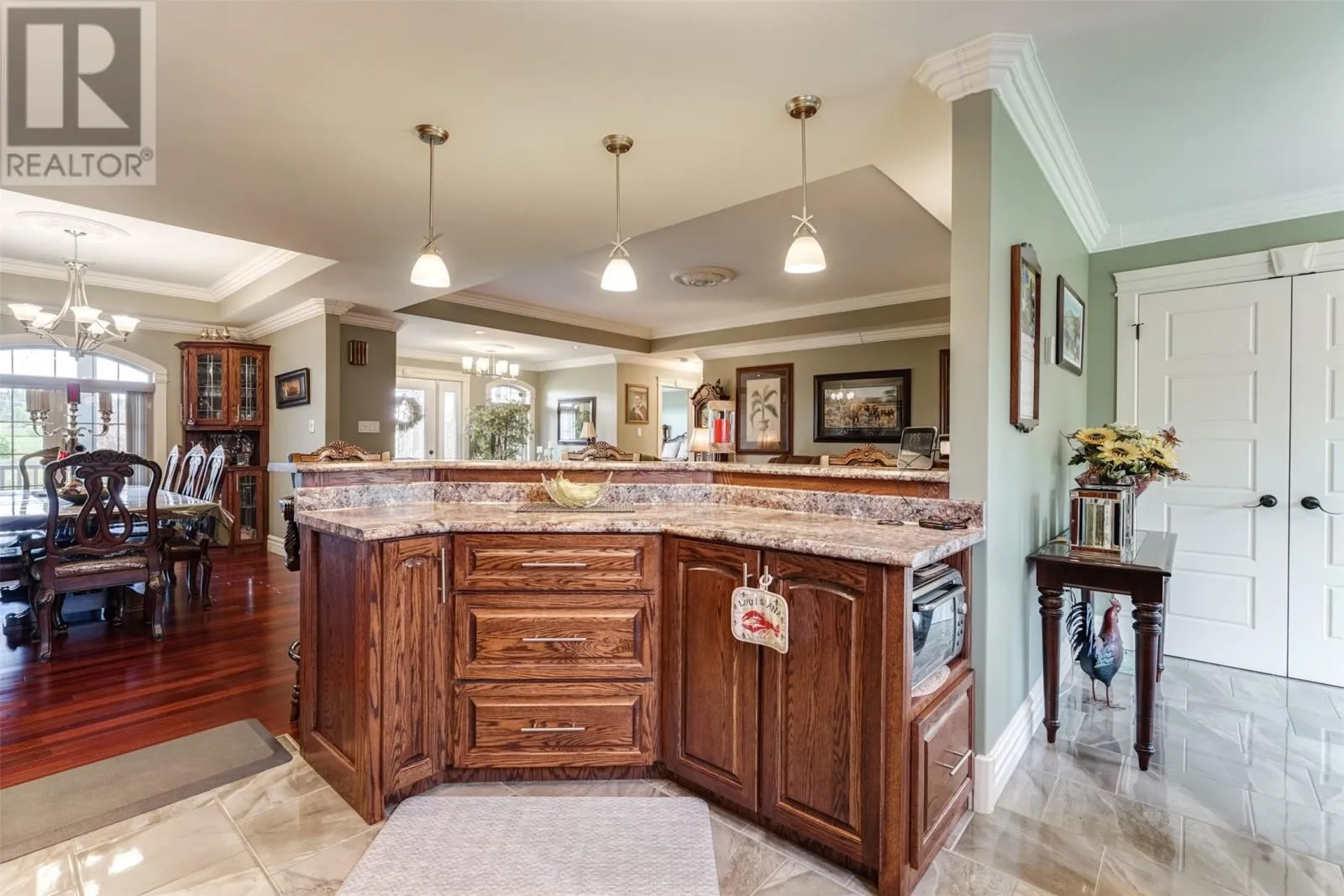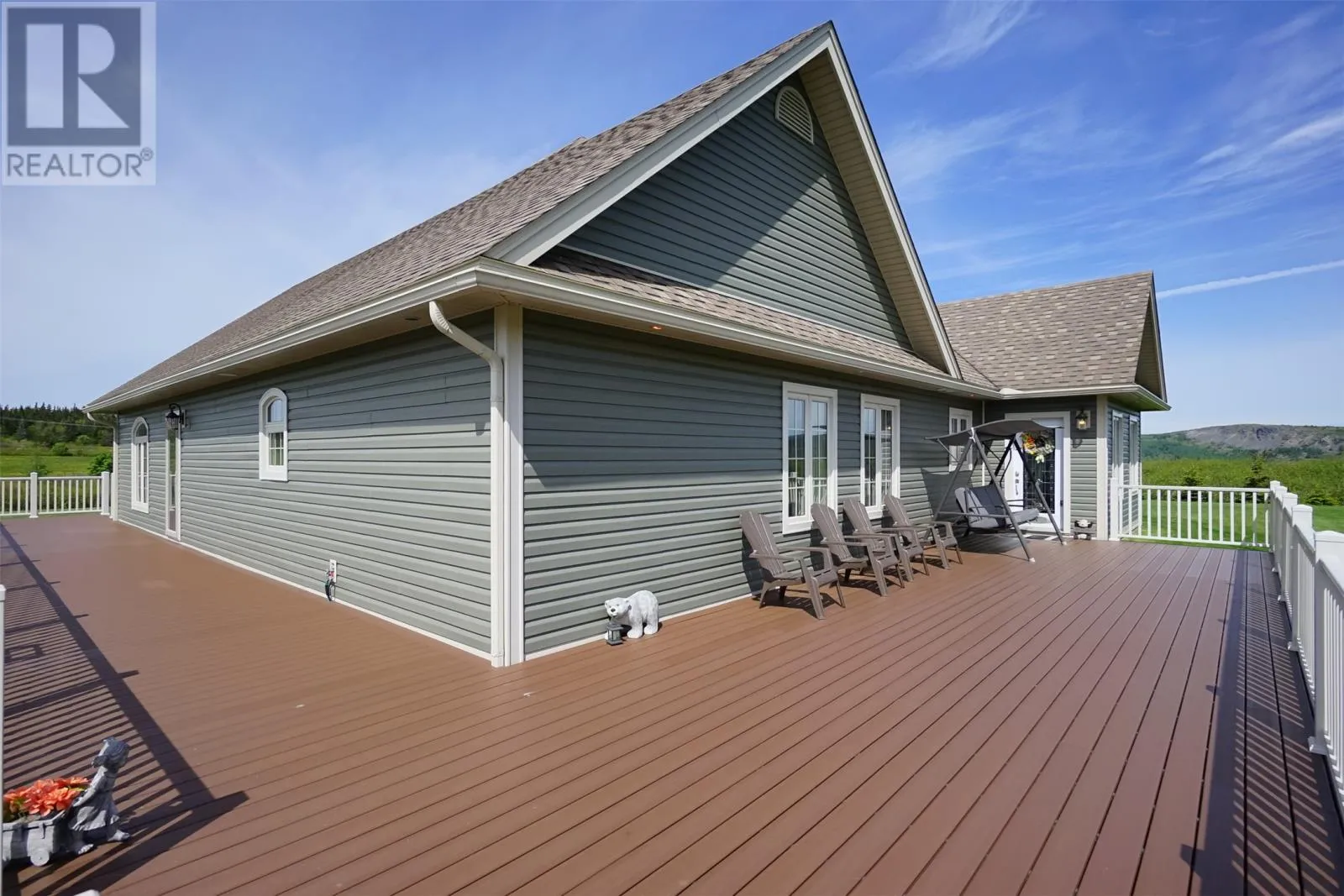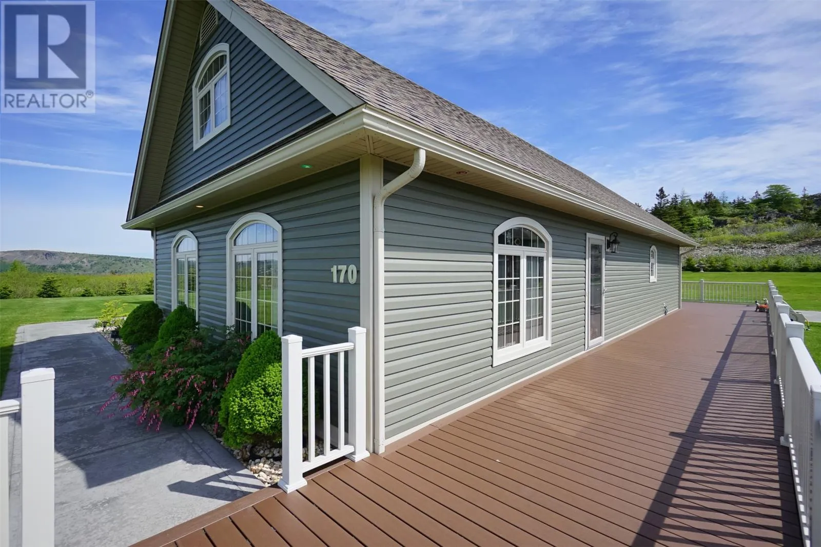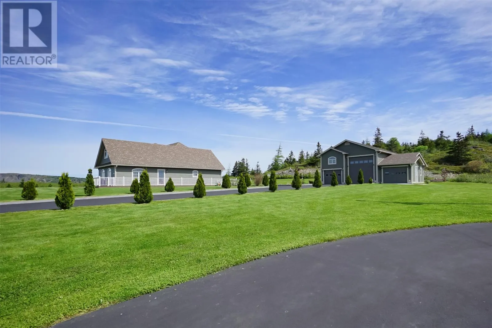 Freshwater turnoff is approximately half way between Carbonear and Victoria. Property is located about 1 km pass the Freshwater turnoff and it is the first property to your left WOW WOW WOW describes this impeccably kept slab on grade luxury bungalow located between the towns of Carbonear and Victoria in the service district of Freshwater. This home features multizone hot water radiant in floor heating. Kitchen and living room / dining room is open concept with a very large family room that opens onto a wrap around TREX deck with custom railing. The detached garage is approx.1500 sq ft and features a loft with half bath and the main floor can accommodate multiple vehicles with a door that can facilitate a motorhome. Garage has a mini split. The manicured grounds certainly adds to the curb appeal of this fabulous property. Others features include 9 ft trayed ceilings throughout and premium moldings and trim . Minutes from Carbonear and its amenities and no property tax. (id:27476)