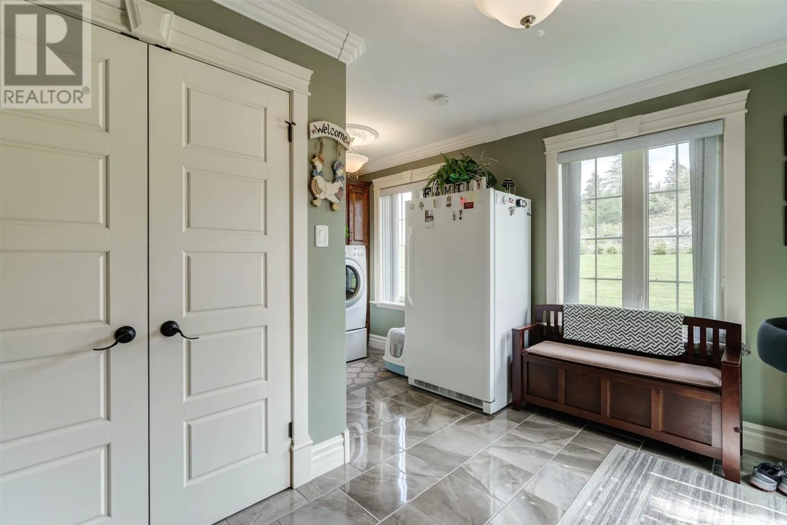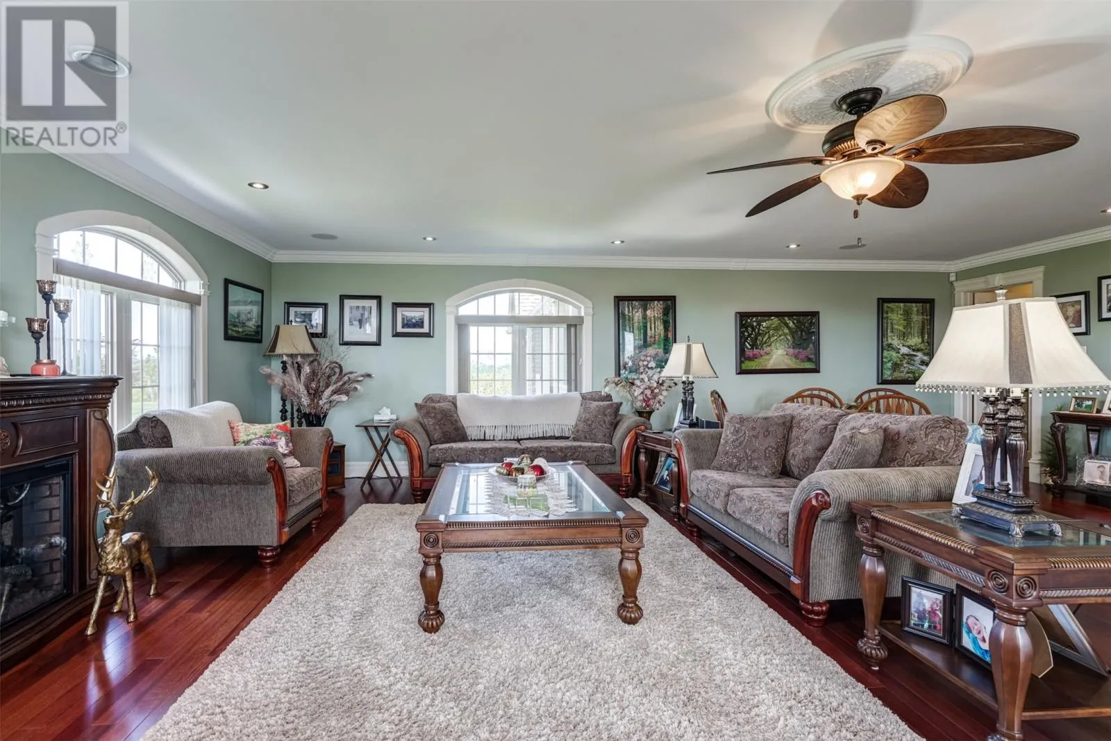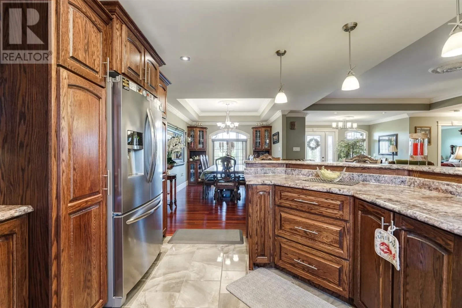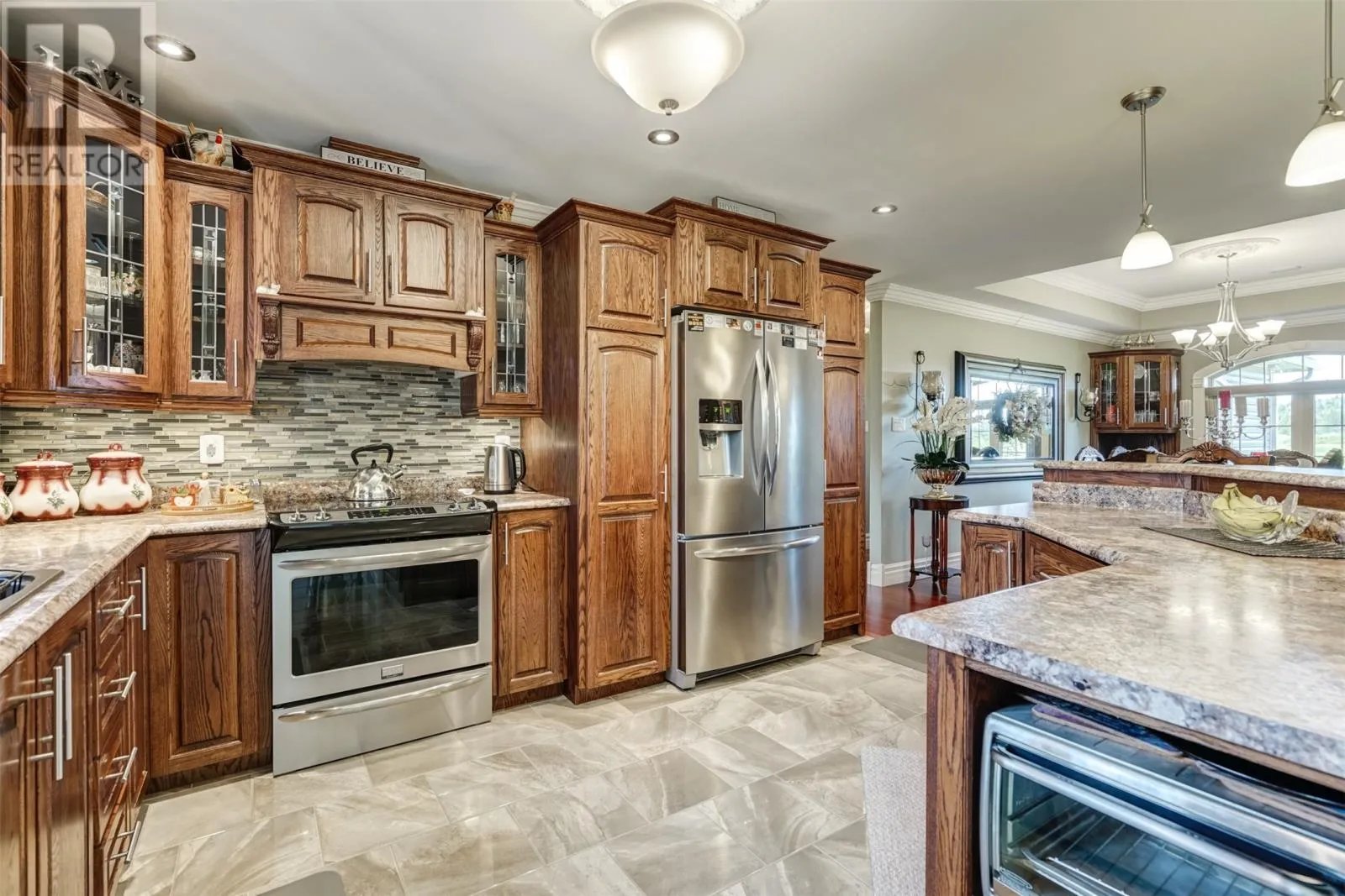 Freshwater turnoff is approximately half way between Carbonear and Victoria. Property is located about 1 km pass the Freshwater turnoff and it is the first property to your left WOW WOW WOW describes this impeccably kept slab on grade luxury bungalow located between the towns of Carbonear and Victoria in the service district of Freshwater. This home features multizone hot water radiant in floor heating. Kitchen and living room / dining room is open concept with a very large family room that opens onto a wrap around TREX deck with custom railing. The detached garage is approx.1500 sq ft and features a loft with half bath and the main floor can accommodate multiple vehicles with a door that can facilitate a motorhome. Garage has a mini split. The manicured grounds certainly adds to the curb appeal of this fabulous property. Others features include 9 ft trayed ceilings throughout and premium moldings and trim . Minutes from Carbonear and its amenities and no property tax. (id:27476)