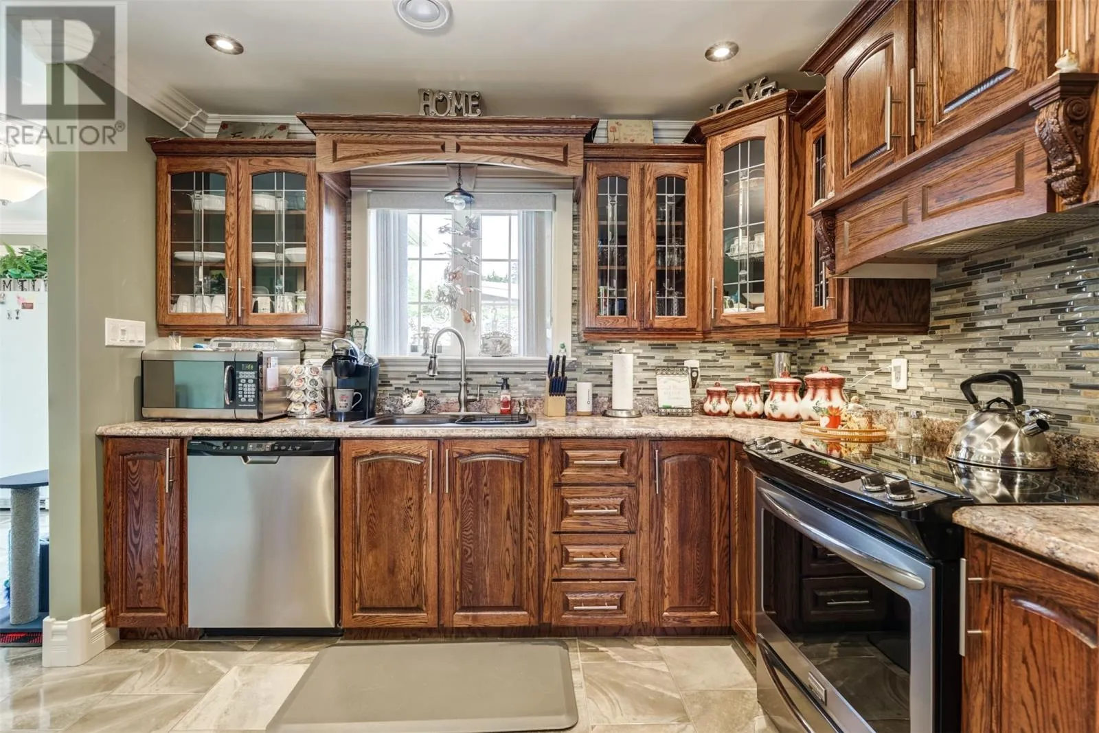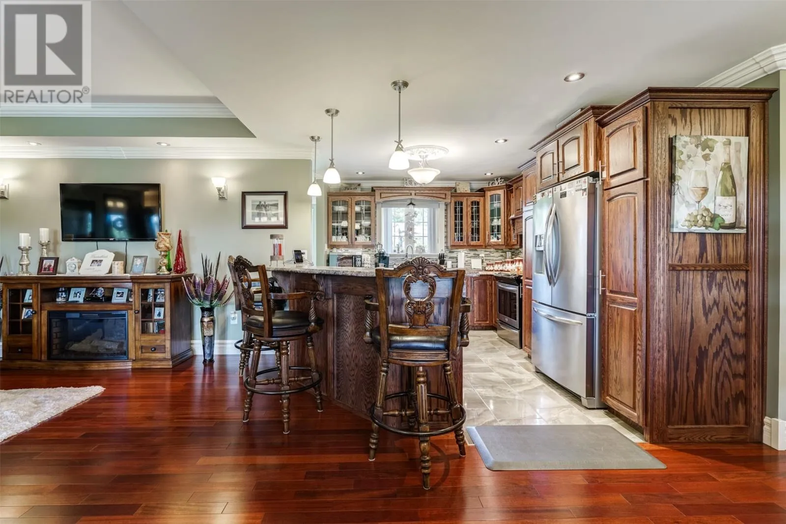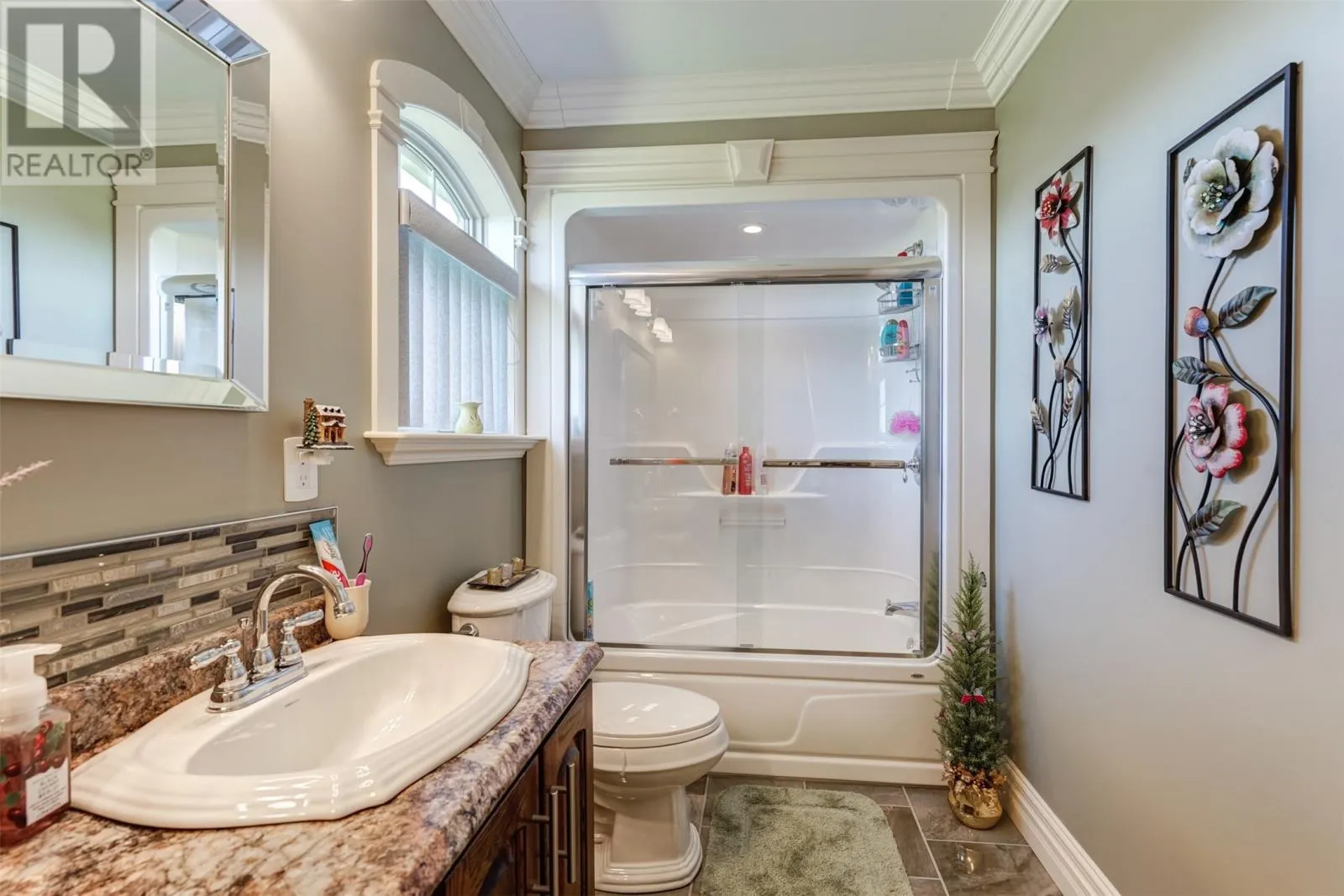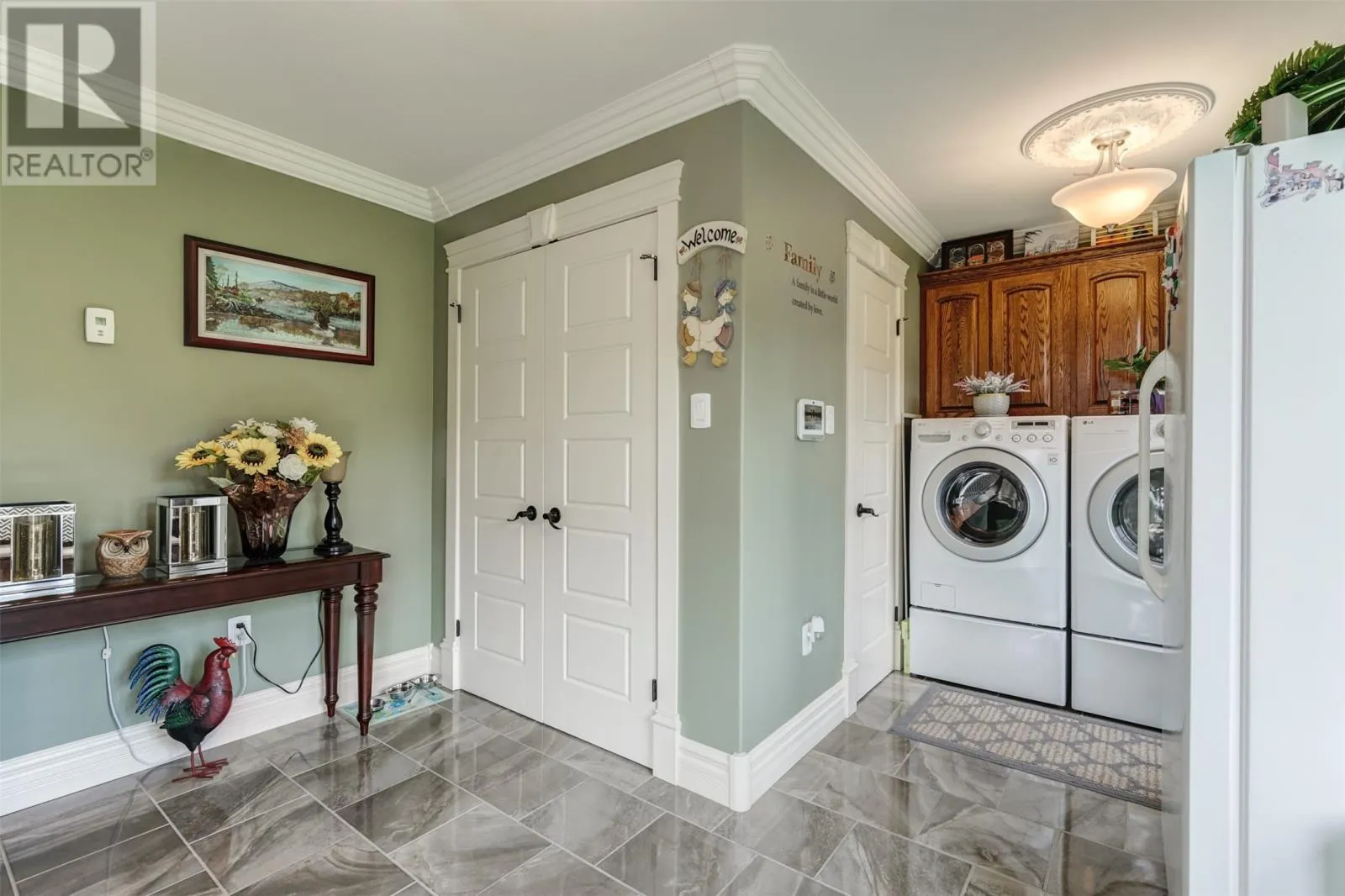 Freshwater turnoff is approximately half way between Carbonear and Victoria. Property is located about 1 km pass the Freshwater turnoff and it is the first property to your left WOW WOW WOW describes this impeccably kept slab on grade luxury bungalow located between the towns of Carbonear and Victoria in the service district of Freshwater. This home features multizone hot water radiant in floor heating. Kitchen and living room / dining room is open concept with a very large family room that opens onto a wrap around TREX deck with custom railing. The detached garage is approx.1500 sq ft and features a loft with half bath and the main floor can accommodate multiple vehicles with a door that can facilitate a motorhome. Garage has a mini split. The manicured grounds certainly adds to the curb appeal of this fabulous property. Others features include 9 ft trayed ceilings throughout and premium moldings and trim . Minutes from Carbonear and its amenities and no property tax. (id:27476)