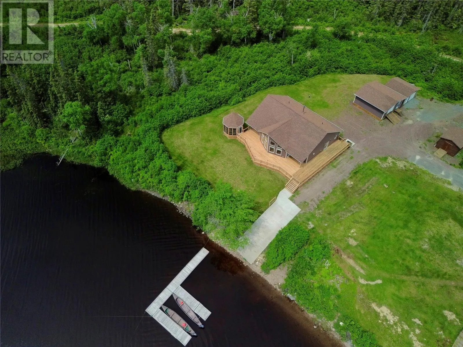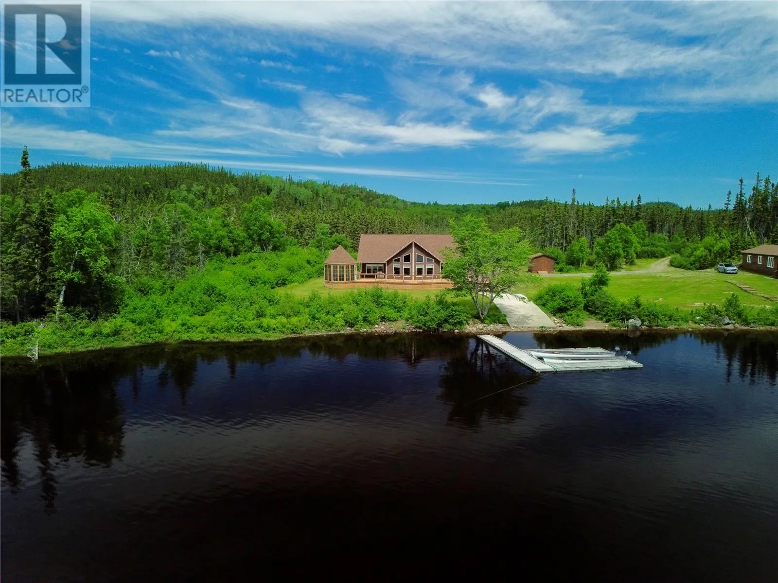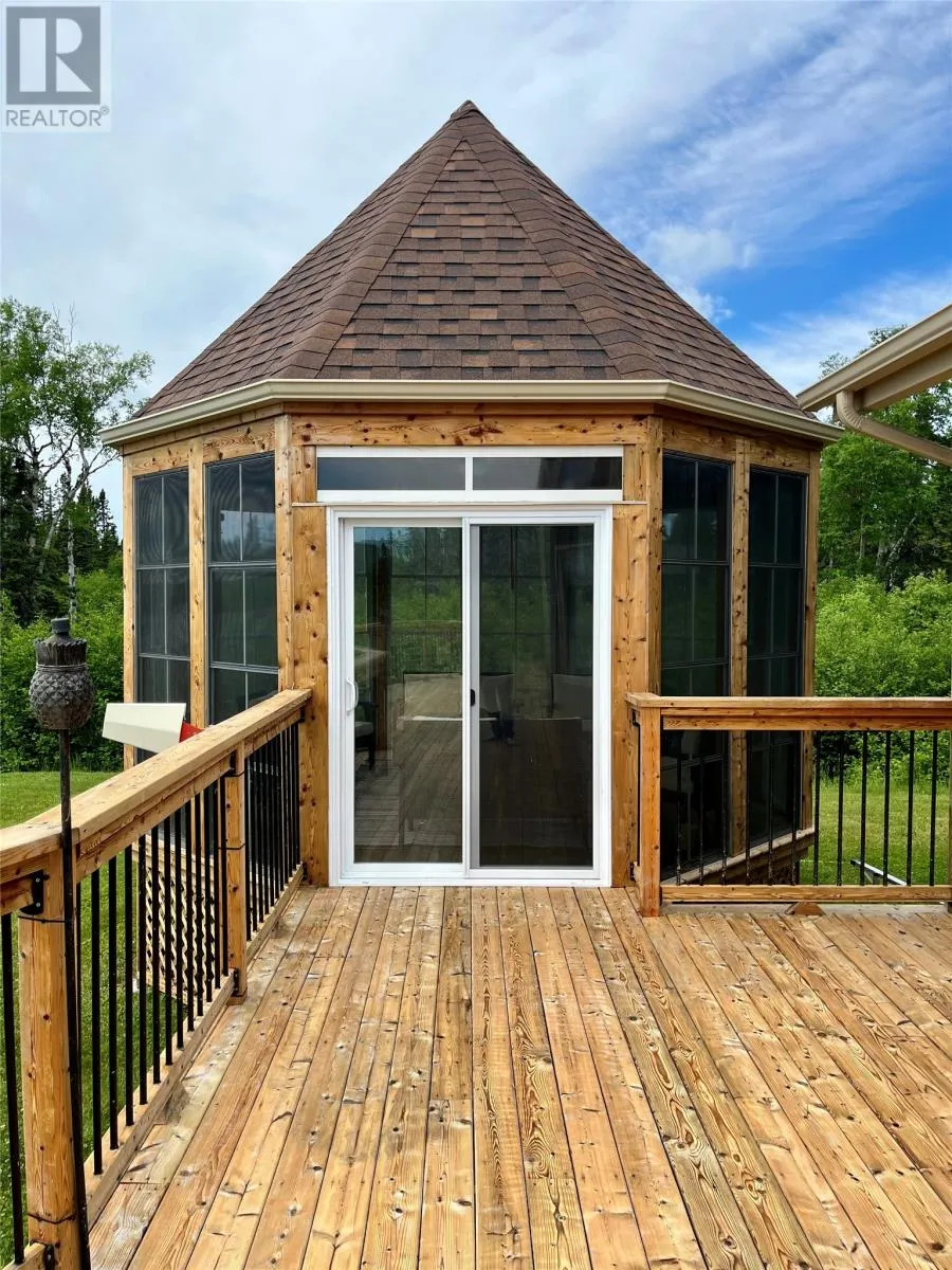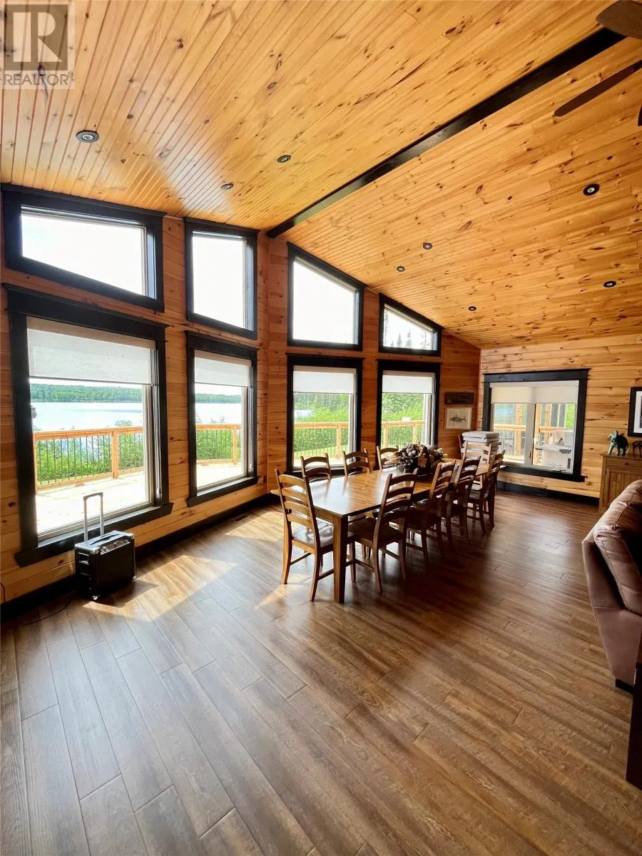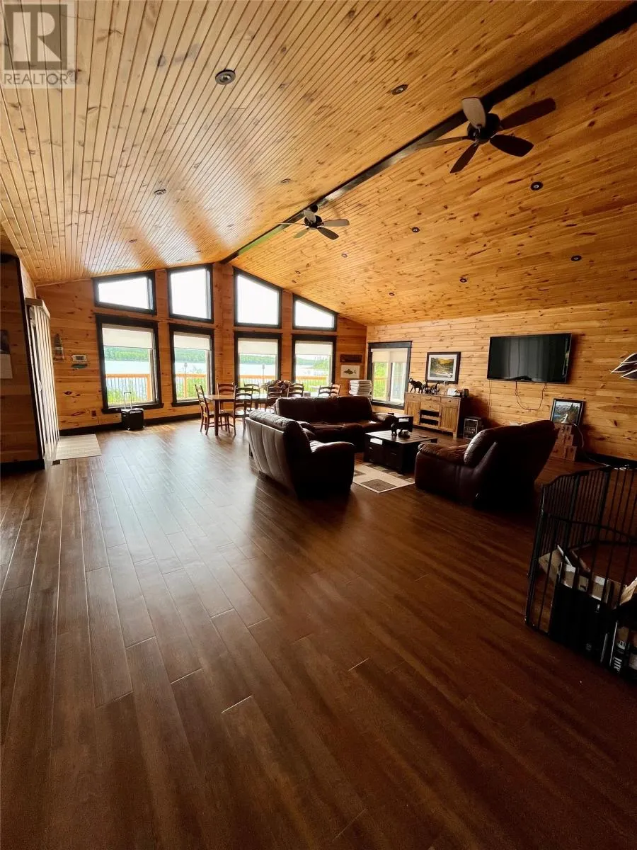 From Appleton/Glenwood, turn right off the TCH and take the Salmon Pond Resource Road 19.5km. At 19.5km, turn right and drive to the D.F. Barnes sign, turn left and keep right. The property is the third on the left past the access to a small parking area and is a total of 1.4km from the Salmon Pond Resource Road. The drive time is approximately 40 minutes from Appleton. The road is accessible by vehicle between May and October and the property can be accessed outside of these months via snowmobile or helicopter. This spectacular 0.98-acre waterfront oasis is located on Fourth Pond on the Gander River. It presents a rare opportunity to own a get-away on one of Newfoundland and Labrador's key salmon rivers. Gather with family and friends in the spacious 2300 sqft, 4-bedroom chalet style home, or go to relax, enjoy the privacy of the property, the tranquility of nature, and fly fish at your leisure. This recreational property provides the opportunity to completely escape into the pristine wilderness of central Newfoundland and get away from the hustle and bustle. It is easily accessible by vehicle between May and October and by skidoo during the winter. The interior boasts a vaulted ceiling in the great room with large windows that allow light in and frame the spectacular view of the Gander River, a cozy wood stove, a large well-appointed kitchen, a primary bedroom with ensuite, and ample storage. The home also has a large deck overlooking the river with a fully enclosed gazebo, also with spectacular views. This well maintained, 9-year-old property is completely turn-key - just arrive and enjoy. Included is all furniture, all major appliances, floor and window coverings, a 35KW Cummings diesel generator, BBQ, riding lawnmower, floating wharf, and a fiberglass Gander River boat with motor. Bonus structures on the property include a generator shed and a quad/skidoo shed. Don't miss out on the opportunity this summer to own a stunning property on a world-class salmon fishing river! (id:27476)
