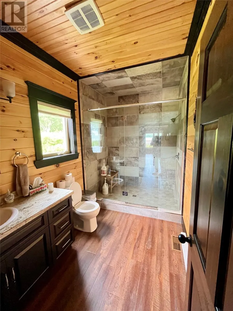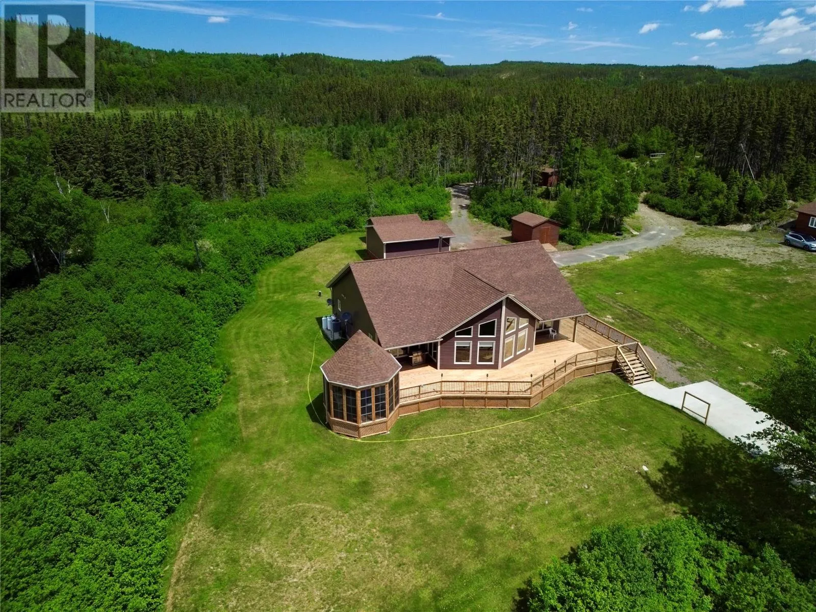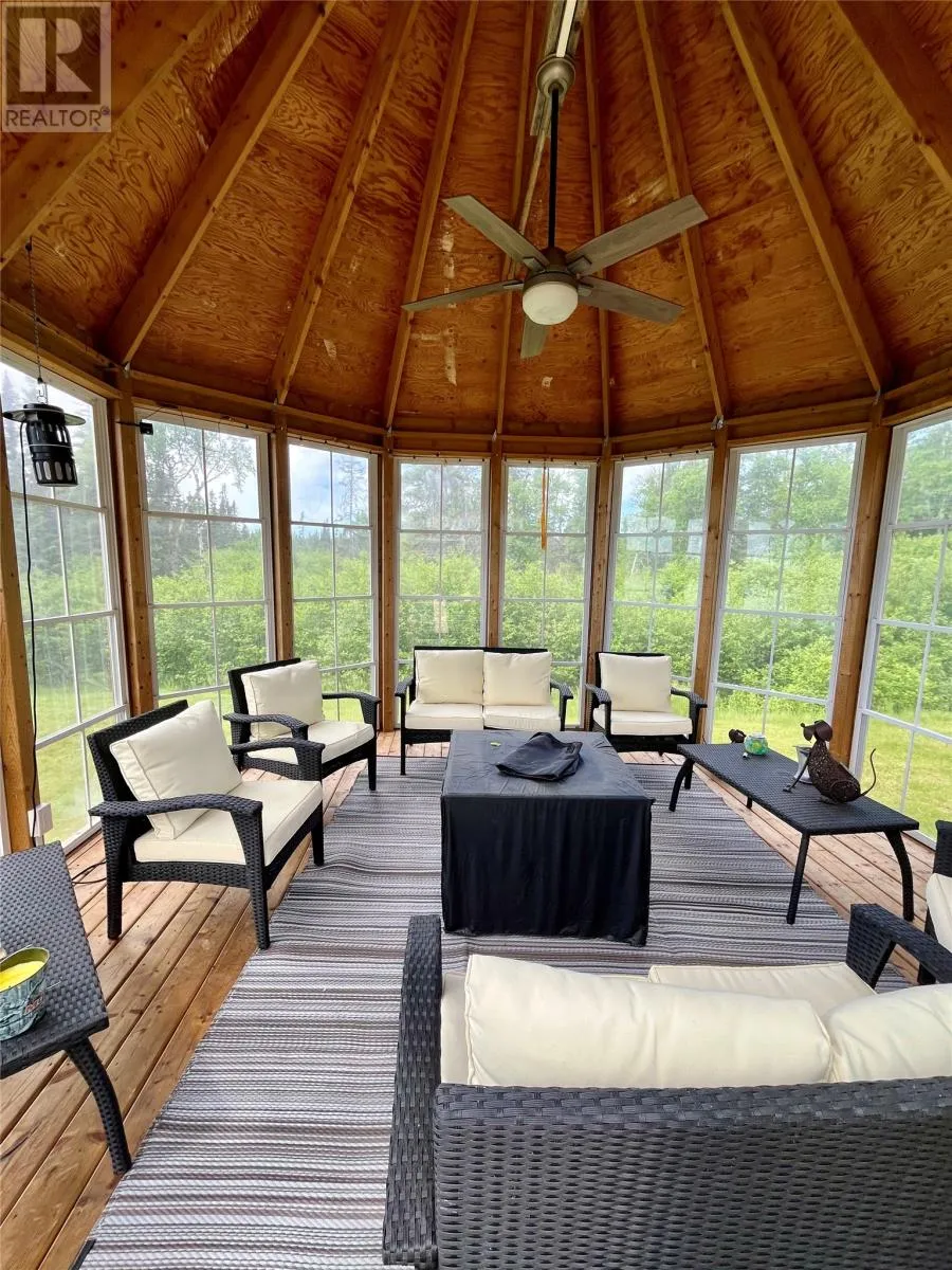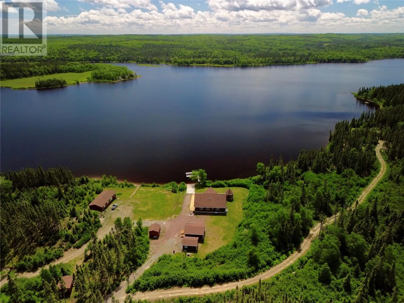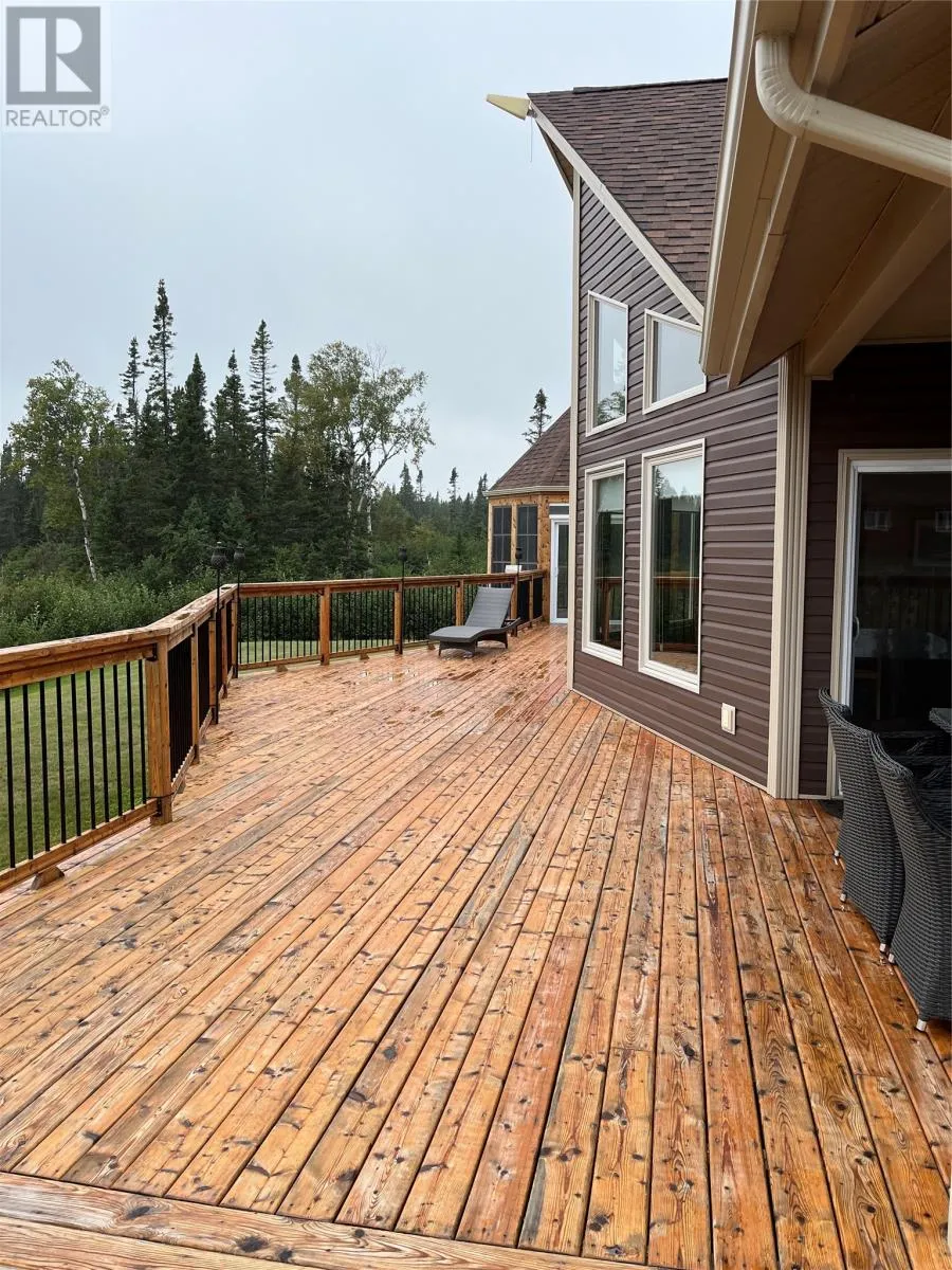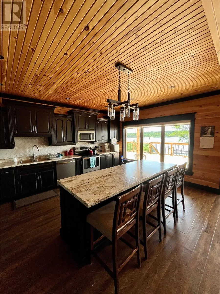 From Appleton/Glenwood, turn right off the TCH and take the Salmon Pond Resource Road 19.5km. At 19.5km, turn right and drive to the D.F. Barnes sign, turn left and keep right. The property is the third on the left past the access to a small parking area and is a total of 1.4km from the Salmon Pond Resource Road. The drive time is approximately 40 minutes from Appleton. The road is accessible by vehicle between May and October and the property can be accessed outside of these months via snowmobile or helicopter. This spectacular 0.98-acre waterfront oasis is located on Fourth Pond on the Gander River. It presents a rare opportunity to own a get-away on one of Newfoundland and Labrador's key salmon rivers. Gather with family and friends in the spacious 2300 sqft, 4-bedroom chalet style home, or go to relax, enjoy the privacy of the property, the tranquility of nature, and fly fish at your leisure. This recreational property provides the opportunity to completely escape into the pristine wilderness of central Newfoundland and get away from the hustle and bustle. It is easily accessible by vehicle between May and October and by skidoo during the winter. The interior boasts a vaulted ceiling in the great room with large windows that allow light in and frame the spectacular view of the Gander River, a cozy wood stove, a large well-appointed kitchen, a primary bedroom with ensuite, and ample storage. The home also has a large deck overlooking the river with a fully enclosed gazebo, also with spectacular views. This well maintained, 9-year-old property is completely turn-key - just arrive and enjoy. Included is all furniture, all major appliances, floor and window coverings, a 35KW Cummings diesel generator, BBQ, riding lawnmower, floating wharf, and a fiberglass Gander River boat with motor. Bonus structures on the property include a generator shed and a quad/skidoo shed. Don't miss out on the opportunity this summer to own a stunning property on a world-class salmon fishing river! (id:27476)