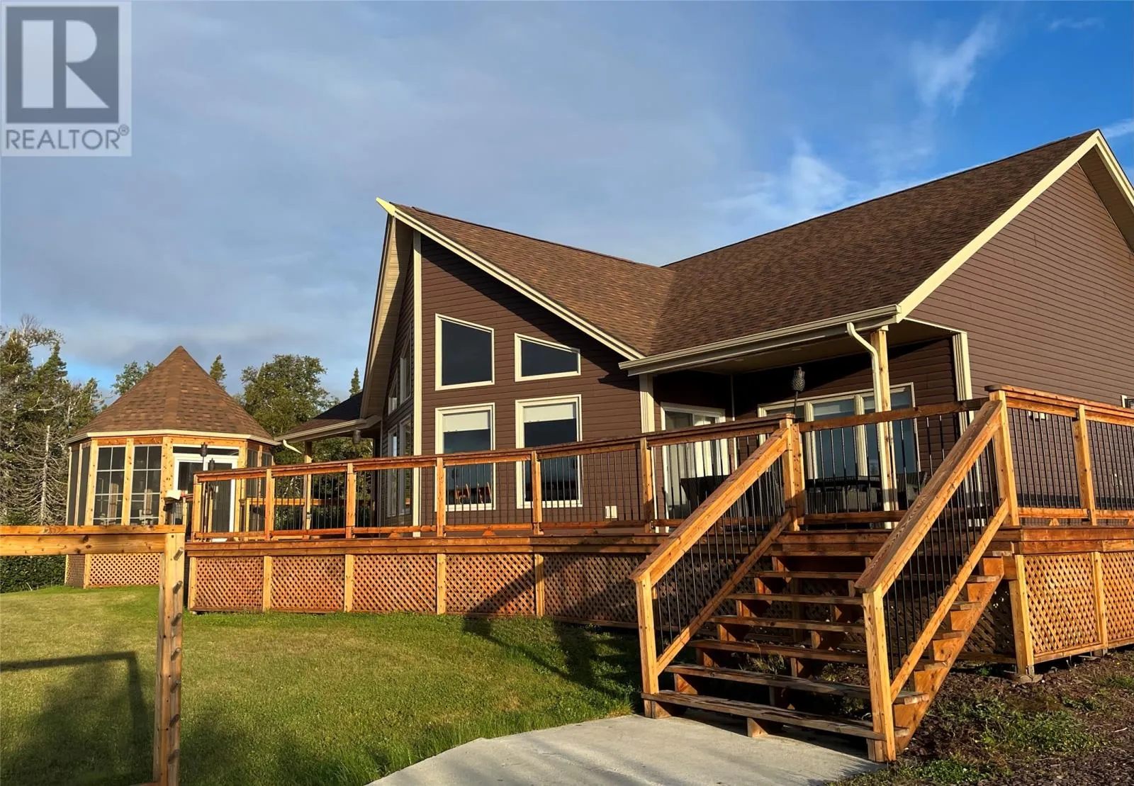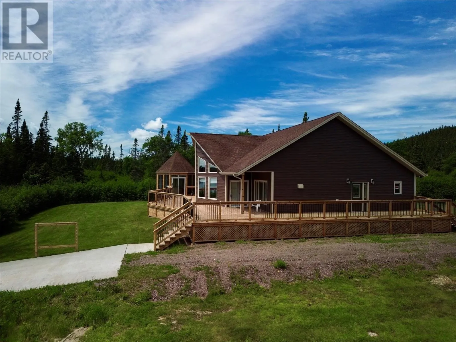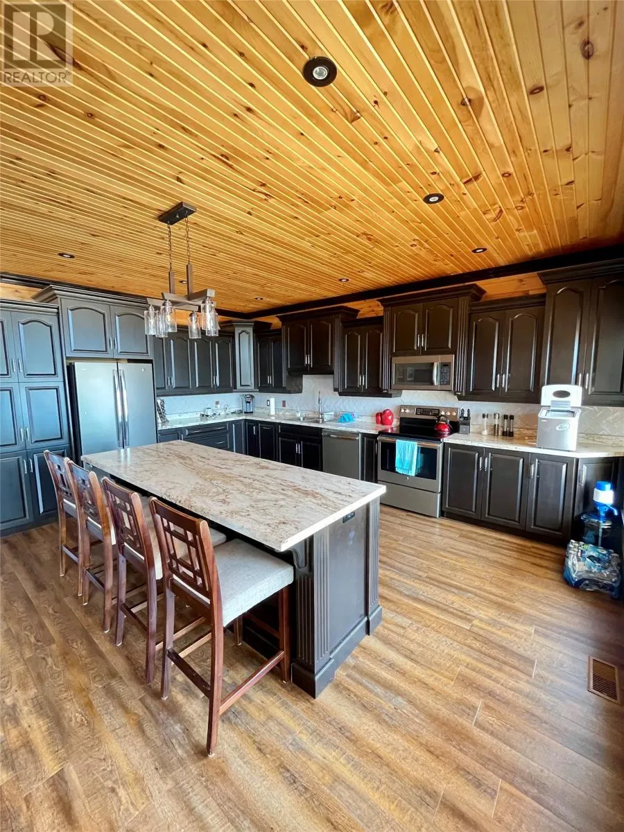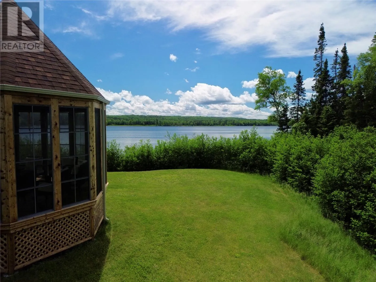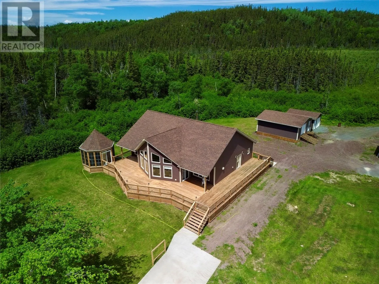 From Appleton/Glenwood, turn right off the TCH and take the Salmon Pond Resource Road 19.5km. At 19.5km, turn right and drive to the D.F. Barnes sign, turn left and keep right. The property is the third on the left past the access to a small parking area and is a total of 1.4km from the Salmon Pond Resource Road. The drive time is approximately 40 minutes from Appleton. The road is accessible by vehicle between May and October and the property can be accessed outside of these months via snowmobile or helicopter. This spectacular 0.98-acre waterfront oasis is located on Fourth Pond on the Gander River. It presents a rare opportunity to own a get-away on one of Newfoundland and Labrador's key salmon rivers. Gather with family and friends in the spacious 2300 sqft, 4-bedroom chalet style home, or go to relax, enjoy the privacy of the property, the tranquility of nature, and fly fish at your leisure. This recreational property provides the opportunity to completely escape into the pristine wilderness of central Newfoundland and get away from the hustle and bustle. It is easily accessible by vehicle between May and October and by skidoo during the winter. The interior boasts a vaulted ceiling in the great room with large windows that allow light in and frame the spectacular view of the Gander River, a cozy wood stove, a large well-appointed kitchen, a primary bedroom with ensuite, and ample storage. The home also has a large deck overlooking the river with a fully enclosed gazebo, also with spectacular views. This well maintained, 9-year-old property is completely turn-key - just arrive and enjoy. Included is all furniture, all major appliances, floor and window coverings, a 35KW Cummings diesel generator, BBQ, riding lawnmower, floating wharf, and a fiberglass Gander River boat with motor. Bonus structures on the property include a generator shed and a quad/skidoo shed. Don't miss out on the opportunity this summer to own a stunning property on a world-class salmon fishing river! (id:27476)