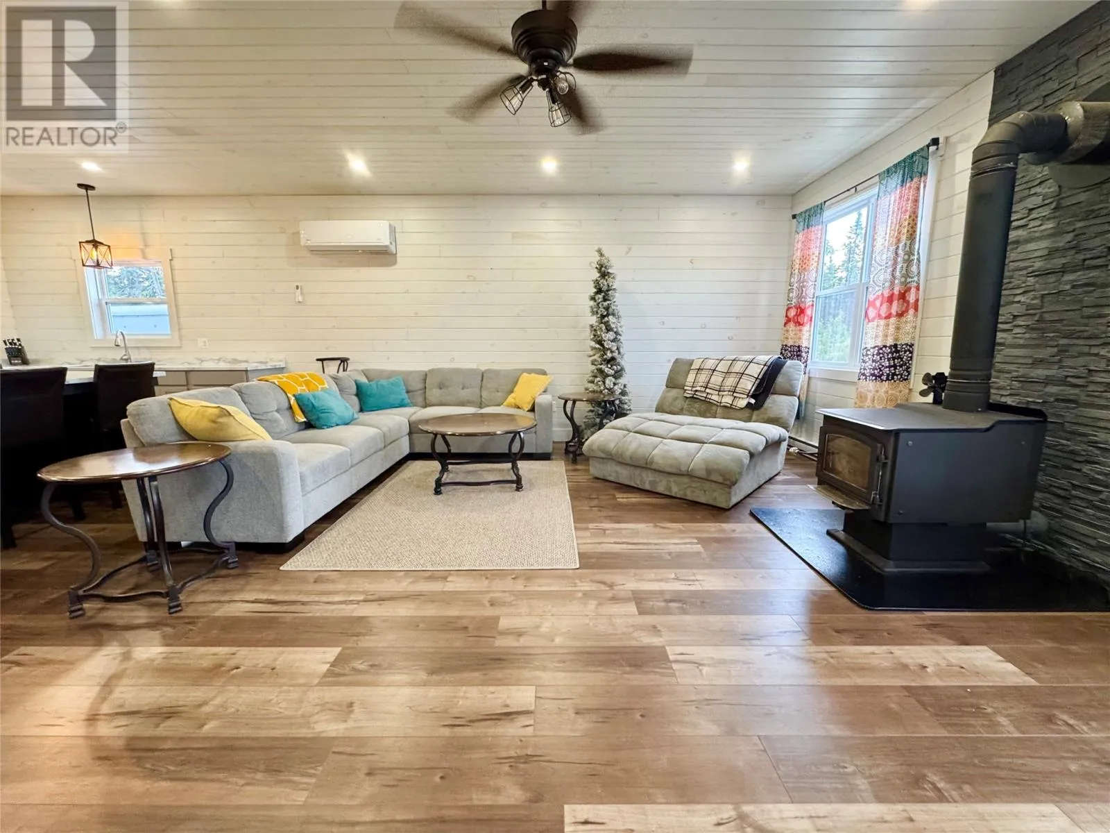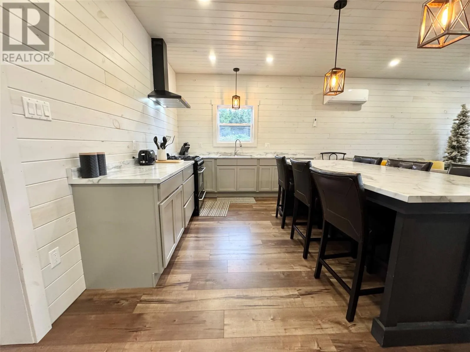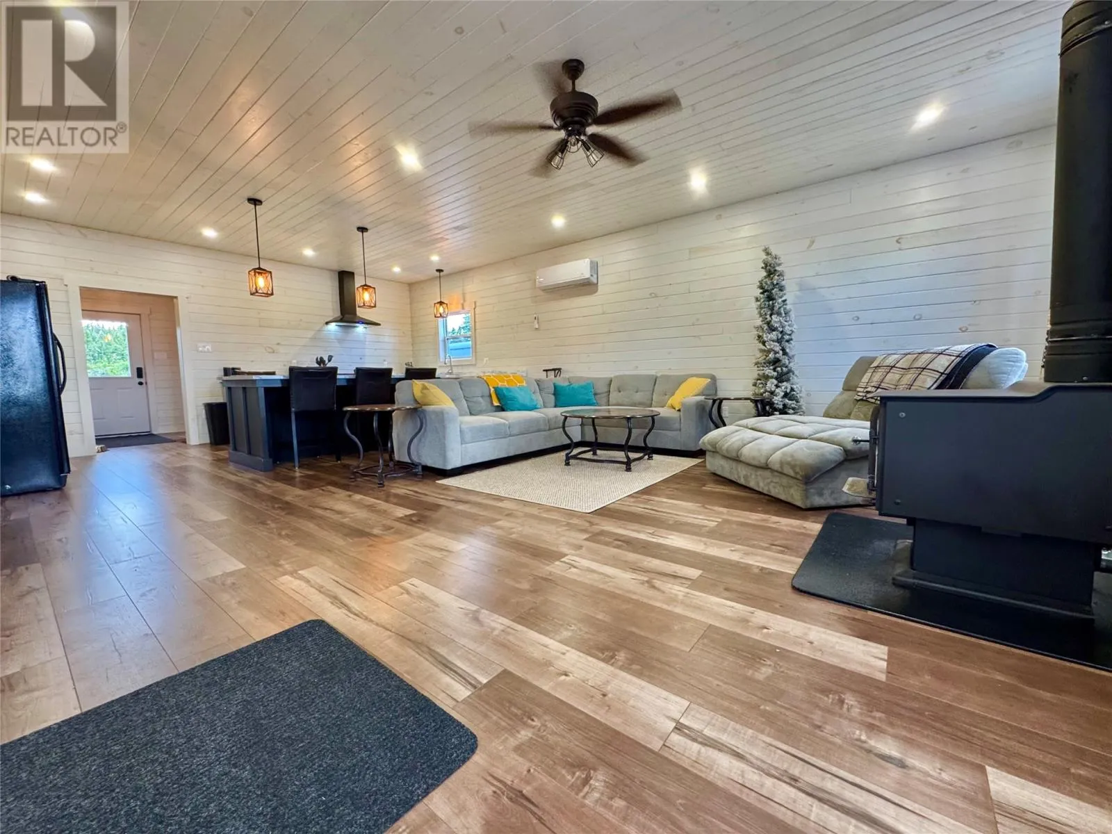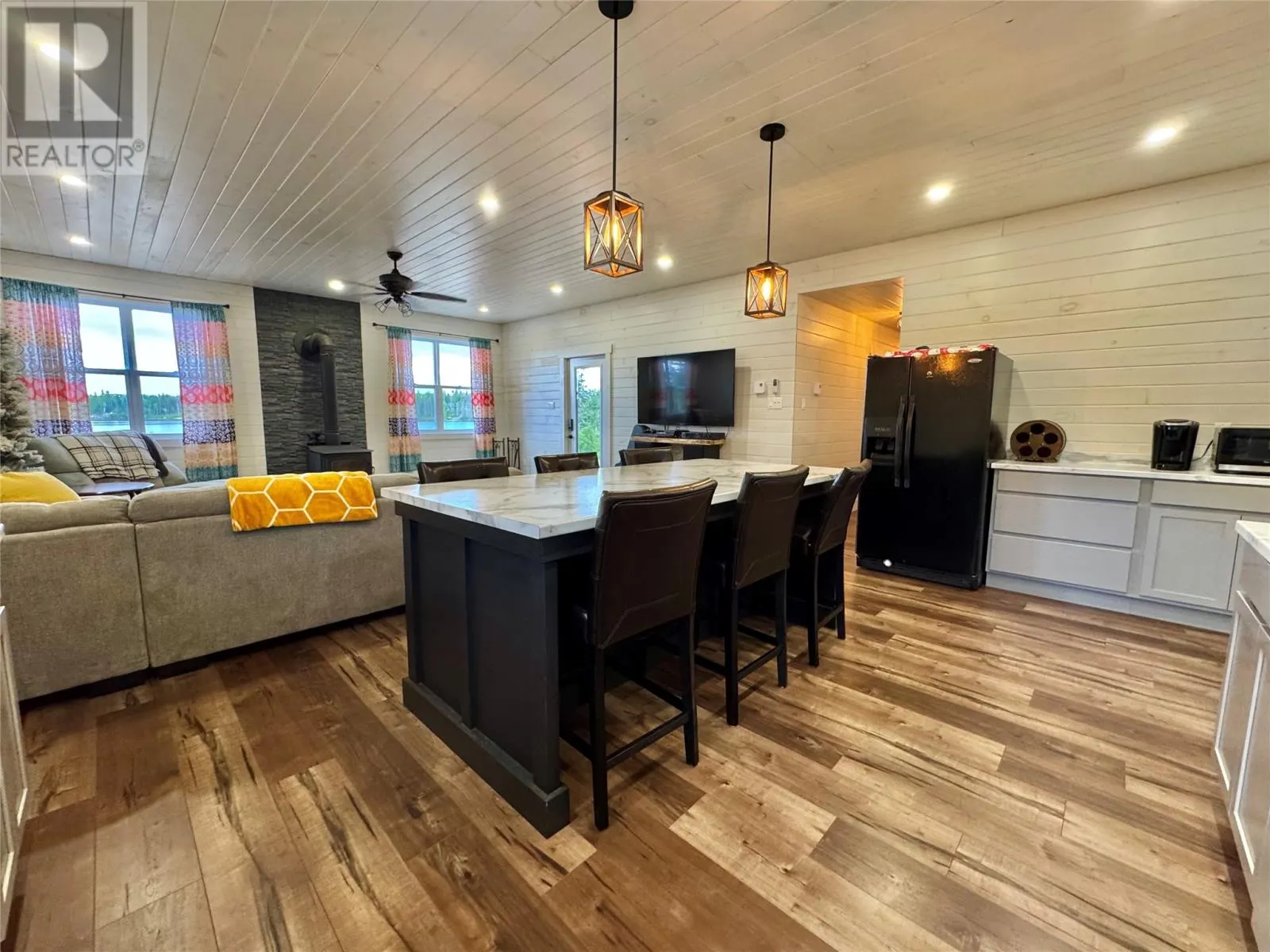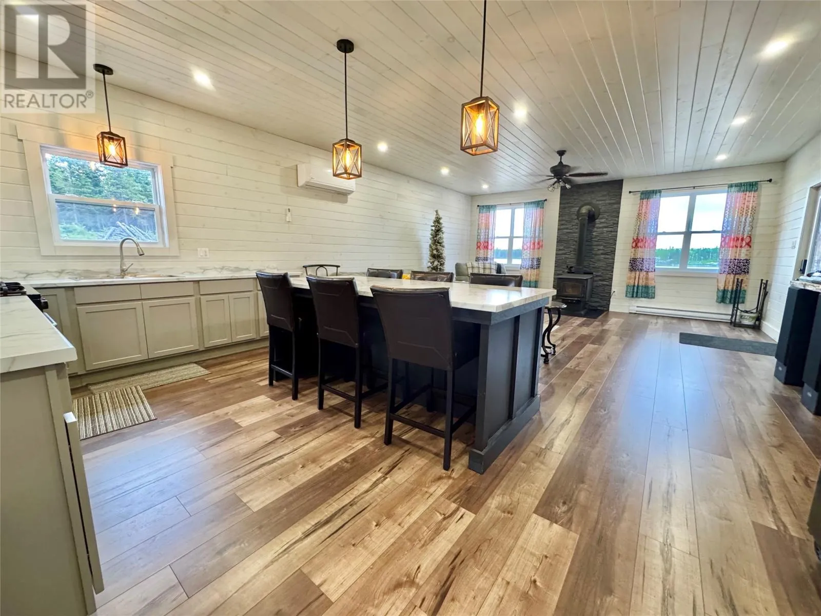 Charming New Waterfront Cabin on Pikes Pond â Your Perfect Escape Retreat! Boasting just under an acre of stunning waterfront property, this brand-new bungalow offers a rare opportunity to own a serene retreat on Pikes Pond, just outside of Gander. This spacious three-bedroom, one-bath home features a bright, open-concept design. The large kitchen is a chefâs dream, complete with a huge island, ample counter space, and plenty of cabinetsâperfect for family gatherings and entertaining guests. Large windows throughout the home flood the space with natural light and showcase breathtaking views of the pond and surrounding nature. Stay cozy year-round with a wood stove, electric heat, and a modern heat pumpâoffering comfort and energy efficiency in all seasons. The interior is beautifully finished with ship lap walls, adding charm and warmth to this inviting home. Located on a pristine pond with a dug well, septic system and 200-amp service, this property is perfect for outdoor enthusiasts. Enjoy world-class fishing, incredible hunting, and miles of sea of berries right at your doorstep. The newly connected electricity ensures modern amenities are at your fingertips, all while maintaining the peaceful, off-grid lifestyle. Step outside onto the covered front deckâideal for relaxing and taking in the view, rain or shine. This property truly has it all: a peaceful setting, ample outdoor activities, and a cozy home to call your own. Whether you're seeking a peaceful getaway, a hunting and fishing haven, or a place to gather with friends and family, this property is sure to turn heads. Itâs a perfect home away from homeâready to be your private retreat. Donât miss out on this exceptional opportunity to own a waterfront paradise. Schedule your viewing today! (id:27476)