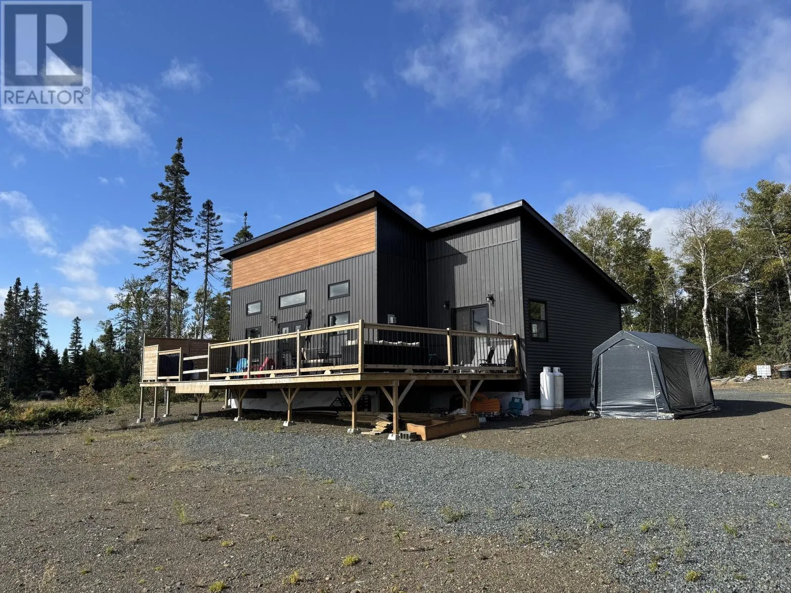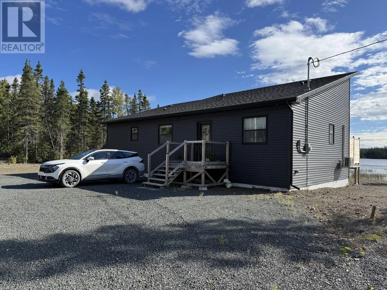 Waterfront Retreat on Island Pond â Newly Constructed Cottage Just 20 Minutes from Gander! Looking for the ultimate getaway or the perfect retirement haven? This stunning two-bedroom cottage, just 20 minutes from Gander, sits on the shores of beautiful Island Pond and offers breathtaking viewsâwhere you can take in spectacular sunrises and sunsets every single day. From the outside, the unique design already makes a statement, but itâs once you step inside that this home truly takes your breath away. The spacious open-concept layout welcomes you with a bright foyer, complete with a tucked-away stackable washer and dryer, and flows seamlessly into the heart of the home. Vaulted ceilings, oversized windows, and patio doors flood the living space with natural light and lead to a large front deck that stretches across the cottageâalso accessible from the primary suite. The primary bedroom is a private retreat of its own, featuring a walk-in closet, half bath, and direct deck access. The second bedroom is perfect for guests or family. At the heart of the living/dining/kitchen space is a striking feature wall with a cozy propane stove, perfect for evenings by the fire. The kitchen is a true showpiece, designed with custom cabinetry, a bold island, and rich lower cupboards that give the entire space a modern, high-end finish. And the main bath? Itâs nothing short of stunningâwith a sleek black soaker tub, black toilet, and a matching shower that creates a dramatic, spa-like feel youâll fall in love with. Inside and out, this Island Pond cottage blends relaxation, comfort, and styleâready for you to move in and start enjoying the very best of waterfront living. (id:27476)