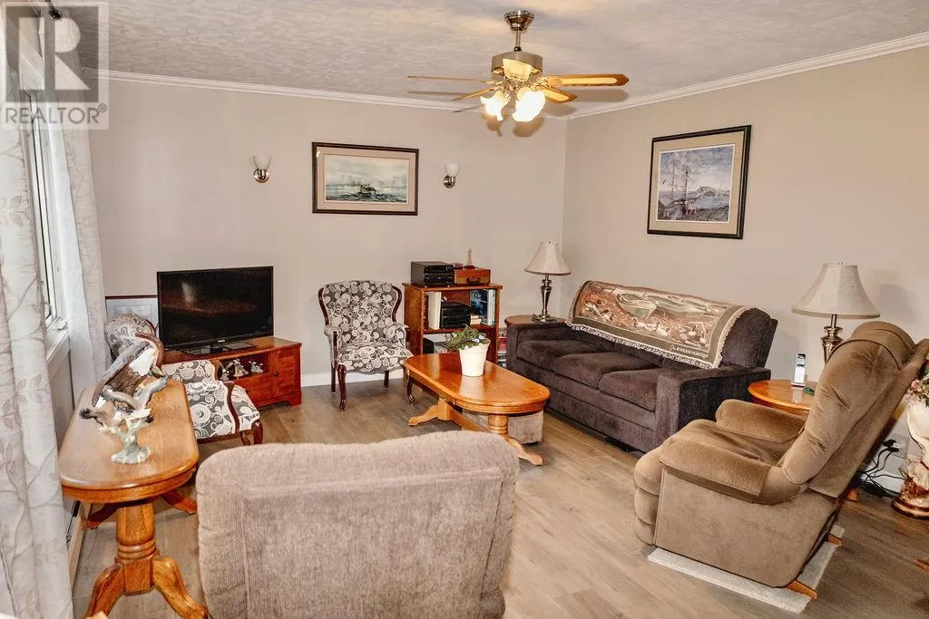Welcome to this well-maintained 2-bedroom home offering comfort, functionality, and flexibility for families or investors. The main level features two bedrooms and a bright living area, complemented by tasteful updates throughout. The lower level includes a bonus room and a 1-bedroom in-law suite with a shared laundry room and a shared entrance, ideal for extended family or rental potential. This property sits on a beautiful mature lot, providing privacy and outdoor enjoyment. Recent upgrades add peace of mind, including shingles replaced in 2021, vinyl windows, new hot water tank (2024), a new oil tank (2016), and a new garage door on the detached garage (2023). The bathroom has also been refreshed with a new vanity and toilet, and new flooring flows throughout much of the home. Close to Gander Academy and Gander Community Playground. Move-in ready with numerous modern updates, this home combines character, convenience, and value â a perfect find for todayâs market! (id:27476)