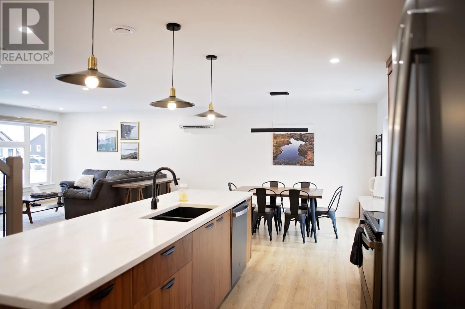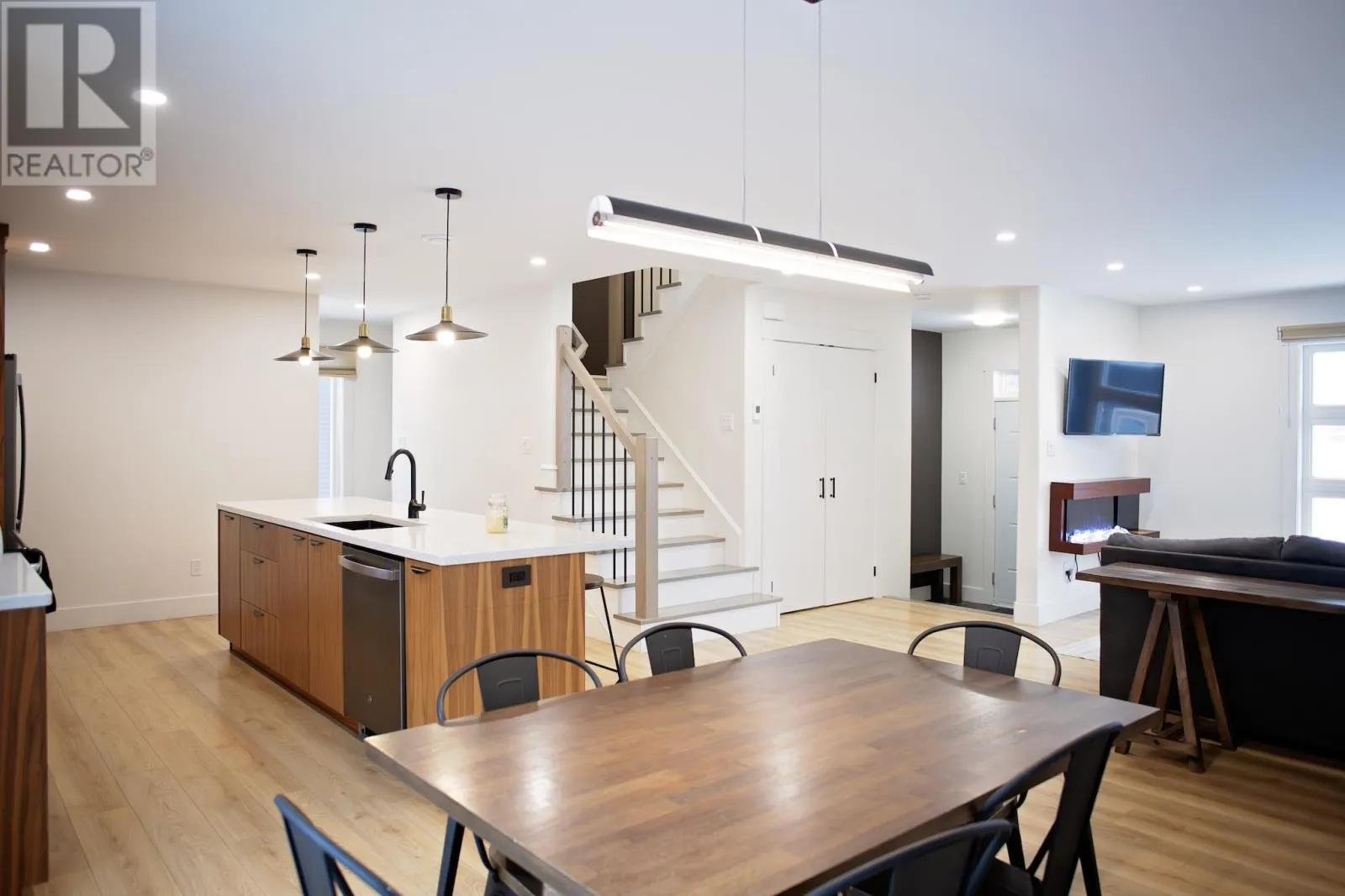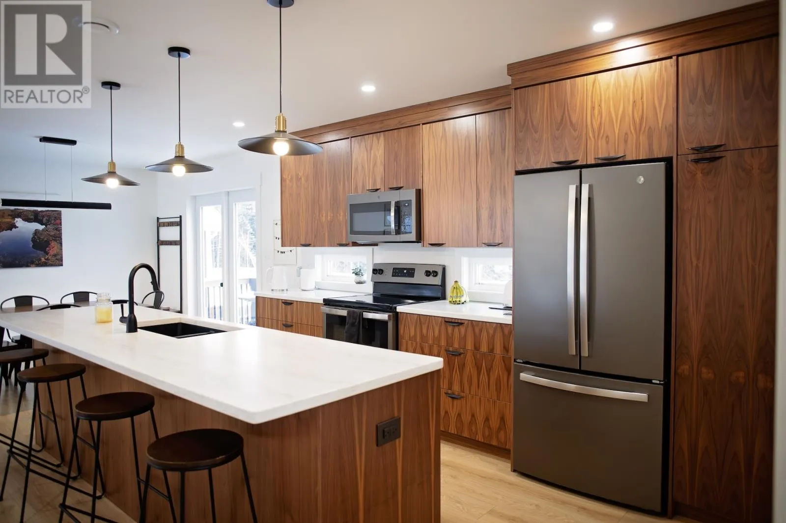 A beautifully designed two-storey home built in 2022 and fully move-in ready. This property offers the space, comfort, and modern finishes todayâs buyers are looking for, with thoughtful details throughout. The main level features a warm and inviting custom kitchen with solid-surface countertops, a large island, and a layout ideal for everyday living and entertaining. Youâll also find a bright living area, main-floor laundry with a half bath, and convenient access to the attached garage. Upstairs includes three spacious bedrooms, including a comfortable primary suite and two additional bedrooms for family or guests. The fully developed basement adds two more bedrooms, a full bathroom, a rec room, and walk-out access to the backyard â perfect for teens, extended family, or flexible living spaces. The exterior is just as impressive. The home backs onto a greenbelt for added privacy and offers a fully fenced yard, an expanded lower deck, and an above-ground heated pool for summer enjoyment. A paved driveway and 10' x 14' storage shed complete the property. With 3.5 baths, 3 mini-split heat pumps, and quality finishes throughout, this home is an excellent choice for anyone seeking a well-maintained, modern home in a great location. (id:27476)