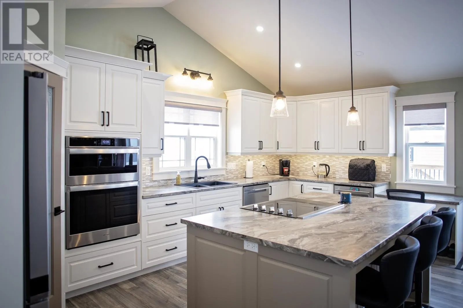 Built in 2022, this thoughtfully designed bungalow on 134 Penwell Avenue offers effortless one-level living with nothing left to do but move in. The bright, open-concept layout features soaring vaulted ceilings and a luxury ducted heat pump system that provides comfortable, energy-efficient heating and cooling year-round. At the heart of the home is a stunning kitchen with an oversized island, a downdraft stovetop, and built-in oven and microwave, making it as functional as it is beautifulâcomplemented by a three-filter water treatment system for added peace of mind. The home includes three well-appointed bedrooms, with double doors leading into a spacious primary suite that boasts a large walk-in closet filled with natural light and a private three-piece ensuite. Practicality is built in throughout, including a crawl space that is easily accessible from the attached garage via a dedicated door and stairway, providing convenient, usable storage. Meticulously maintained inside and out, the property features a fully fenced and beautifully landscaped yard, backyard vehicle access, an attached 19â x 20â garage, plus a wired, insulated, and heated 16' x 20' detached garage equipped with its own mini-split heat pump and workbenchesâperfect for hobbies, storage, or a workshop. (id:27476)