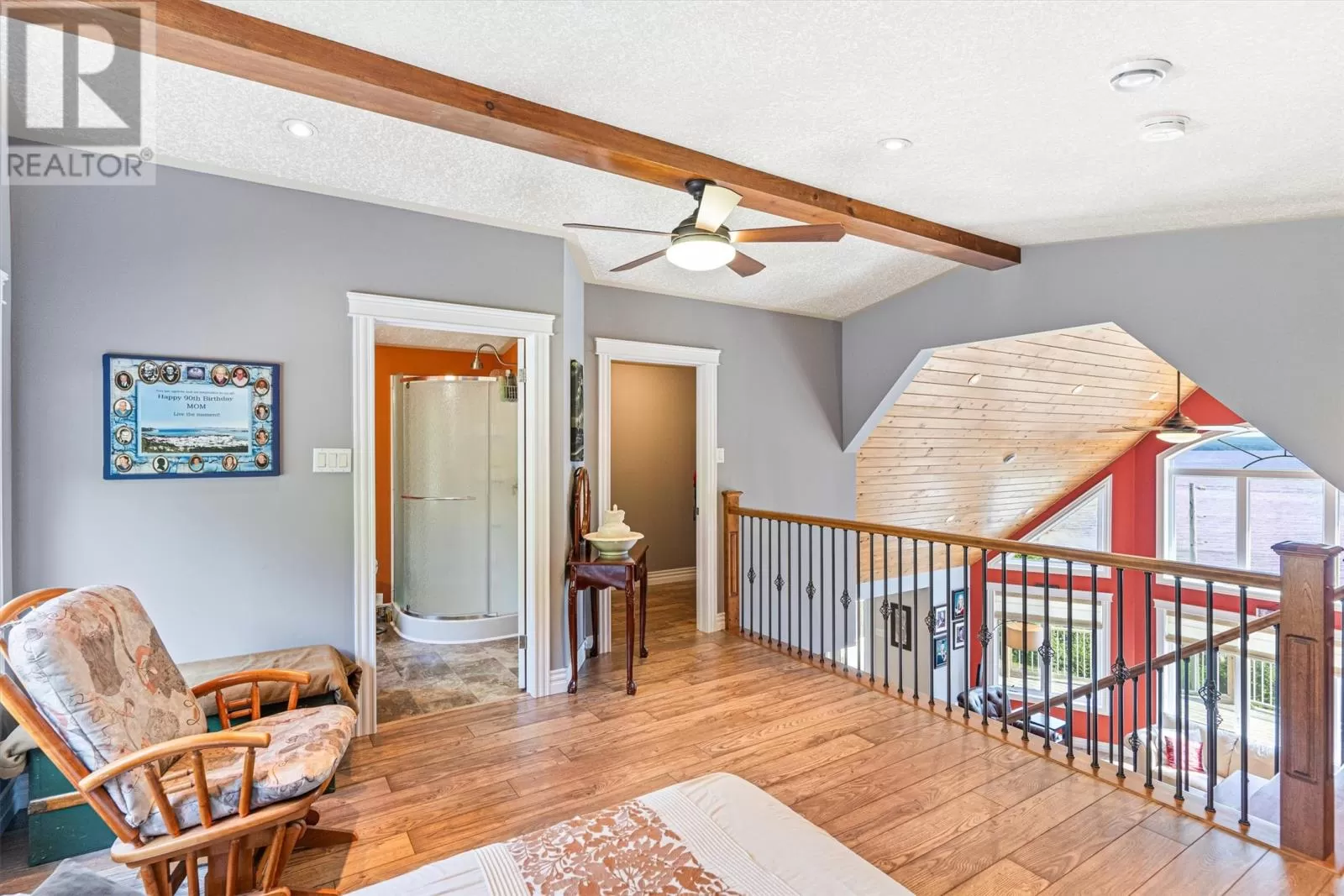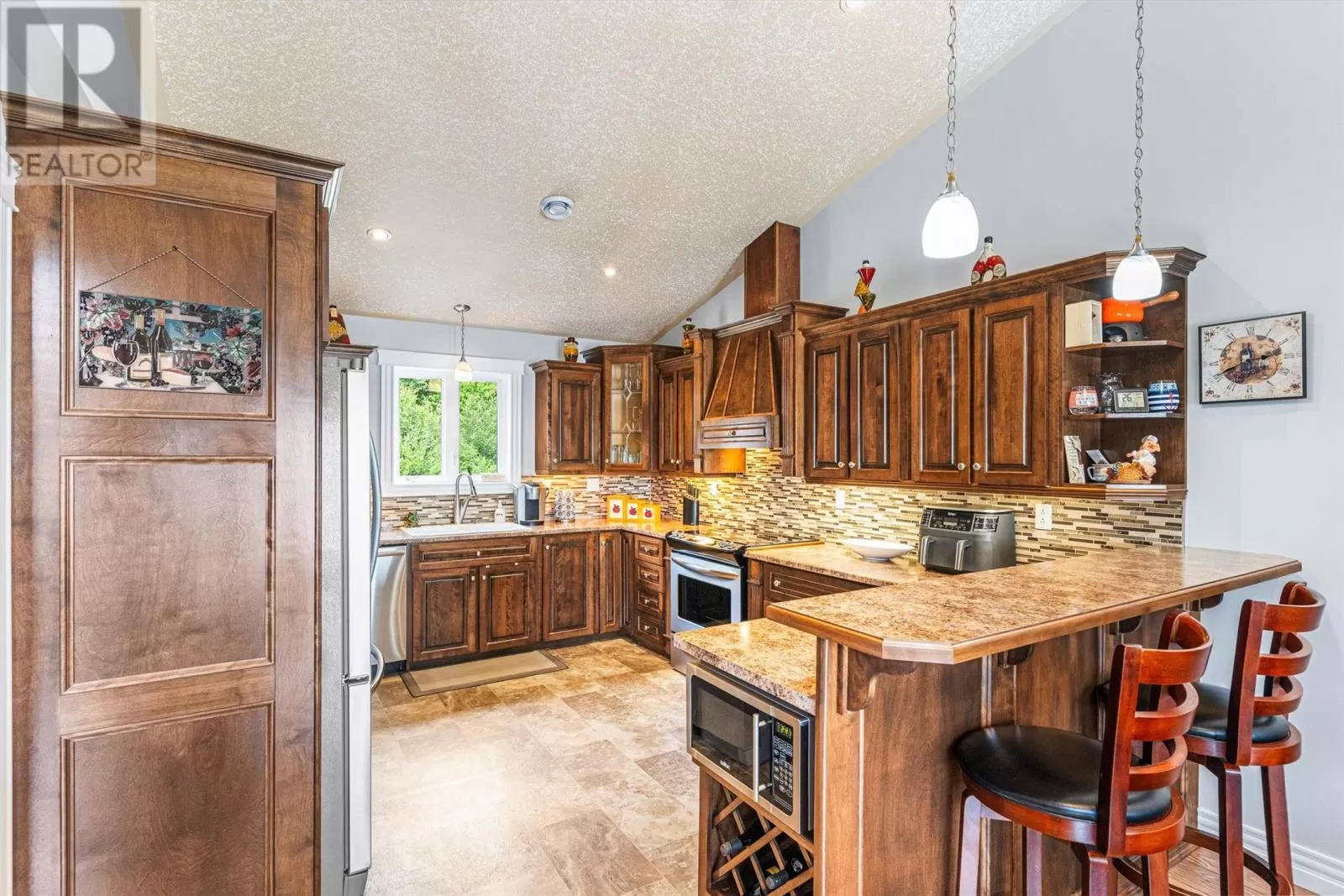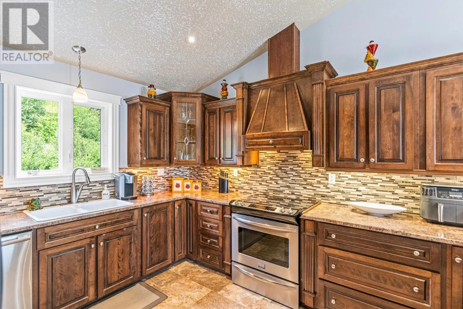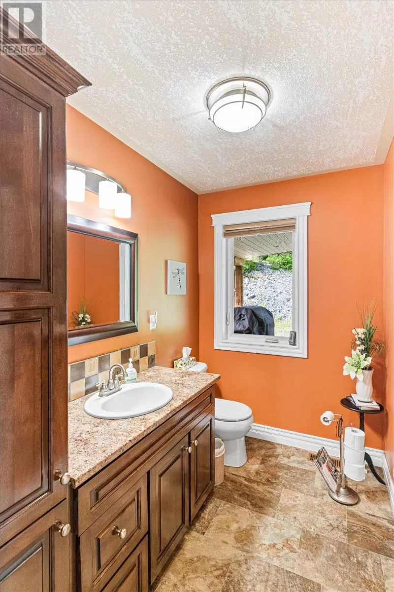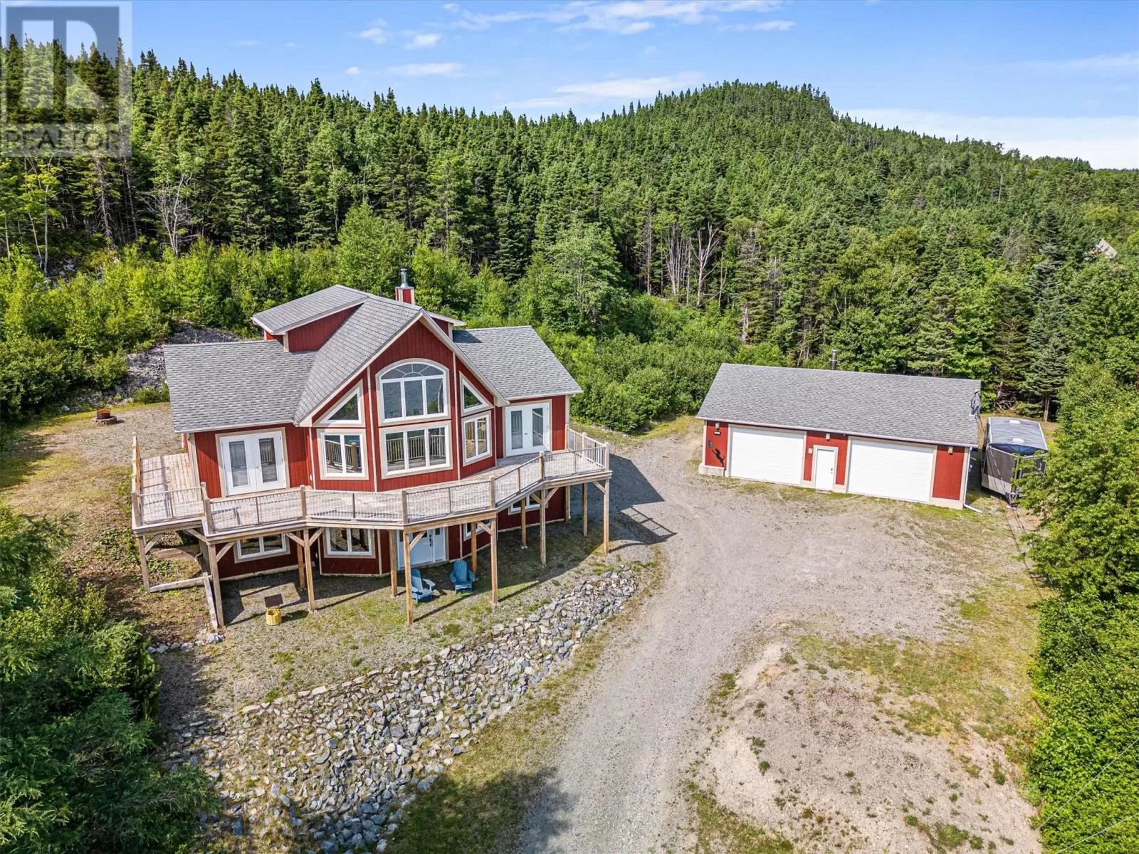 Welcome to 373 Main St. N., Glovertownâa beautiful home on 5.6 acres in one of Newfoundlandâs most charming communities. Glovertown is known for its warm, welcoming atmosphere, vibrant community spirit, and proximity to the Eastport Peninsula and sandy beaches. Whether you're after outdoor adventures, coastal views, or a close-knit community, Glovertown has it all. This custom-built chalet-style home, completed in 2012, blends modern comfort with natural beauty. With around 2900 sq ft, it features composite siding, a 400-amp panel, also for peace and reliability there is a hookup for a generator in case of a power outage. The home is equipped with in-floor heating, a central vacuum, and a new central heat pump installed six years ago for efficient climate control. Additional energy-efficient features include a fiberglass hot water tank and a wood-burning furnace. Enter through a large back foyer into an open-concept living area filled with natural light. The kitchen boasts a ceramic backsplash, plenty of cabinets, and large windows. The main floor hosts a luxurious primary bedroom with a walk-in closet and an en suite featuring a stand-up shower, Jacuzzi tub, and double sinksâperfect for relaxing after outdoor adventures. Upstairs, a loft with a queen bed, private bathroom, and spacious closet offers versatile guest space. The lower level includes a dry bar, additional bedroom, office, mechanical room, and another bathroom with a stand-up shower. The 30x40 insulated garage with concrete flooring, double doors, and a wood stove provides ample space for vehicles and hobbies. Enjoy outdoor trails on your property for walking, snowshoeing, or exploring. Glovertown offers a peaceful lifestyle with easy access to beaches, boating, fishing, and outdoor activities. This exceptional property combines luxury living with Newfoundlandâs natural beautyâan opportunity not to be missed! (id:27476)