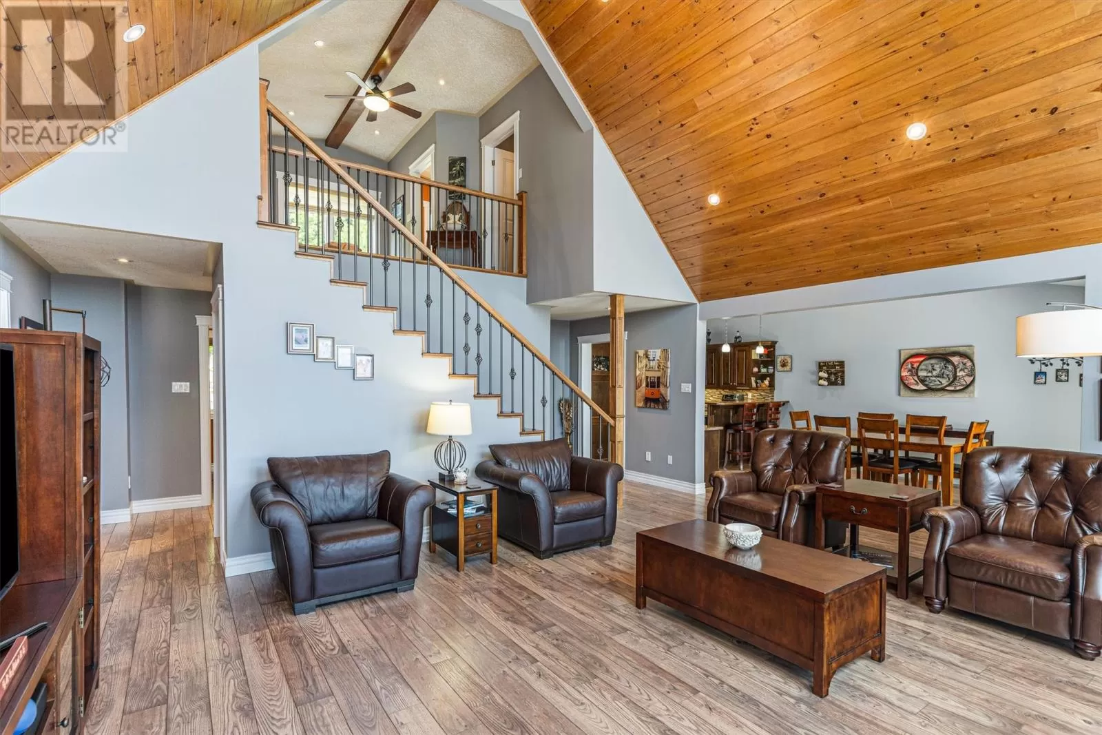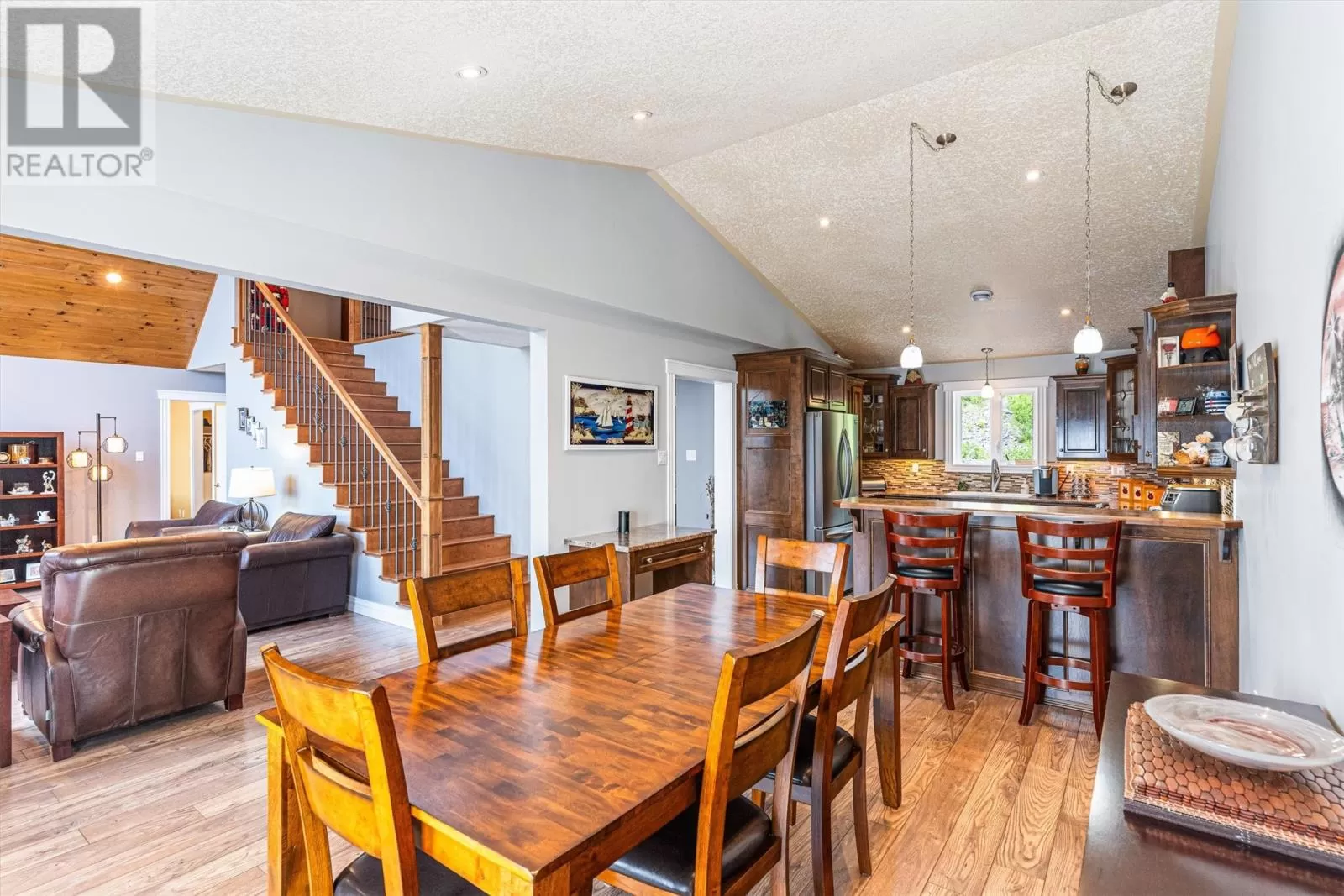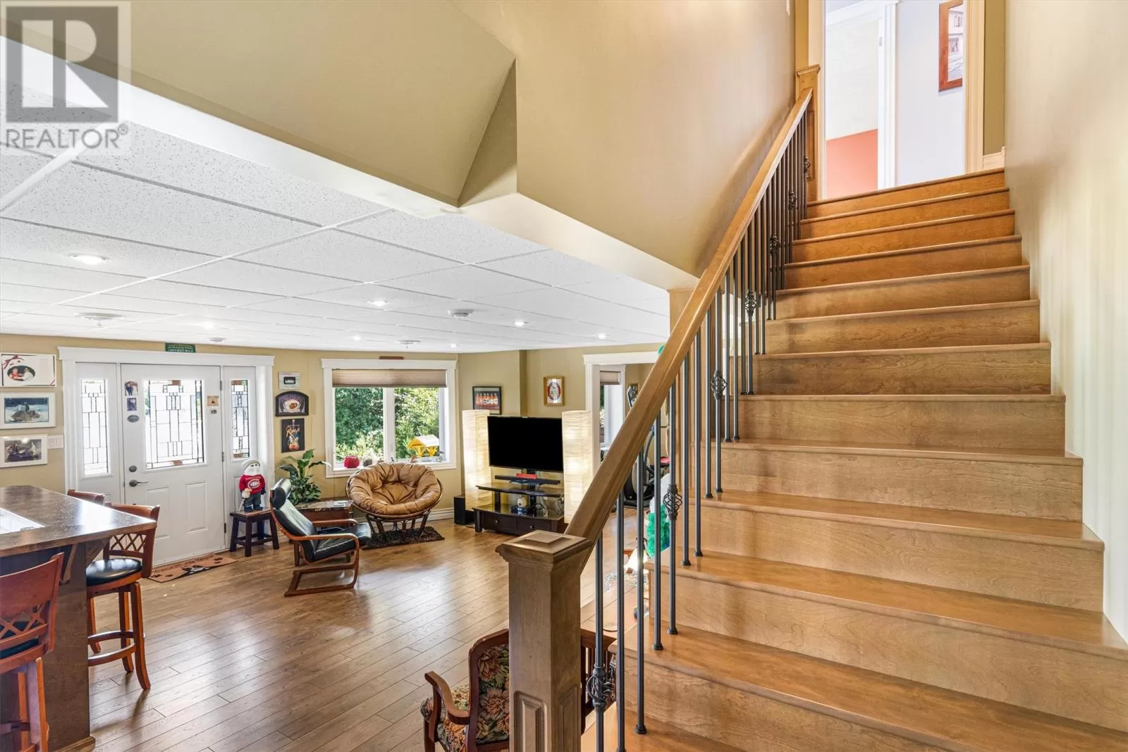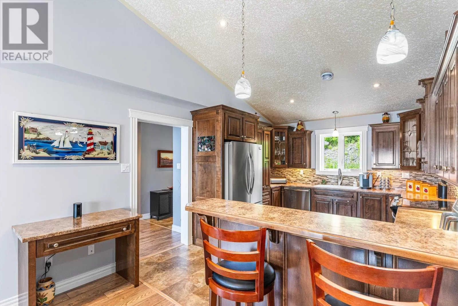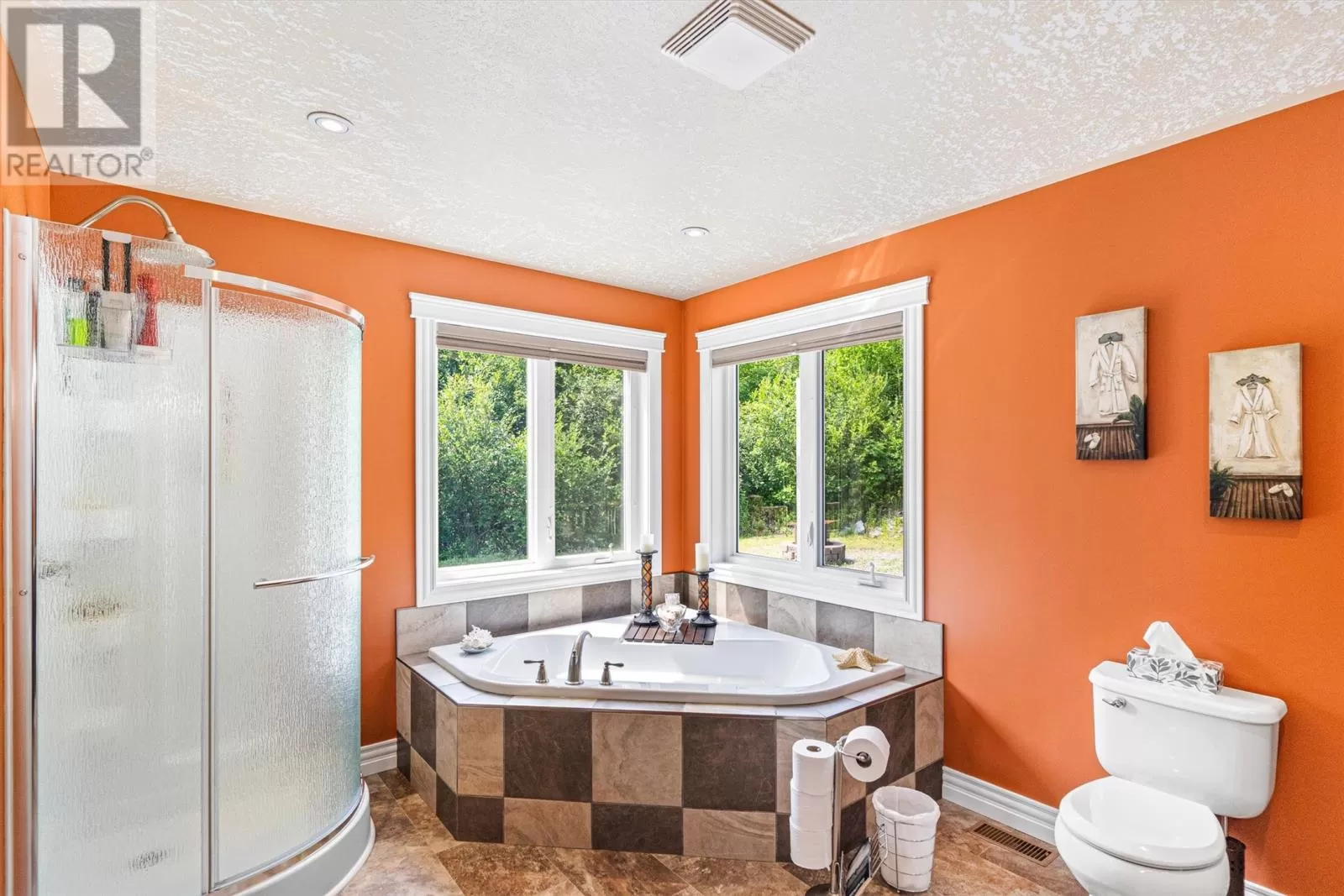 Welcome to 373 Main St. N., Glovertownâa beautiful home on 5.6 acres in one of Newfoundlandâs most charming communities. Glovertown is known for its warm, welcoming atmosphere, vibrant community spirit, and proximity to the Eastport Peninsula and sandy beaches. Whether you're after outdoor adventures, coastal views, or a close-knit community, Glovertown has it all. This custom-built chalet-style home, completed in 2012, blends modern comfort with natural beauty. With around 2900 sq ft, it features composite siding, a 400-amp panel, also for peace and reliability there is a hookup for a generator in case of a power outage. The home is equipped with in-floor heating, a central vacuum, and a new central heat pump installed six years ago for efficient climate control. Additional energy-efficient features include a fiberglass hot water tank and a wood-burning furnace. Enter through a large back foyer into an open-concept living area filled with natural light. The kitchen boasts a ceramic backsplash, plenty of cabinets, and large windows. The main floor hosts a luxurious primary bedroom with a walk-in closet and an en suite featuring a stand-up shower, Jacuzzi tub, and double sinksâperfect for relaxing after outdoor adventures. Upstairs, a loft with a queen bed, private bathroom, and spacious closet offers versatile guest space. The lower level includes a dry bar, additional bedroom, office, mechanical room, and another bathroom with a stand-up shower. The 30x40 insulated garage with concrete flooring, double doors, and a wood stove provides ample space for vehicles and hobbies. Enjoy outdoor trails on your property for walking, snowshoeing, or exploring. Glovertown offers a peaceful lifestyle with easy access to beaches, boating, fishing, and outdoor activities. This exceptional property combines luxury living with Newfoundlandâs natural beautyâan opportunity not to be missed! (id:27476)