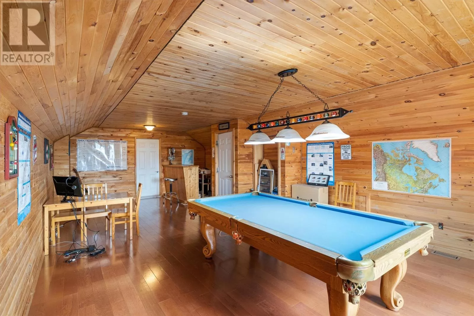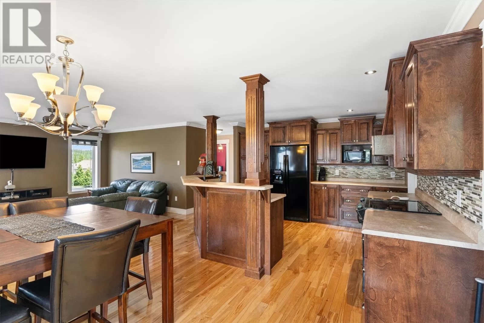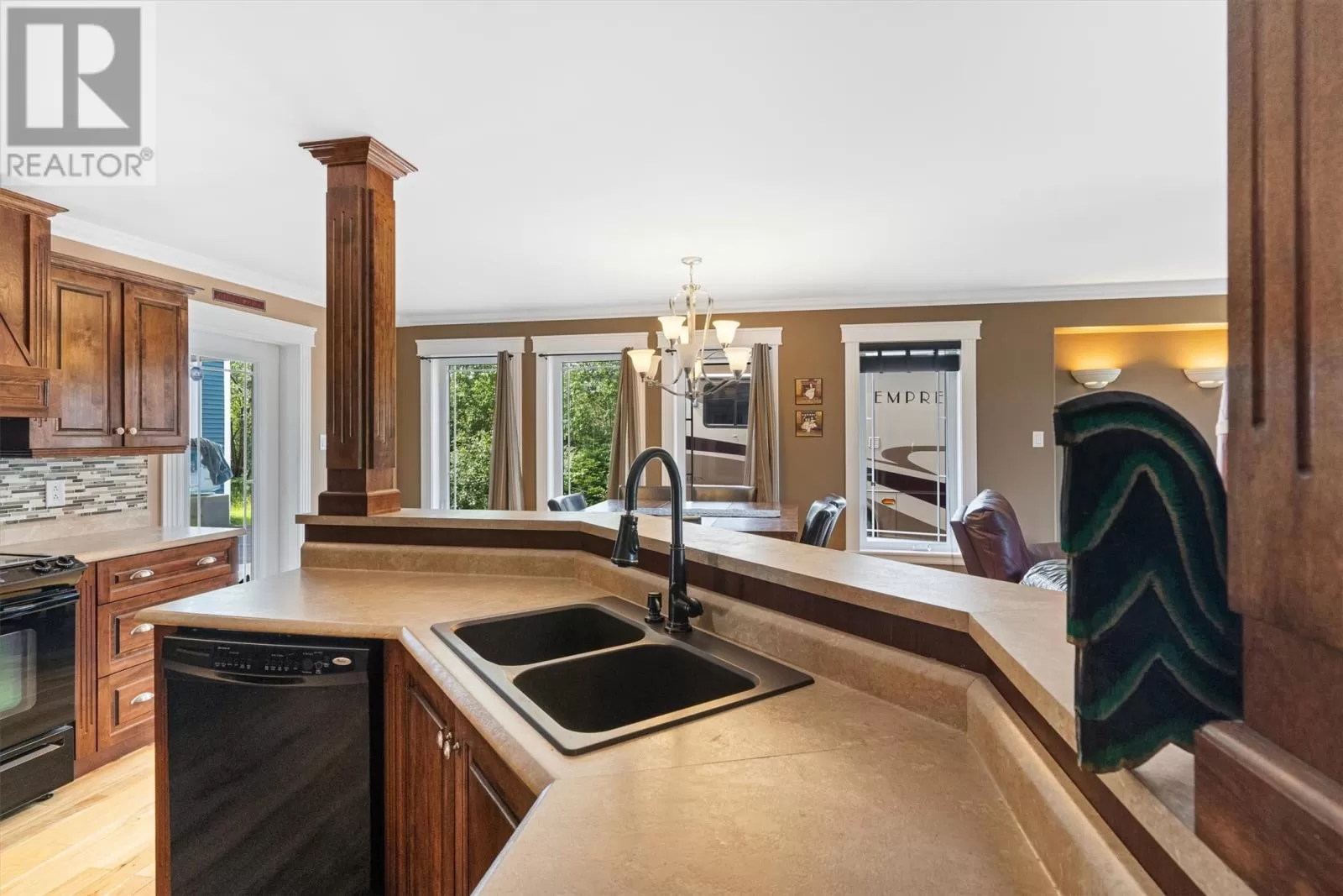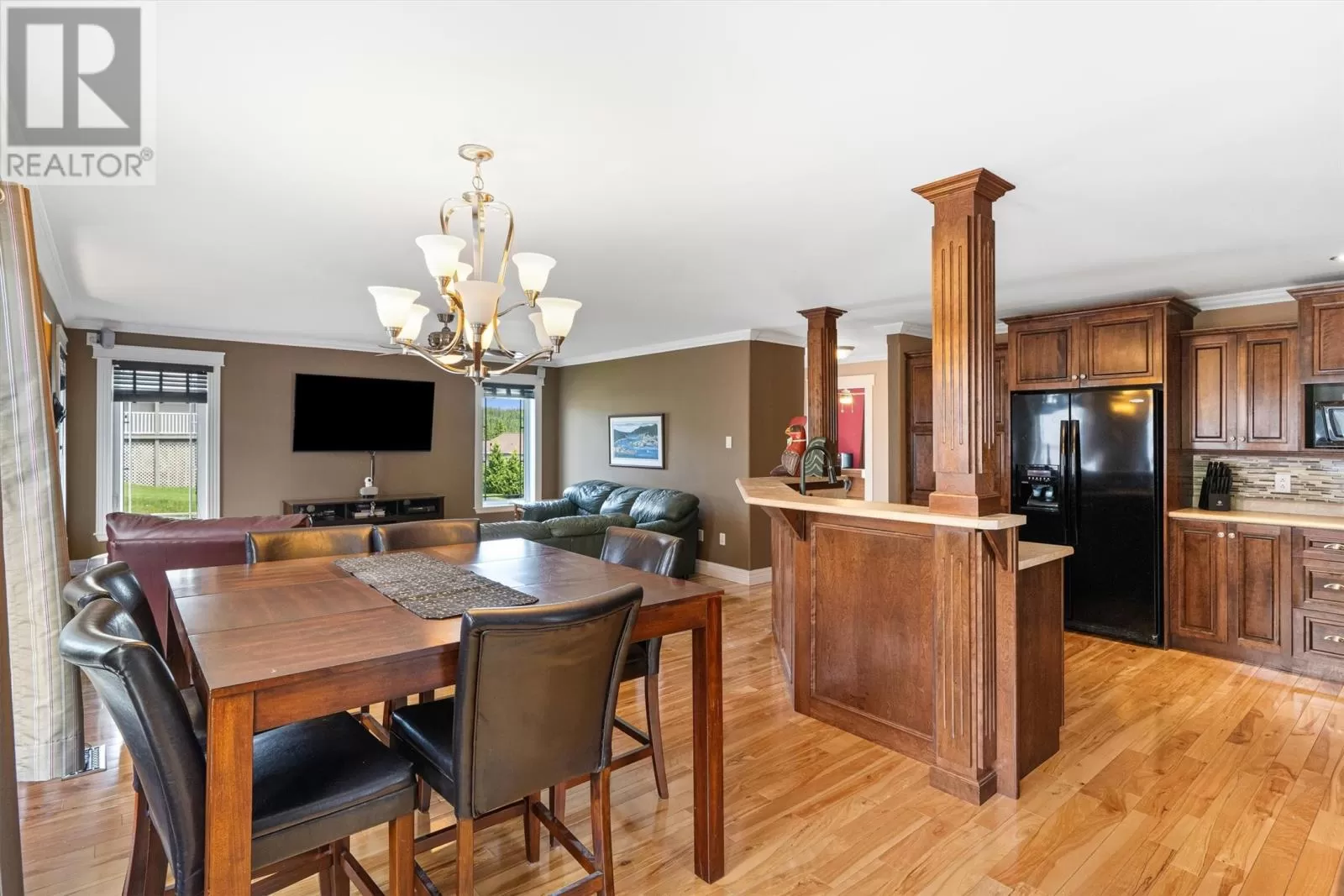 Welcome to 35 Alexander Crescent, nestled in the scenic coastal community of Glovertown. This stunning 3-bedroom, 2.5-bath home offers a perfect blend of comfort, functionality, and coastal charm. Built in 2009, this residence features main-floor living with an open-concept design, ideal for families or those seeking a peaceful retreat. The spacious interior boasts a well-appointed kitchen with ample cabinetry and storage, a welcoming dining area, and a cozy living room. Upstairs, you'll discover a billiards room complete with a pool tableâperfect for entertainingâand the potential to add a wet bar, as water lines are already in place. The three bedrooms are generous in size, with the primary bedroom featuring a private full bath and walk in closet. The main floor also includes a laundry area, a gym space, and a second full bath. The partially developed basement offers versatile space for storage, additional bedroom options, bathroom, or a rec room to suit your lifestyle. Outside, enjoy the expansive partially covered deck that spans half the home, providing breathtaking ocean views of the harbor and Eastport Peninsulaâan ideal spot for relaxing or entertaining guests. Parking is a breeze with two paved driveways accommodating multiple vehicles. The property features a double detached garage with a 14-foot door and 16-foot ceilings, perfect for hobbies or additional storage. The attached garage is plumbed for in-floor heating, with the infrastructure already in place, ready for future upgrades. Built on a corner lot in a quiet, new subdivision, this home is constructed with premium blue spruce siding, 30-year shingles, and a 12-inch ice block frost barrier beneath the concrete floor for added warmth. The property is equipped with a modern heat pump installed three years ago, backed by a 10-year transferrable warranty. If youâre seeking a home that offers space, comfort, and spectacular ocean views in a peaceful community, donât miss this opportunity. (id:27476)