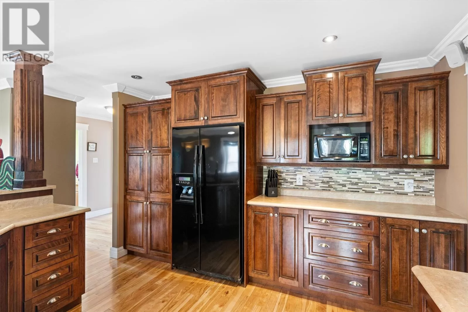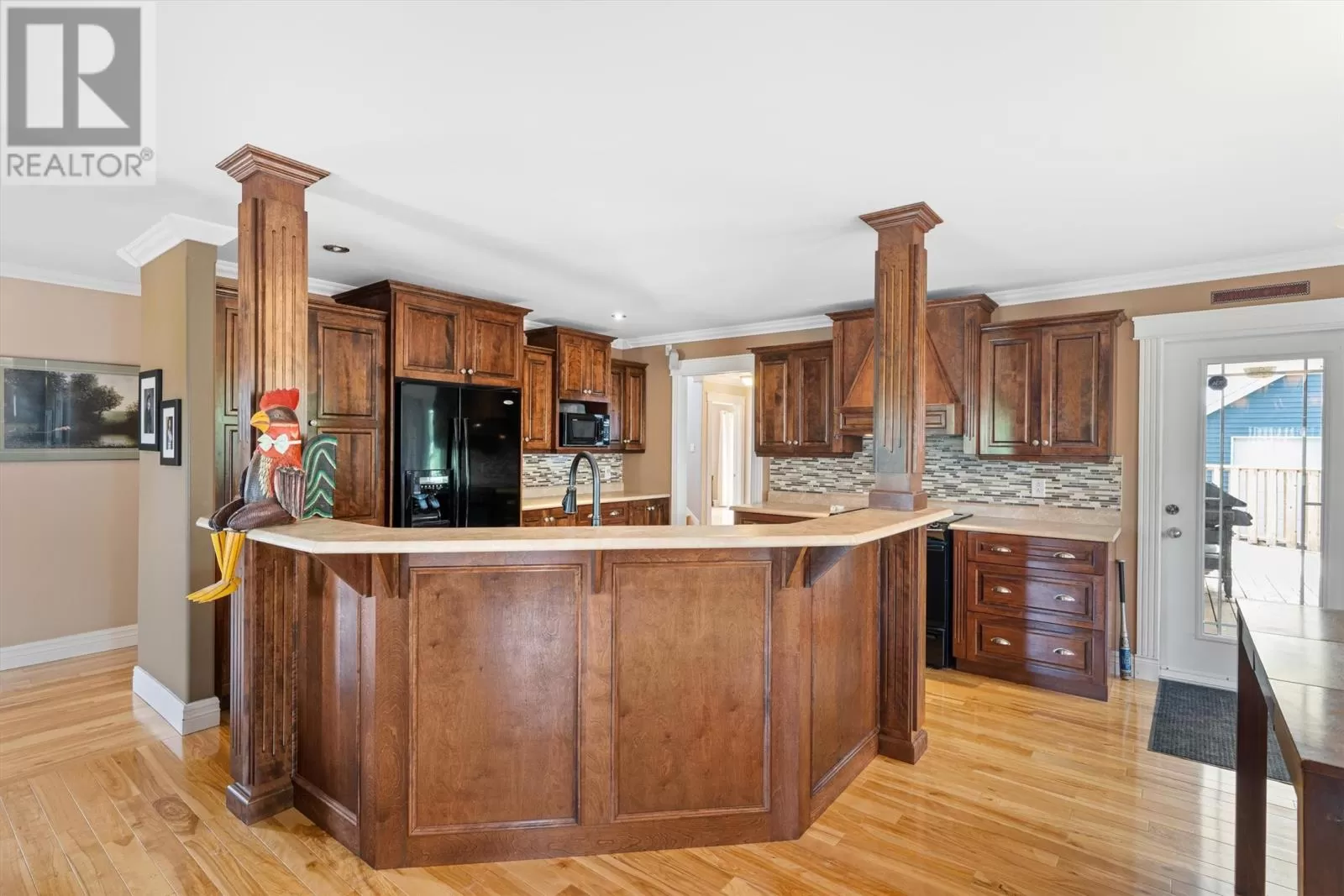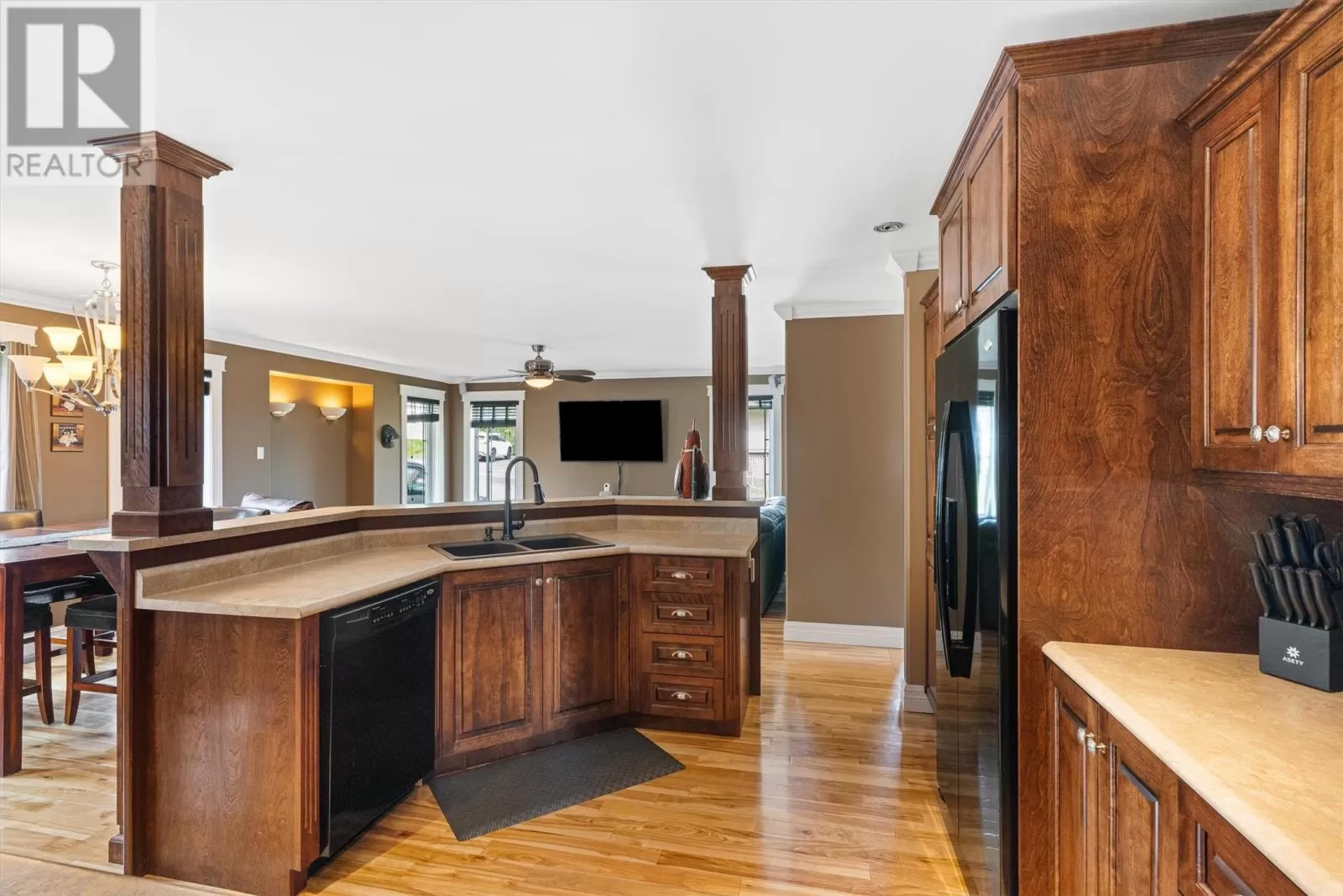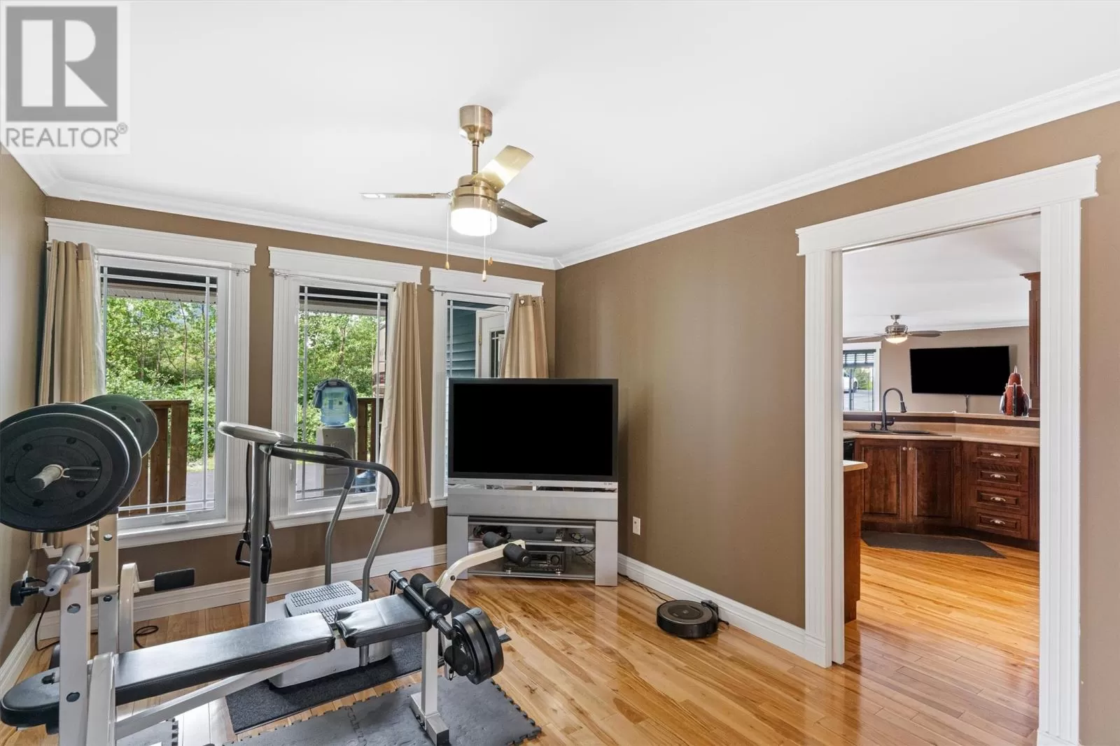 Welcome to 35 Alexander Crescent, nestled in the scenic coastal community of Glovertown. This stunning 3-bedroom, 2.5-bath home offers a perfect blend of comfort, functionality, and coastal charm. Built in 2009, this residence features main-floor living with an open-concept design, ideal for families or those seeking a peaceful retreat. The spacious interior boasts a well-appointed kitchen with ample cabinetry and storage, a welcoming dining area, and a cozy living room. Upstairs, you'll discover a billiards room complete with a pool tableâperfect for entertainingâand the potential to add a wet bar, as water lines are already in place. The three bedrooms are generous in size, with the primary bedroom featuring a private full bath and walk in closet. The main floor also includes a laundry area, a gym space, and a second full bath. The partially developed basement offers versatile space for storage, additional bedroom options, bathroom, or a rec room to suit your lifestyle. Outside, enjoy the expansive partially covered deck that spans half the home, providing breathtaking ocean views of the harbor and Eastport Peninsulaâan ideal spot for relaxing or entertaining guests. Parking is a breeze with two paved driveways accommodating multiple vehicles. The property features a double detached garage with a 14-foot door and 16-foot ceilings, perfect for hobbies or additional storage. The attached garage is plumbed for in-floor heating, with the infrastructure already in place, ready for future upgrades. Built on a corner lot in a quiet, new subdivision, this home is constructed with premium blue spruce siding, 30-year shingles, and a 12-inch ice block frost barrier beneath the concrete floor for added warmth. The property is equipped with a modern heat pump installed three years ago, backed by a 10-year transferrable warranty. If youâre seeking a home that offers space, comfort, and spectacular ocean views in a peaceful community, donât miss this opportunity. (id:27476)
