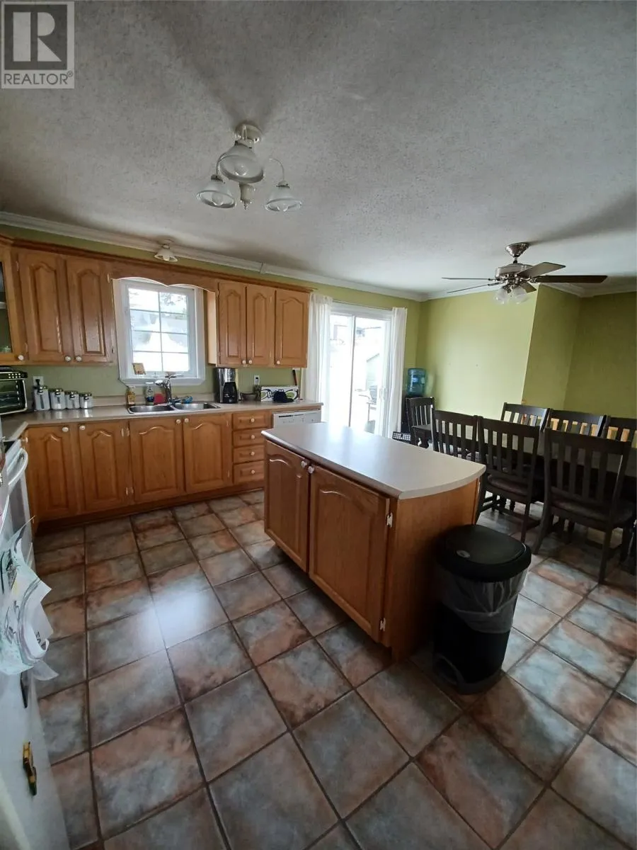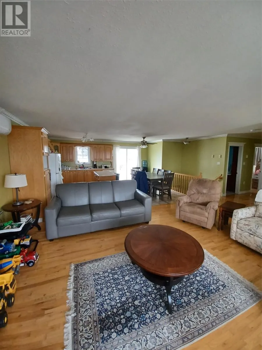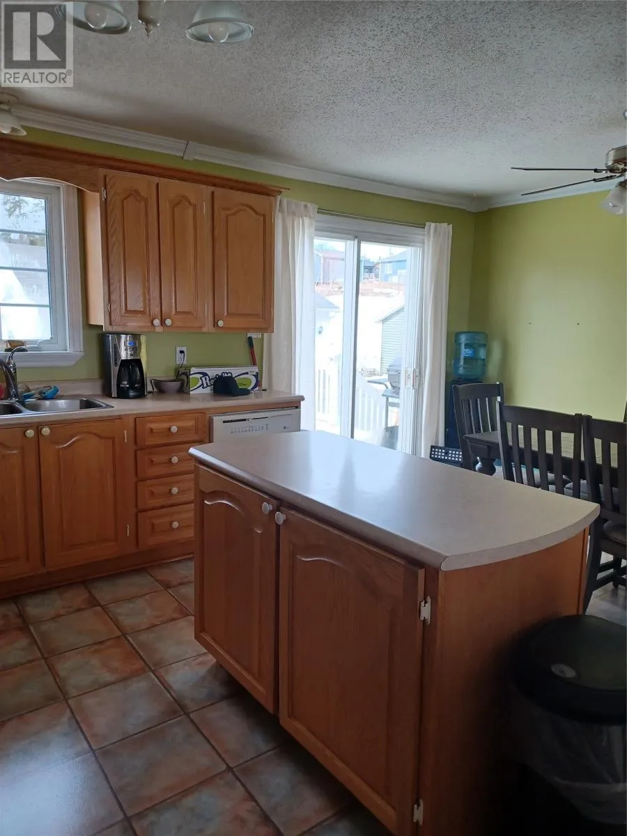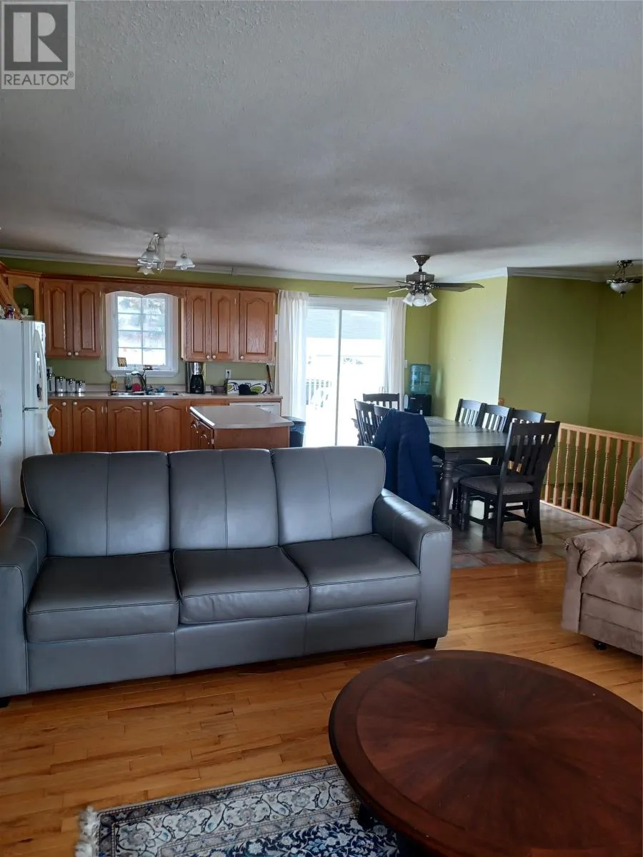 Located on a greenbelt in a quiet neighborhood in Glovertown, this well-maintained and cozy bungalow offers exceptional privacy along with beautiful ocean views from the front deck â the perfect place to relax and watch the boats pass by. The main level features a spacious open-concept design with a large kitchen offering abundant cabinet space, a center island with additional storage, and plenty of prep area for family meals. The dining area includes patio doors leading to a 16 x 20 patio, providing ample space for outdoor entertaining. The bright and spacious living room flows seamlessly within this inviting layout. Two comfortable bedrooms and the main bathroom complete the main floor. The fully developed walkout basement offers even more living space with a rec room, two additional bedrooms, and a laundry area located in the unfinished utility space. There is an outside entrance leading into a mudroom area with a double closet, plus additional storage under the stairs. The backyard is fully paved and maintenance-free, complemented by a colourful wood shed and an impressive double door garage measuring 28 x 38 â ideal for vehicles, recreational toys, or workshop space. A mini-split heat pump along with electric heat provides efficient year-round comfort. Enjoy direct access to ATV trails right from your own backyard â no need to trailer up â and take advantage of being on the doorstep of Terra Nova National Park. Youâre just minutes from the beautiful beaches of Eastport and only a short commute to Gander. The local marina offers some of the best boating opportunities on the island, making this property a dream for outdoor enthusiasts. This is your opportunity to live, play, and work in Centralâs biggest playground. Book your viewing today! (id:27476)