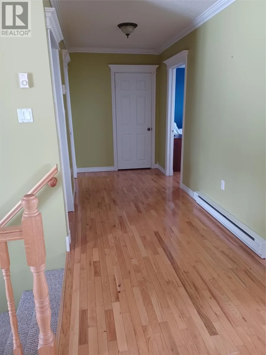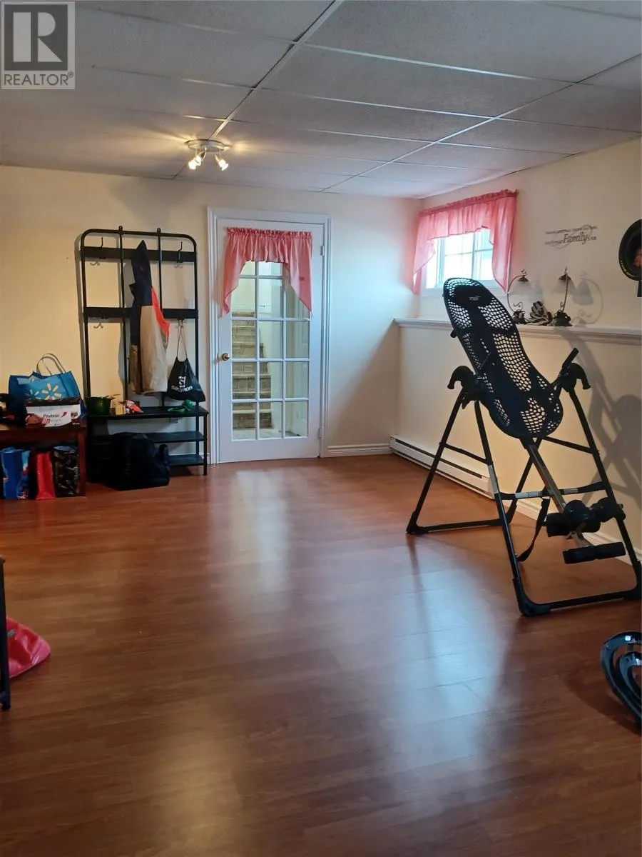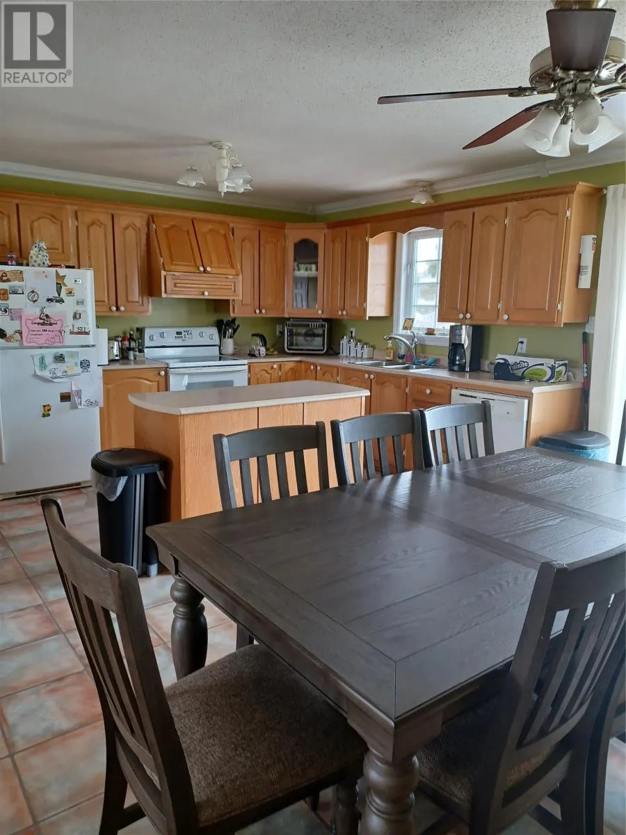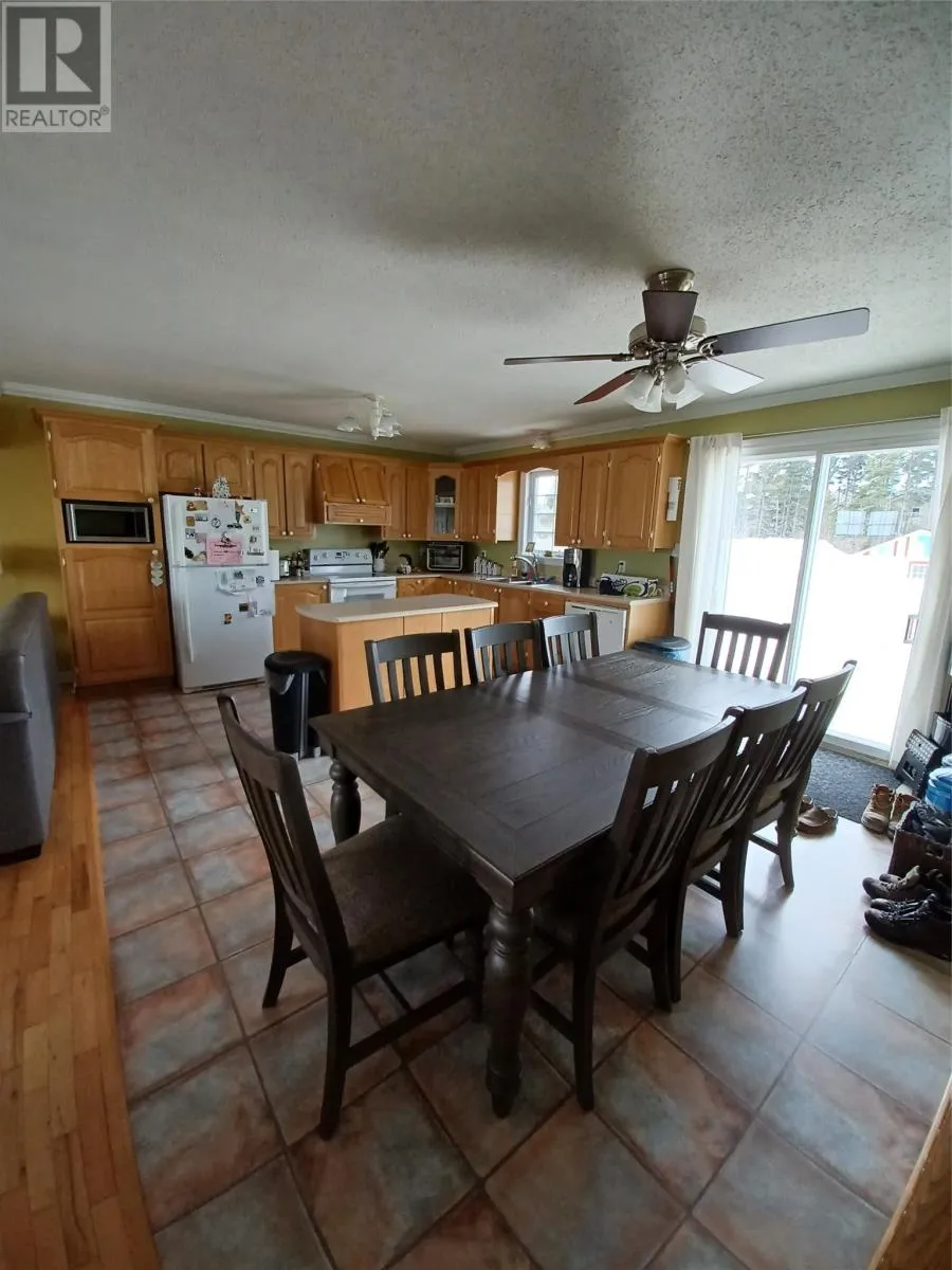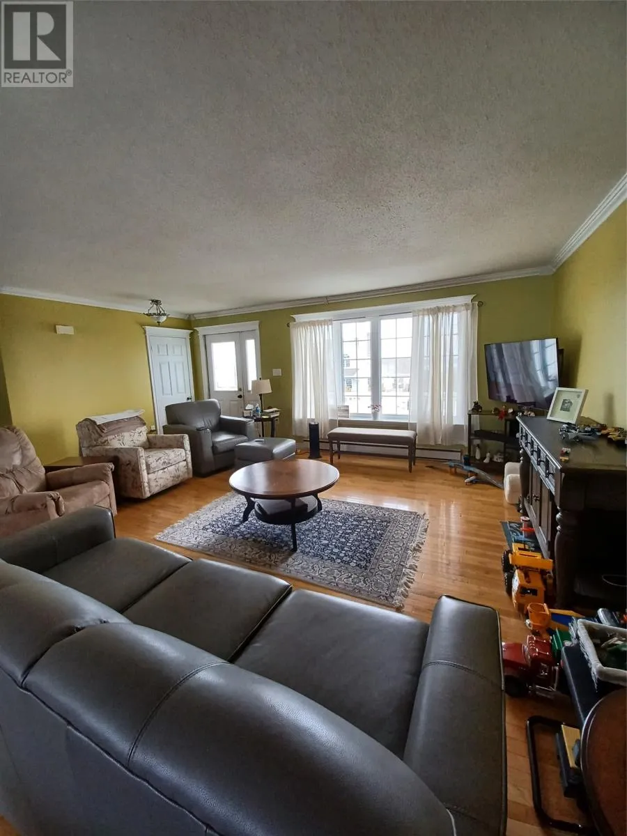 Located on a greenbelt in a quiet neighborhood in Glovertown, this well-maintained and cozy bungalow offers exceptional privacy along with beautiful ocean views from the front deck â the perfect place to relax and watch the boats pass by. The main level features a spacious open-concept design with a large kitchen offering abundant cabinet space, a center island with additional storage, and plenty of prep area for family meals. The dining area includes patio doors leading to a 16 x 20 patio, providing ample space for outdoor entertaining. The bright and spacious living room flows seamlessly within this inviting layout. Two comfortable bedrooms and the main bathroom complete the main floor. The fully developed walkout basement offers even more living space with a rec room, two additional bedrooms, and a laundry area located in the unfinished utility space. There is an outside entrance leading into a mudroom area with a double closet, plus additional storage under the stairs. The backyard is fully paved and maintenance-free, complemented by a colourful wood shed and an impressive double door garage measuring 28 x 38 â ideal for vehicles, recreational toys, or workshop space. A mini-split heat pump along with electric heat provides efficient year-round comfort. Enjoy direct access to ATV trails right from your own backyard â no need to trailer up â and take advantage of being on the doorstep of Terra Nova National Park. Youâre just minutes from the beautiful beaches of Eastport and only a short commute to Gander. The local marina offers some of the best boating opportunities on the island, making this property a dream for outdoor enthusiasts. This is your opportunity to live, play, and work in Centralâs biggest playground. Book your viewing today! (id:27476)