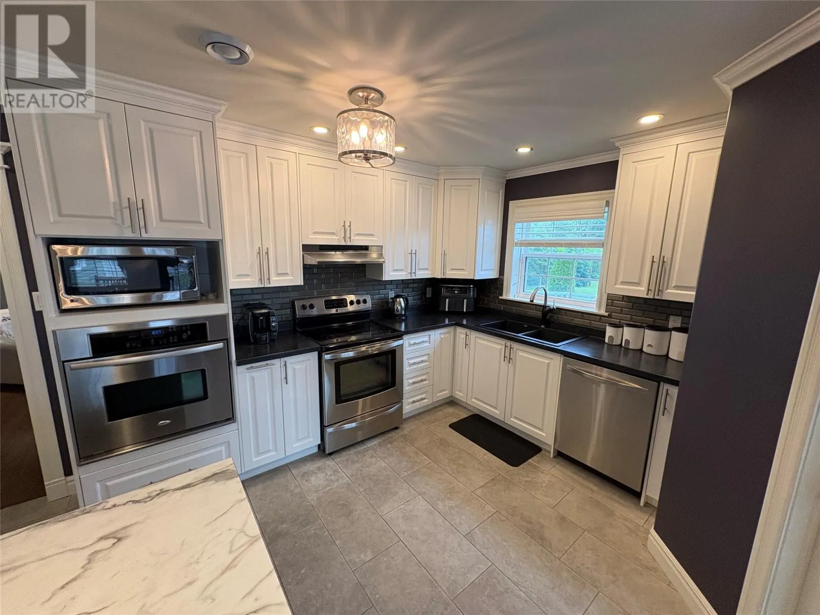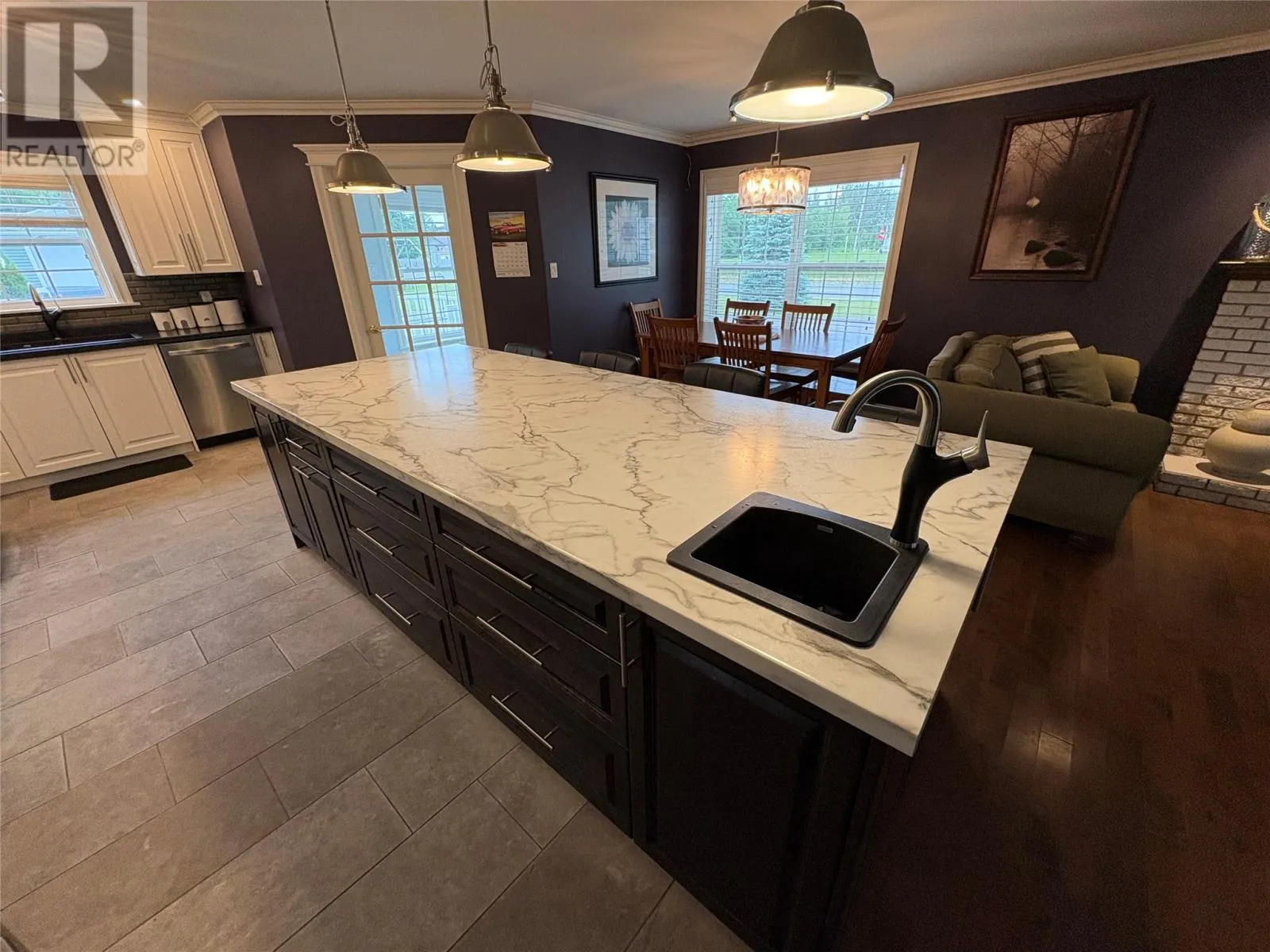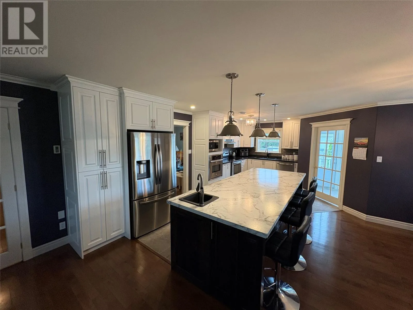Welcome to 50 Thomas Street! Situated on a half acre lot this property has so many extras you will be amazed as soon as you pull up to the property. The exterior is fully landscaped, contains mature trees & shrubs, 3 paved driveways, 3 garages, attached 20x20, detached 24x24 with 9' ceilings and 16x32 with 13' ceilings, half bath, wired, insulated and heated. The home has an inviting front foyer, wide hallways, family room with garden door for easy patio access, open concept dining, living room, kitchen area with white cabinets large island for meal prep or entertaining guess, stainless steel appliances, and a fully functioning built in wood burning fireplace. The remainder of the main level 3 ample sized bedrooms with primary possessing an ensuite, walk-in closet with laundry chute and 3pcs main bath. Basement contains an oversized entertaining area with a custom built bar, cozy woodstove, office, half bath, laundry room, cold storage, utility room and separate entrance that leads from the basement to the attached garage. Home has dark engineered hardwood throughout (birch upstairs & oak downstairs) and home is economically heated with in-floor heating. Some other special features of this home is built with all plywood sheeting, ice block foundation, hot water on demand, stainless steel hot water tank, 2 inch insulation under siding, all rooms wired for electric baseboard, 400amp electrical service, RV septic dump station and much more. Don't delay book your personal viewing today! (id:27476)