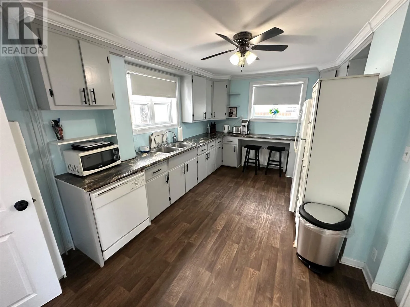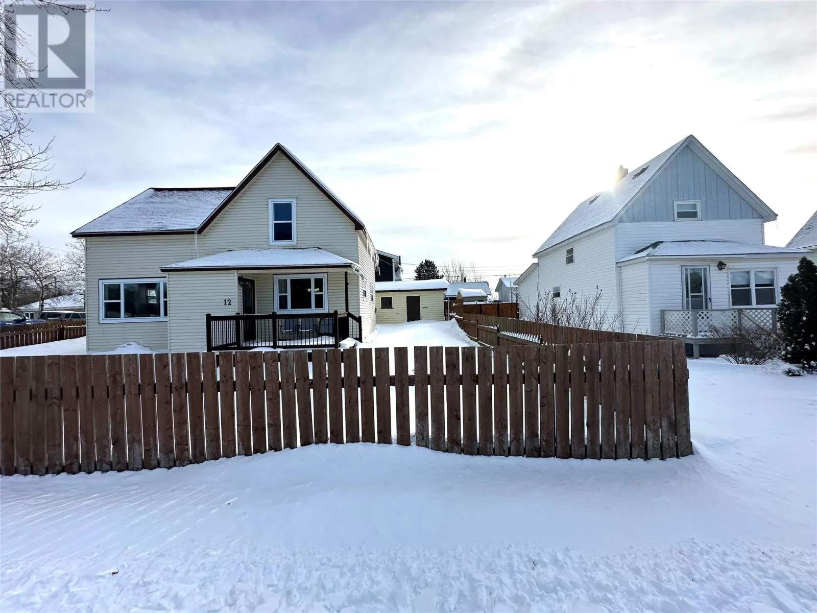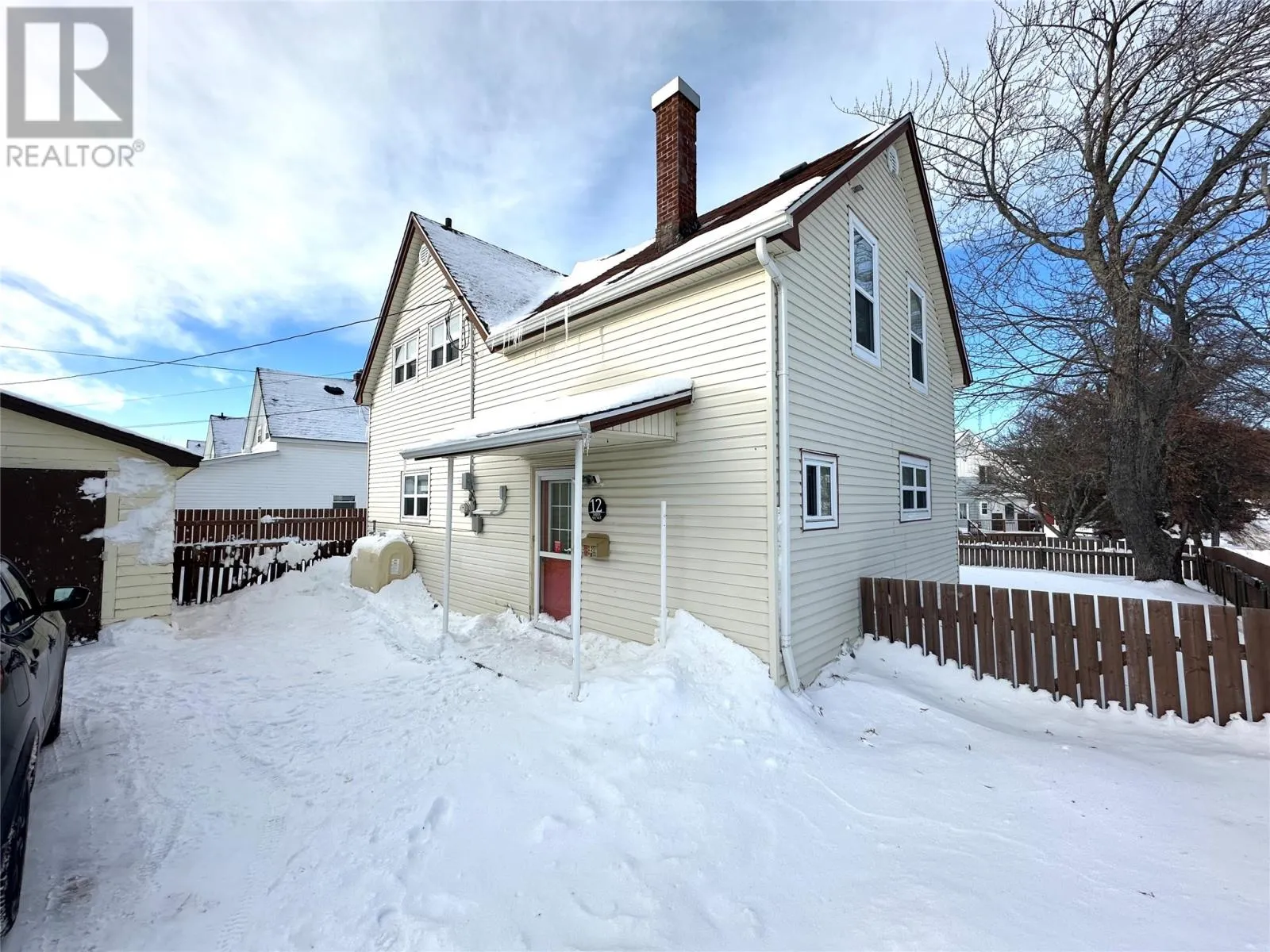 Welcome to 12 Third Avenue in Grand Falls-Windsor, NL. Look no further as this may be the perfect home for you! A great starter home!! Centrally located within walking distance to hospital, downtown area and shopping, local ball fields, playground & splash-pad. A mature lot with large trees; fenced yard; paved driveway; covered veranda to front foyer; storage shed measuring 12'x22'. Exterior completed with vinyl windows & siding,1" stereo insulation below siding, aluminum eaves trough, shingles added 2012. Interior features a front foyer; formal dining room; spacious living room with refurbished fireplace with electric insert; bright kitchen with breakfast bar, fridge, stove & dishwasher included. Covered rear foyer; laundry/bath combination. Original staircase to 2nd floor which features 3 bedrooms; main 3 piece bathroom with cozy cushion floor; 2 piece ensuite & walk-in closet off master. Home has been modernized in areas throughout in the past 10 years including most flooring, gyproc in areas, new oil tank installed September 2018, new hot water tank 2024, new pressure treated front deck 2020, weeping tile and exterior skirting completed 2020. Partial basement used for furnace/storage. Don't miss out on this fantastic opportunity to be a home owner!! (id:27476)