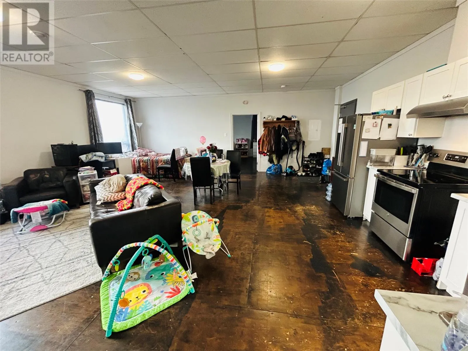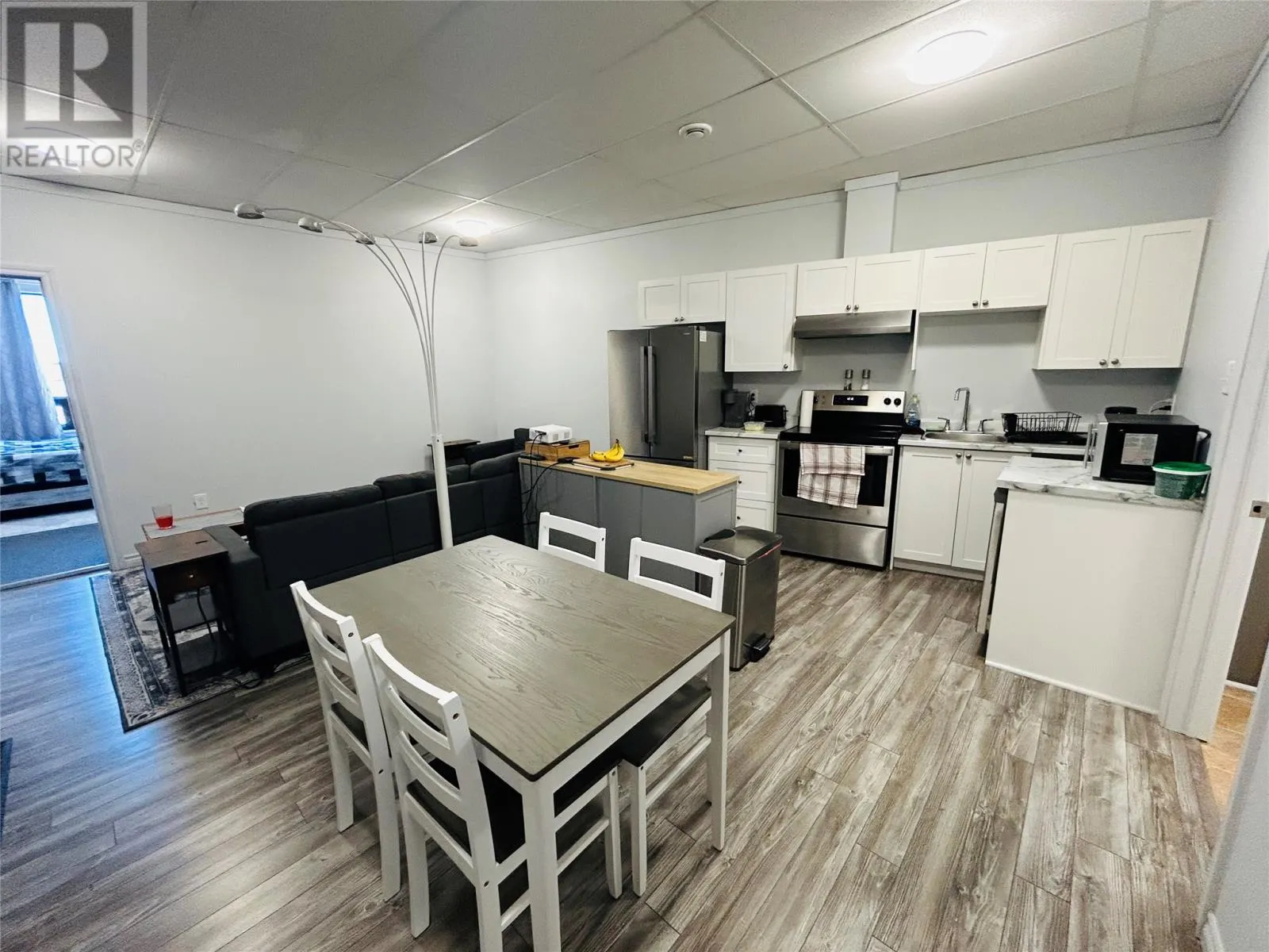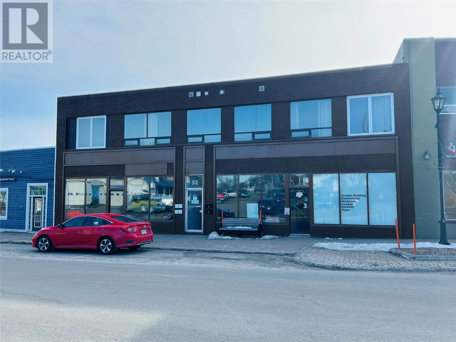 Investment opportunity awaits! Centrally located in the heart of the downtown area. Main floor consist two separate retail spaces, offices, large area recently operated as a pub. Many possibilities with rental opportunity. One unit presently occupied. Second floor consist of 4 large one-bedroom, self contained apartments. Modern design with open concept living, dining and kitchen areas. Large windows allows for natural lighting. Long term tenants. Stainless steel appliances, washer and dryer. Heated by electric baseboard. Minutes away from recreation and shopping. (id:27476)