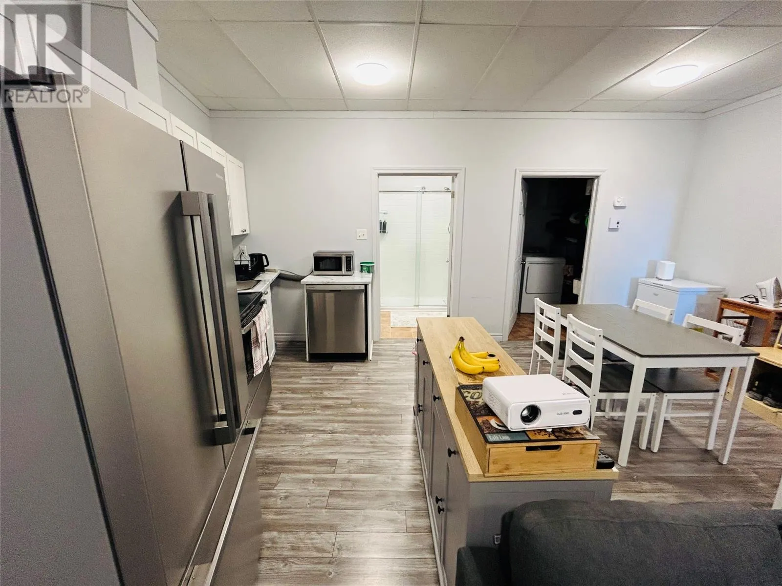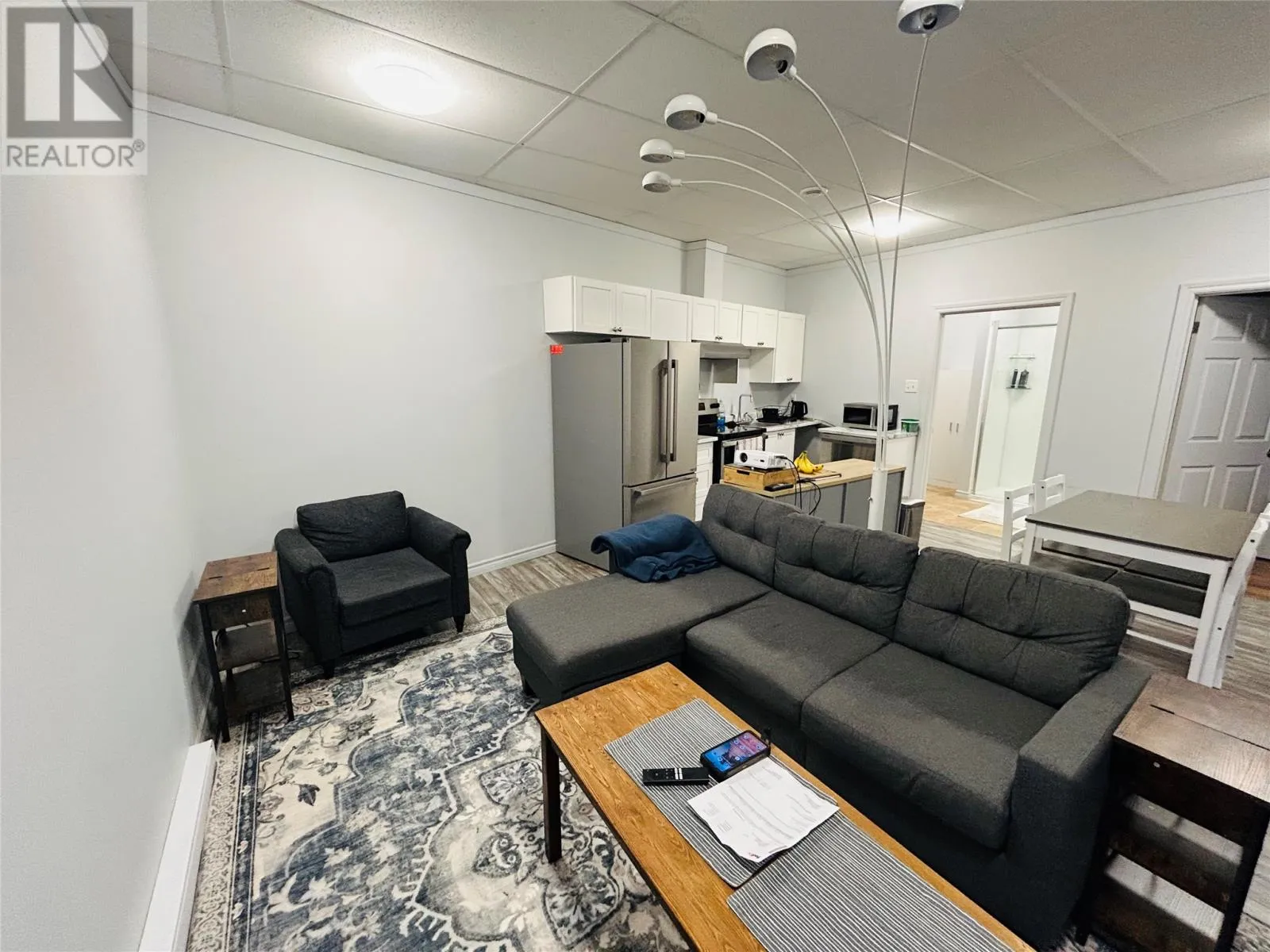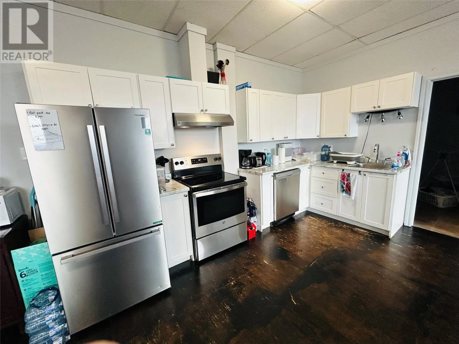 Investment opportunity awaits! Centrally located in the heart of the downtown area. Main floor consist two separate retail spaces, offices, large area recently operated as a pub. Many possibilities with rental opportunity. One unit presently occupied. Second floor consist of 4 large one-bedroom, self contained apartments. Modern design with open concept living, dining and kitchen areas. Large windows allows for natural lighting. Long term tenants. Stainless steel appliances, washer and dryer. Heated by electric baseboard. Minutes away from recreation and shopping. (id:27476)